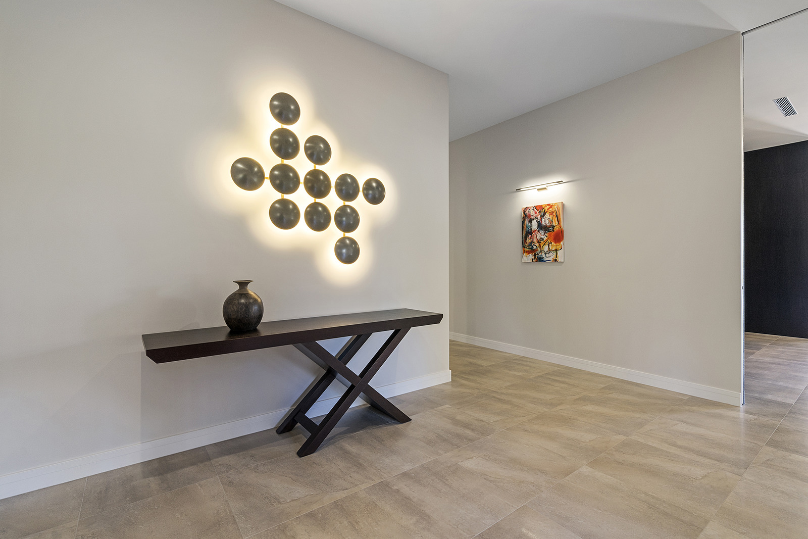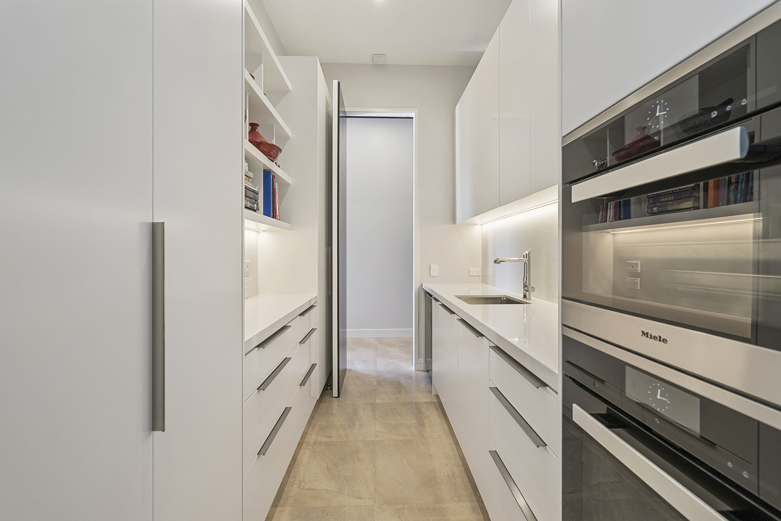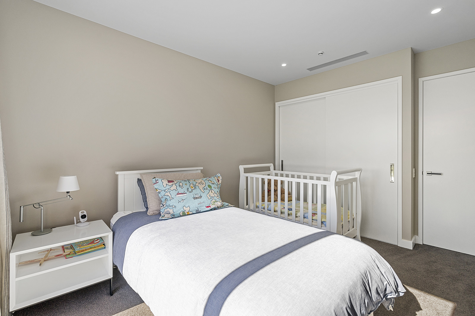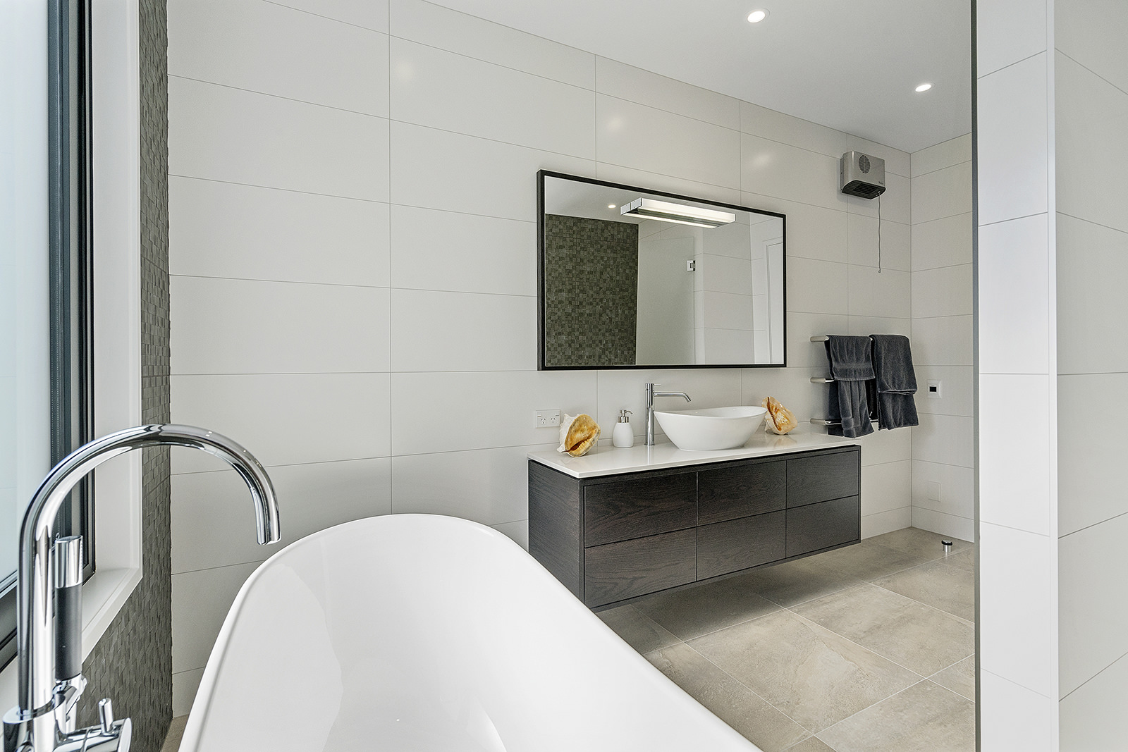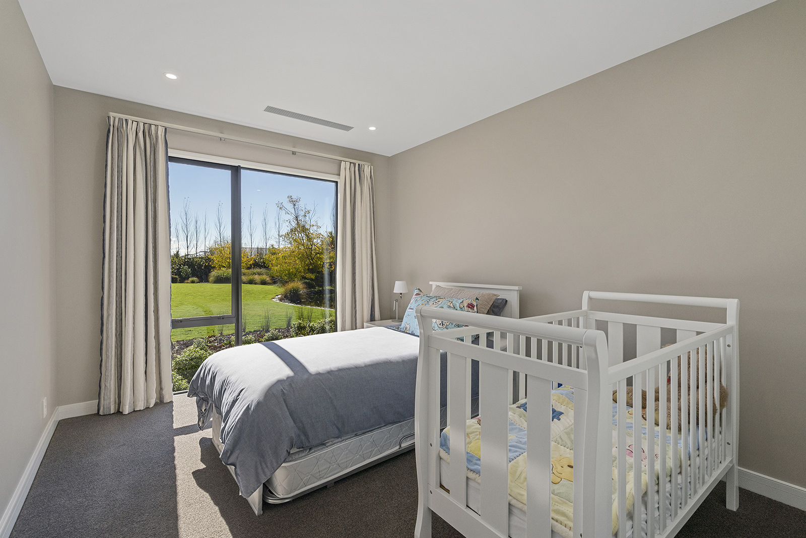 First impressions count as you drive up past the pond to reach this one-level double pavilion-style home. An expansive 373sqm, with loft space for storage above the garage, the Christchurch house’s vertical cedar shiplap weatherboard exterior is imposing. Pass through the grand entrance, which includes a pergola, garden feature and substantial wooden front door, to two living areas (one a full media room), then to a monotone kitchen with walk-through scullery and dining area for an enviably configured family living space. Through a vast slider there is an impressive all-weather outdoor dining area and fireplace. Three light and airy bedrooms are sanctuaries for family members wanting quiet time. The master bedroom is a self-contained retreat, complete with a walk-in robe, ensuite, tea and coffee station and private outdoor deck. The dark wood and crisp white colour features throughout the house create a cohesive and harmonious feel.