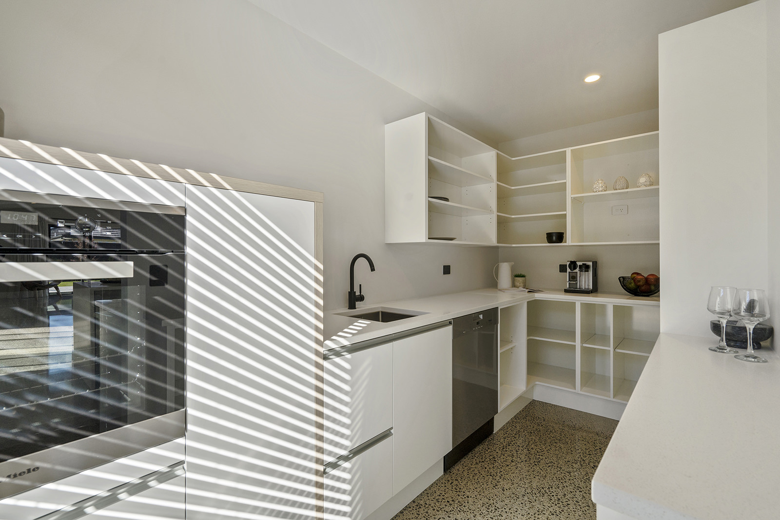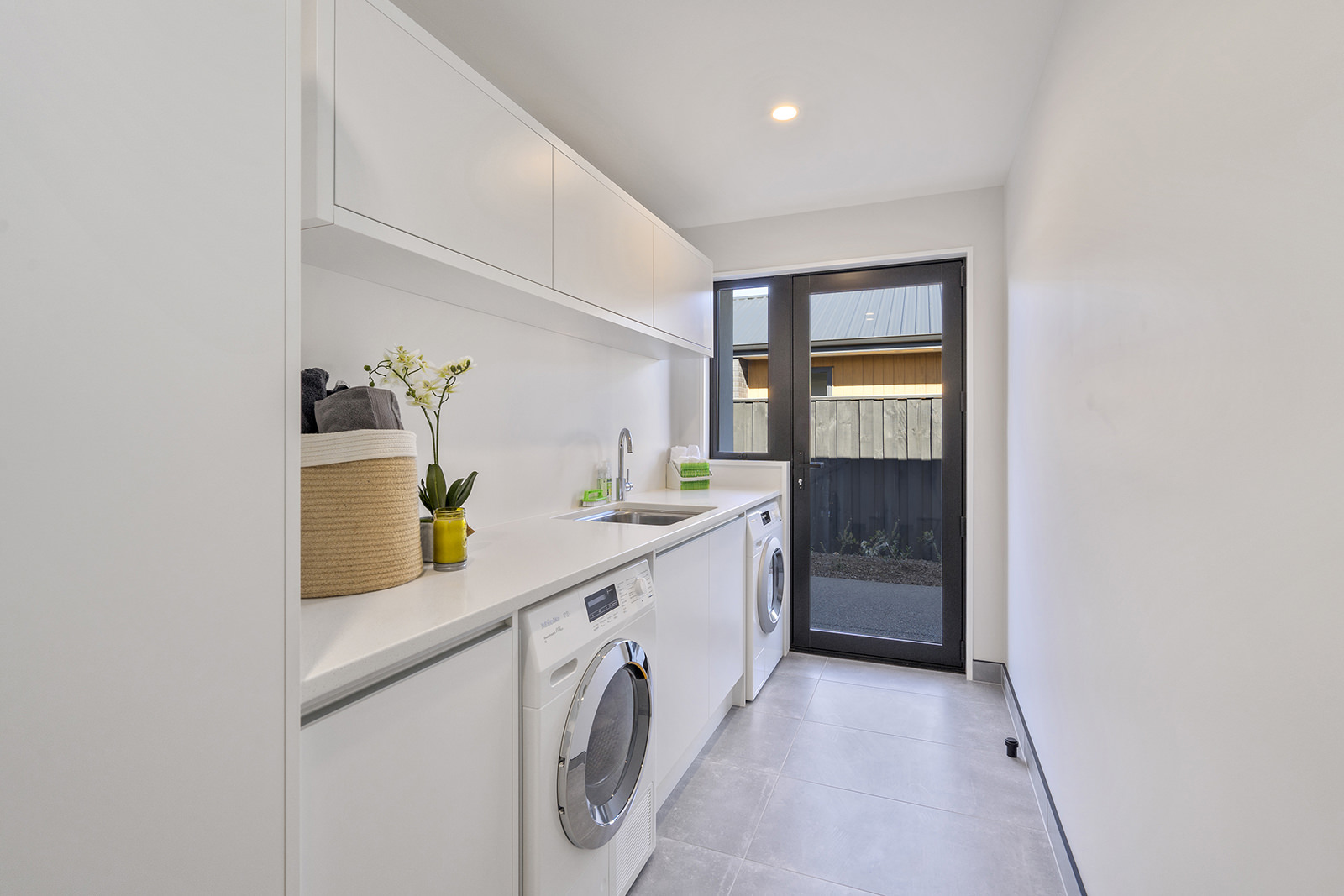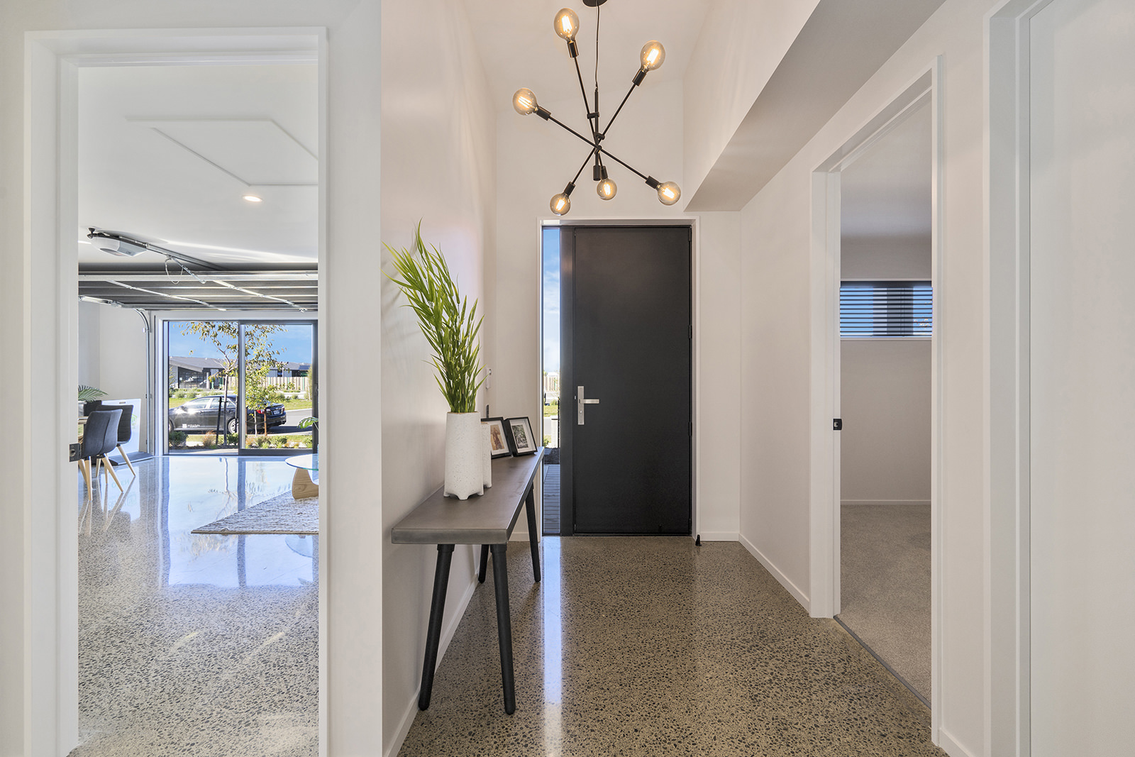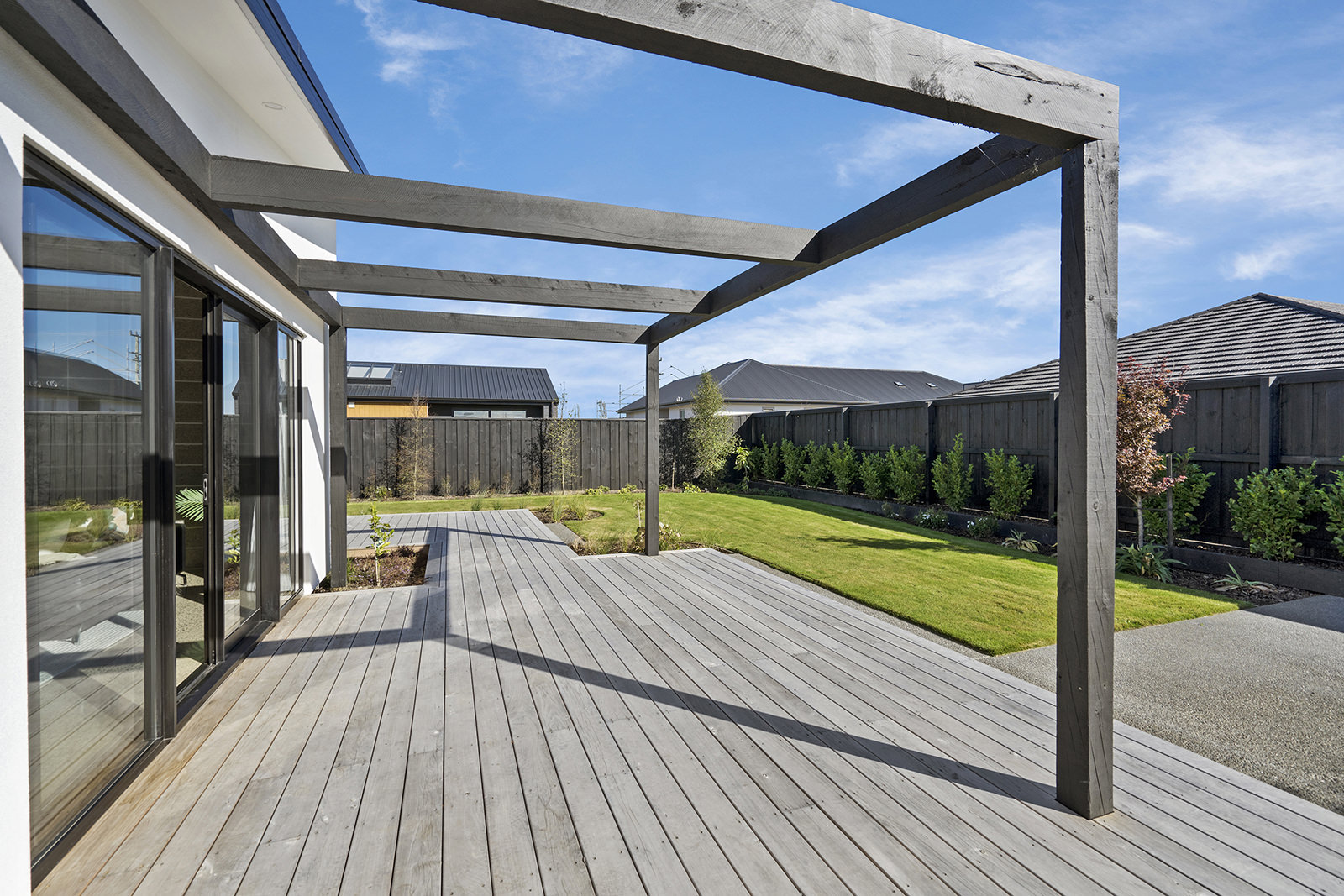 As easy on the eye as it is on its environment, this four-bedroom, two-bathroom show home epitomises Green Homes’ eco-friendly ethos – without compromising on contemporary living. This is the only residential builder in the country to be accredited the ISO 50001 certification for design and construction of energy efficient homes. Sitting south of Christchurch, this 245sqm show home is all about green design and energy conservation. From insulating the foundation’s peripheral edges to low-usage appliances, heat exchange ventilation and optimal airflow throughout – this home commits its owners to a lower carbon footprint and a healthy family environment. It’s a win-win for everyone. The interior conveys unadulterated style from the polished concrete floors to the white, minimalist kitchen and spacious living area with generous sliding doors, opening out to the deck. This house proves that building sustainably doesn’t have to be more expensive than a traditional build. It can be achieved slickly on a modest budget.