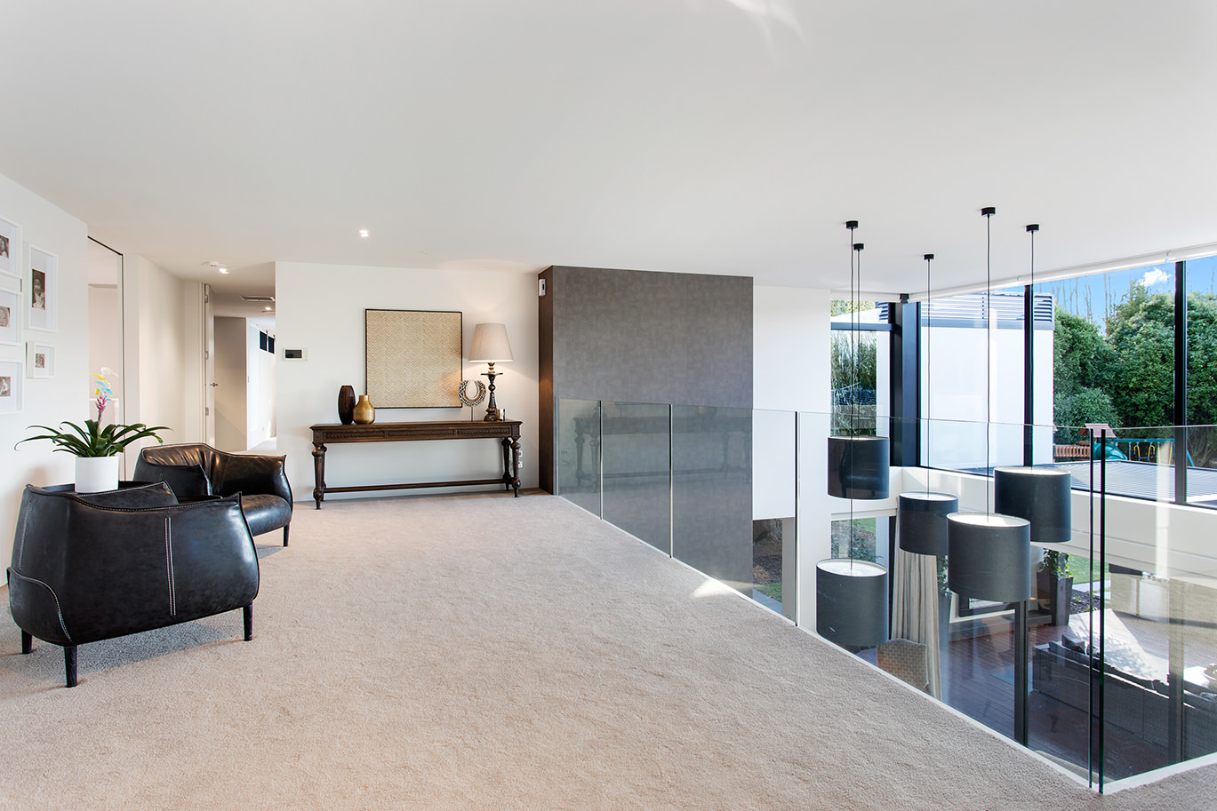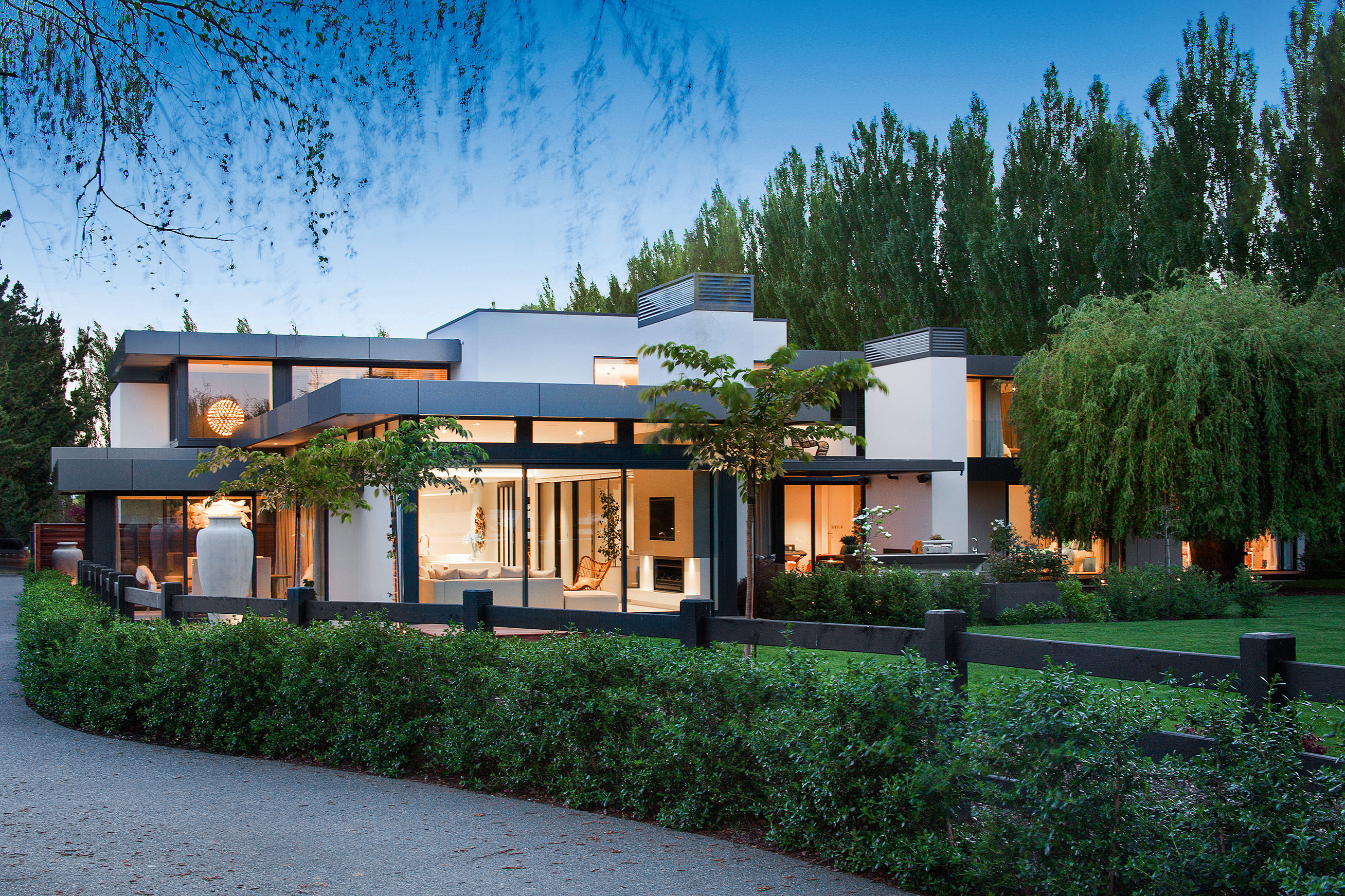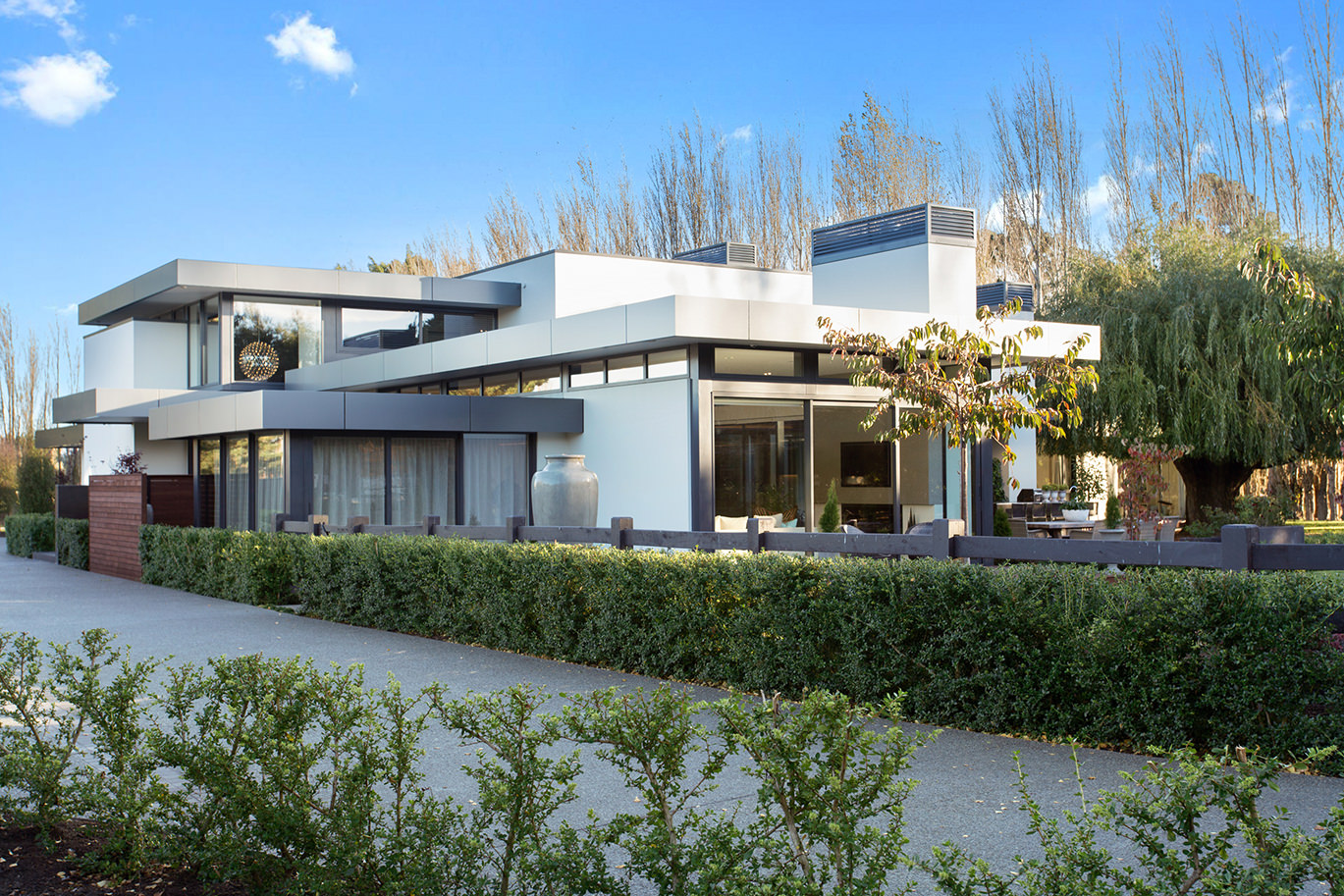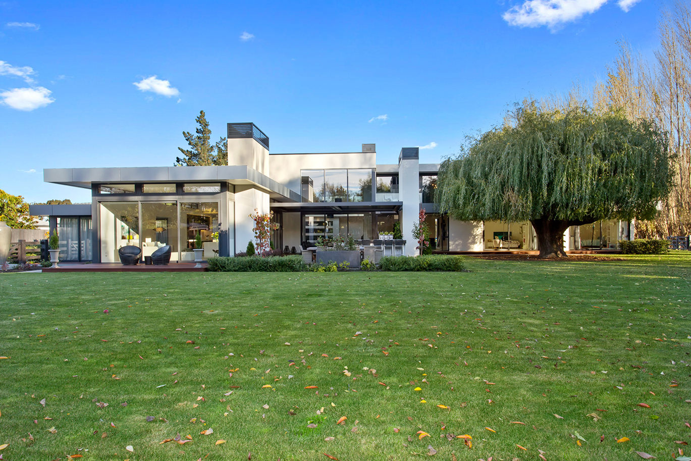 Nestled among established trees on a generous rural-style site, this two-storey stunner brings an ultra-contemporary edge to its Christchurch suburb. All sharp lines and modern, glazed volumes, the home of six-bedrooms (all with ensuites) is flooded with natural light and packed with state-of-the-art features. Superb open-plan living and indoor-outdoor flow are just the beginning. This beauty boasts a spacious library, separate office, wine cellar and movie theatre. Extensive heating and cooling technology ensures a perfectly temperate living environment year-round. Three gas fires amplify elegance and ambience ideal for entertaining – which this home is made for. Extensive decking and patios set the scene for starry soirees. Or simply soaking in the six-person spa. The stunning feature floating stone staircase is a work of art, providing primary access to the first floor. A second staircase offers an alternate route to the master retreat. Complete with walk-in robe and modern ensuite, this stunning sanctuary also includes its own kitchen – just the owner’s cup of tea. This exceptional home scooped the Supreme New Build of the Year grand award, as well as the New Home over $2 Million and the Plumbing World Bathroom Excellence awards.