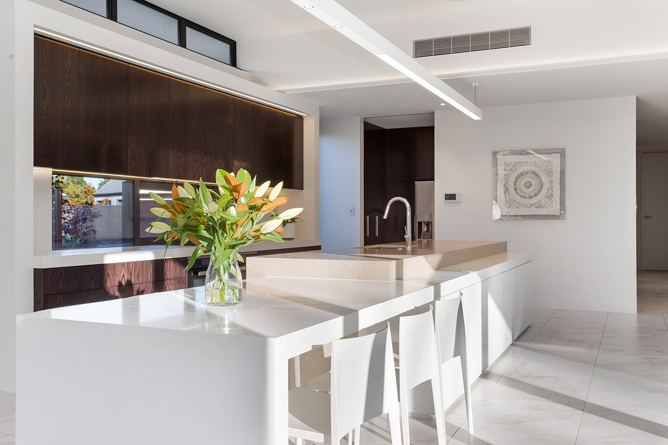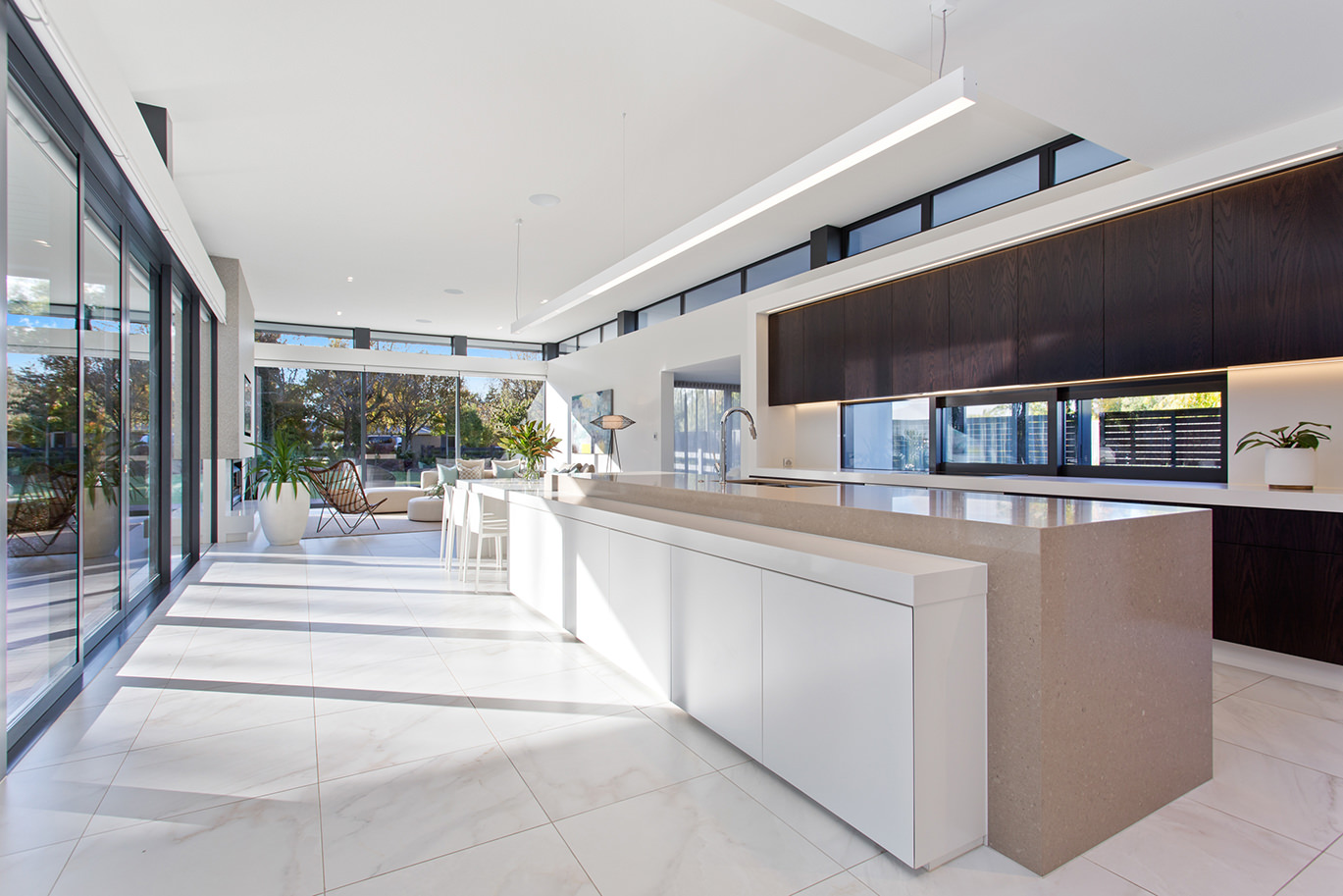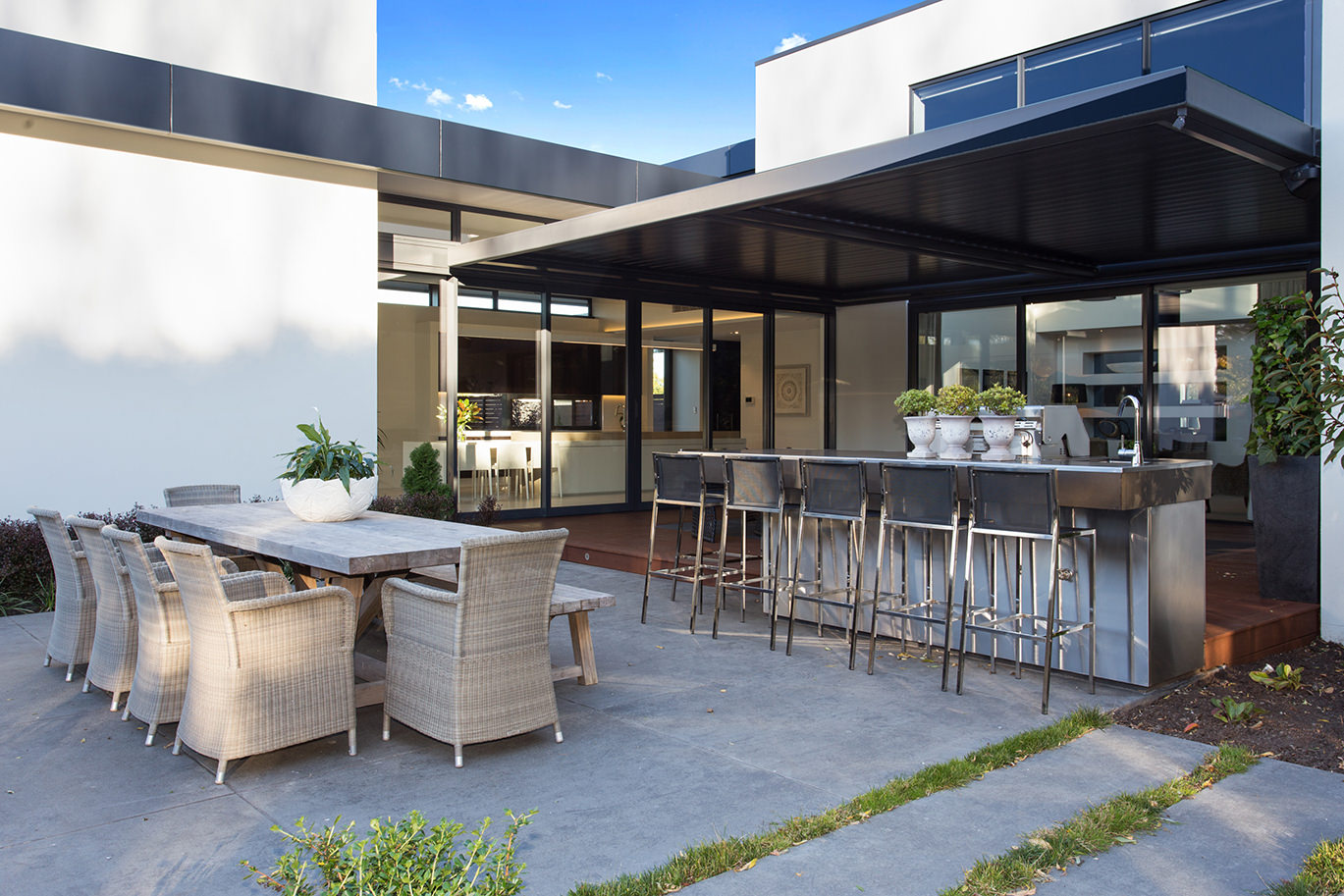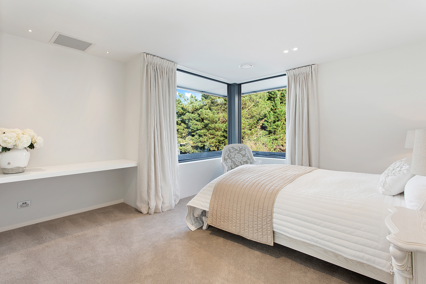 Nestled among established trees on a generous rural-style site, this two-storey stunner brings an ultra-contemporary edge to its Christchurch suburb. All sharp lines and modern, glazed volumes, the home of six-bedrooms (all with ensuites) is flooded with natural light and packed with state-of-the-art features. Superb open-plan living and indoor-outdoor flow are just the beginning. This beauty boasts a spacious library, separate office, wine cellar and movie theatre. Extensive heating and cooling technology ensures a perfectly temperate living environment year-round. Three gas fires amplify elegance and ambience ideal for entertaining – which this home is made for. Extensive decking and patios set the scene for starry soirees. Or simply soaking in the six-person spa. The stunning feature floating stone staircase is a work of art, providing primary access to the first floor. A second staircase offers an alternate route to the master retreat. Complete with walk-in robe and modern ensuite, this stunning sanctuary also includes its own kitchen – just the owner’s cup of tea. This exceptional home scooped the Supreme New Build of the Year grand award, as well as the New Home over $2 Million and the Plumbing World Bathroom Excellence awards.