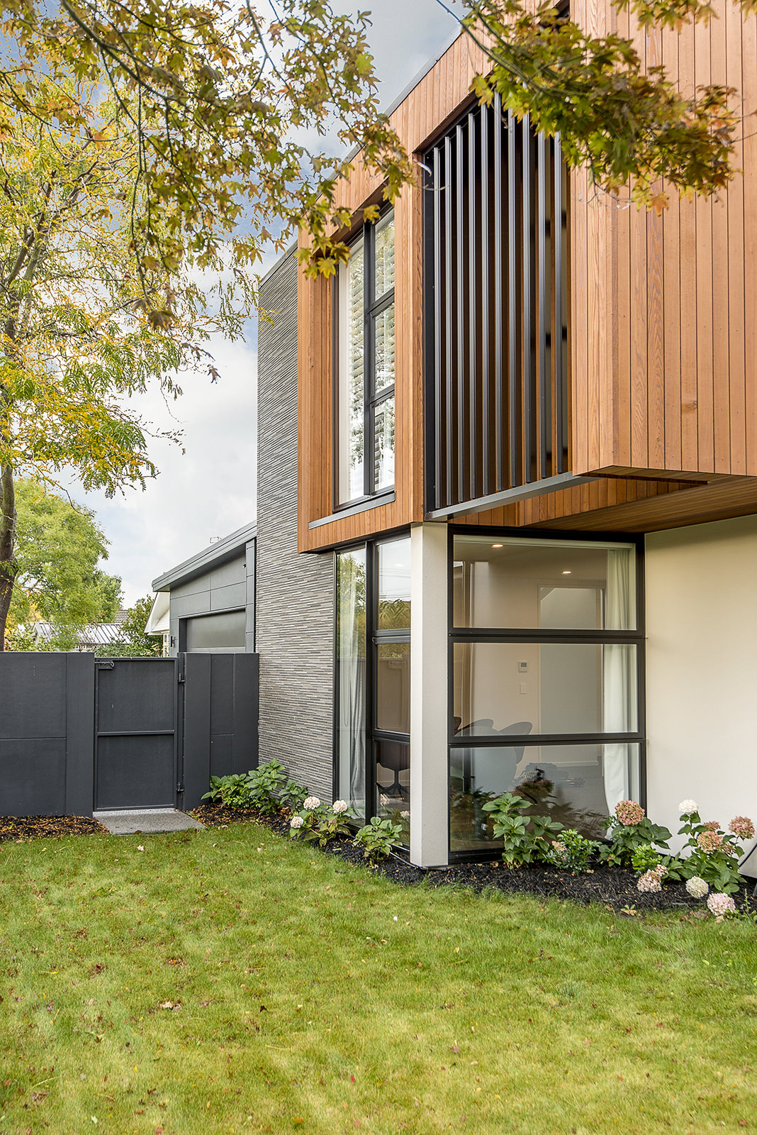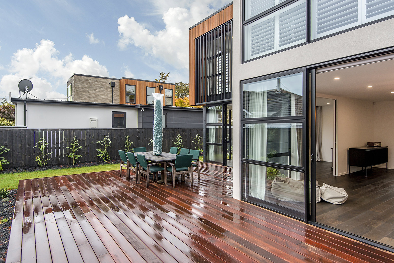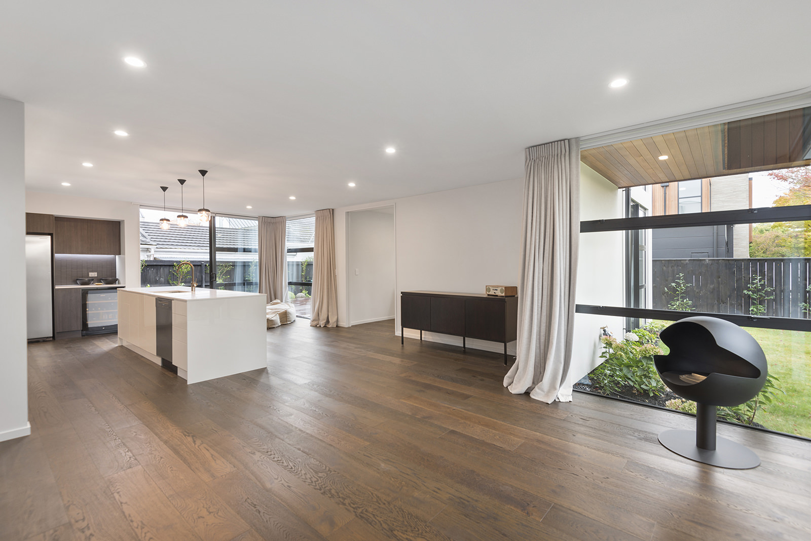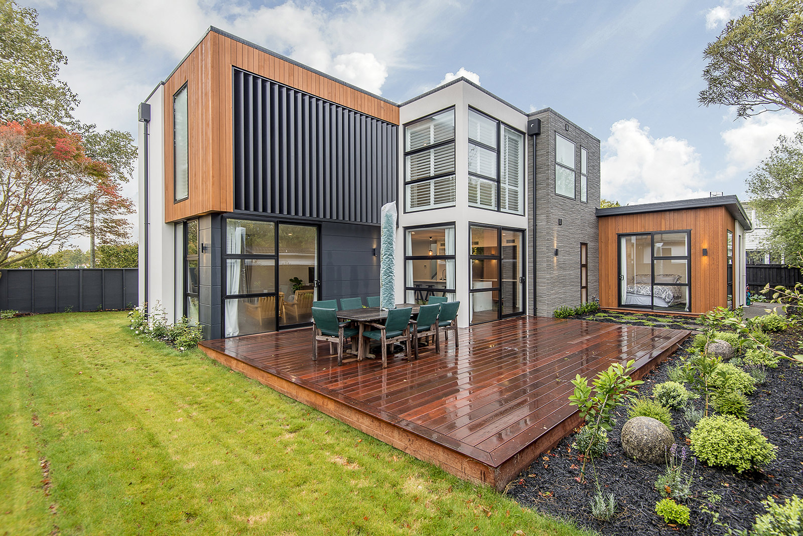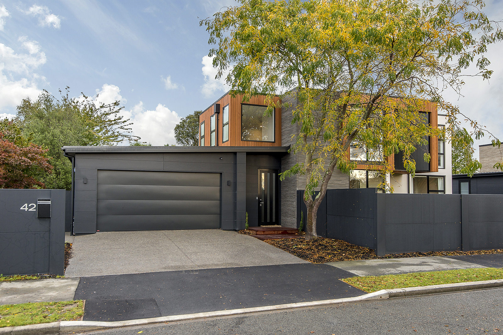 Find modern love in Christchurch. With its strong forms and proud stature, this four-bedroom beauty delivers easy living and looks good doing it. Warm wood, fresh plaster and textured stone surfaces draw attention to the home’s various volumes. The use of vertical cedar timber provides a connection to established trees on the site. Wood tones carry inside to extensive timber flooring, joinery, tiles and furnishings, which stand out against fresh white in the entertainer’s kitchen. Up-to-the-minute appliances and large work spaces, including a well-equipped scullery, make cooking a joy The open-plan living space flows naturally across level entries to hardwood decking for seamless indoor-outdoor living. Facing north, the living spaces enjoy all-day sun. Overheight ceilings amplify the feeling of openness. With four good-sized bedrooms, three tiled bathrooms and separate living areas, this 255sqm home is never short on space. Extensive insulation, ducted heat pumps, automated louvres and under-tile heating are warming touches.