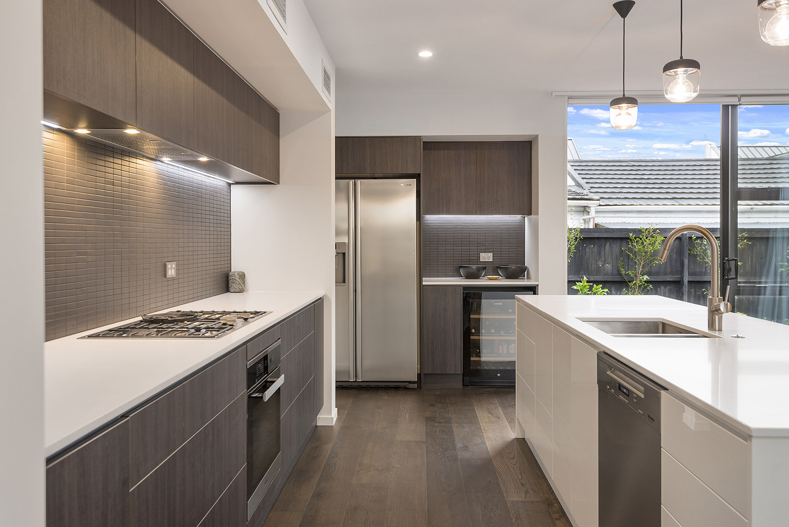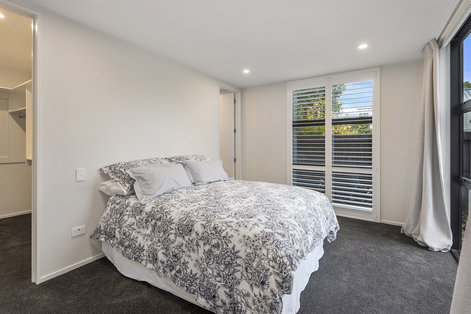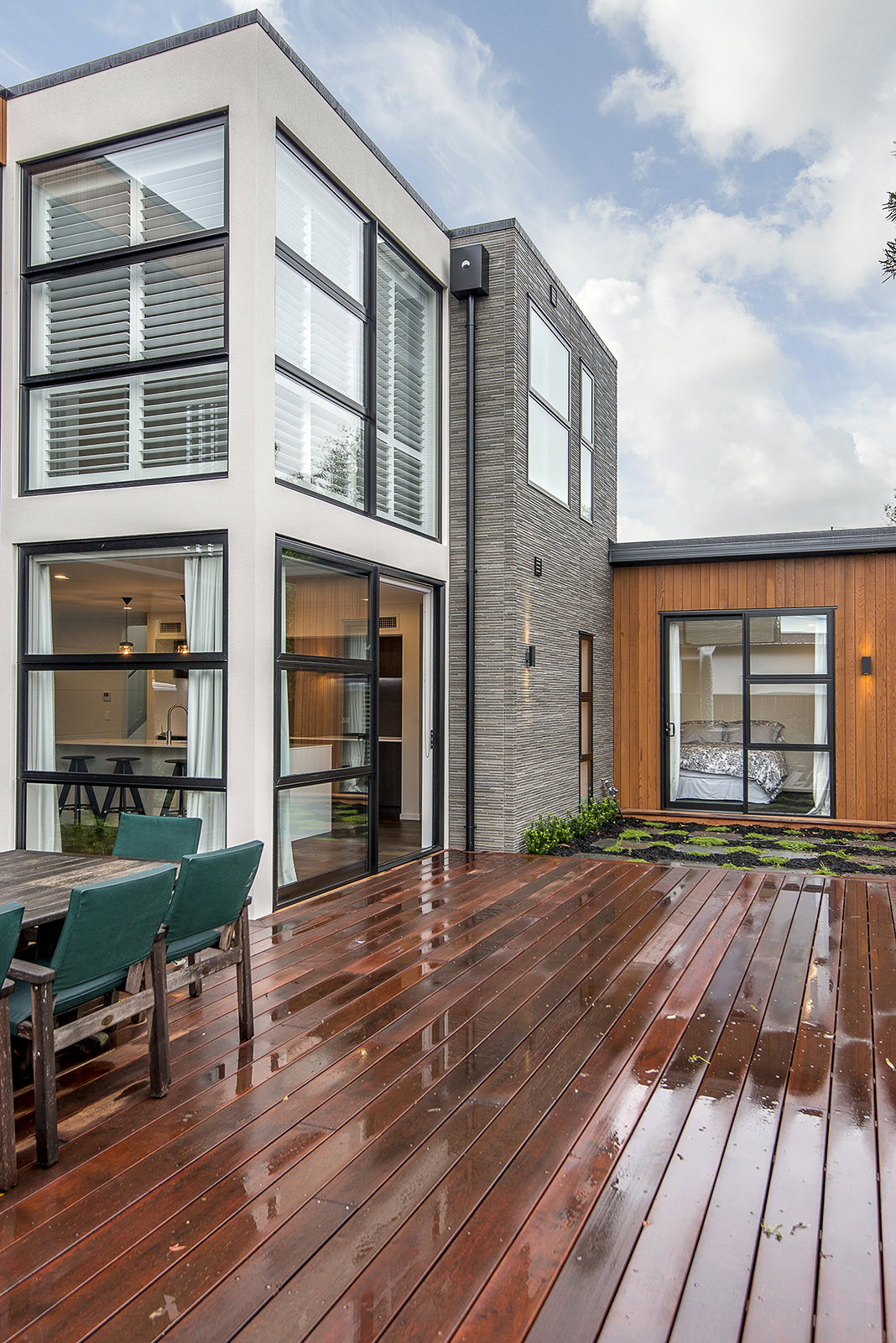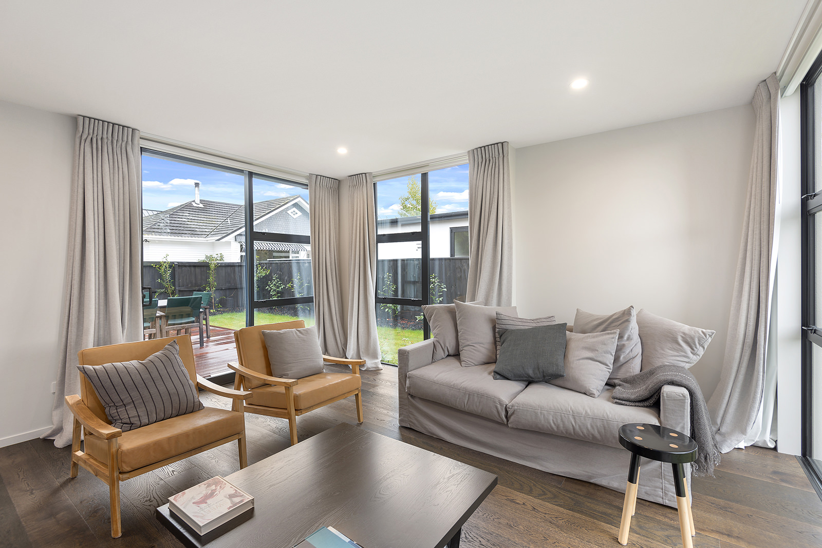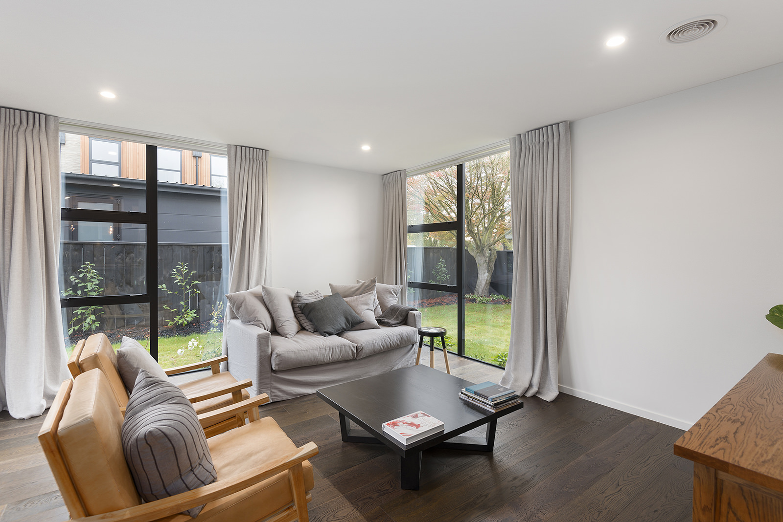 Find modern love in Christchurch. With its strong forms and proud stature, this four-bedroom beauty delivers easy living and looks good doing it. Warm wood, fresh plaster and textured stone surfaces draw attention to the home’s various volumes. The use of vertical cedar timber provides a connection to established trees on the site. Wood tones carry inside to extensive timber flooring, joinery, tiles and furnishings, which stand out against fresh white in the entertainer’s kitchen. Up-to-the-minute appliances and large work spaces, including a well-equipped scullery, make cooking a joy The open-plan living space flows naturally across level entries to hardwood decking for seamless indoor-outdoor living. Facing north, the living spaces enjoy all-day sun. Overheight ceilings amplify the feeling of openness. With four good-sized bedrooms, three tiled bathrooms and separate living areas, this 255sqm home is never short on space. Extensive insulation, ducted heat pumps, automated louvres and under-tile heating are warming touches.