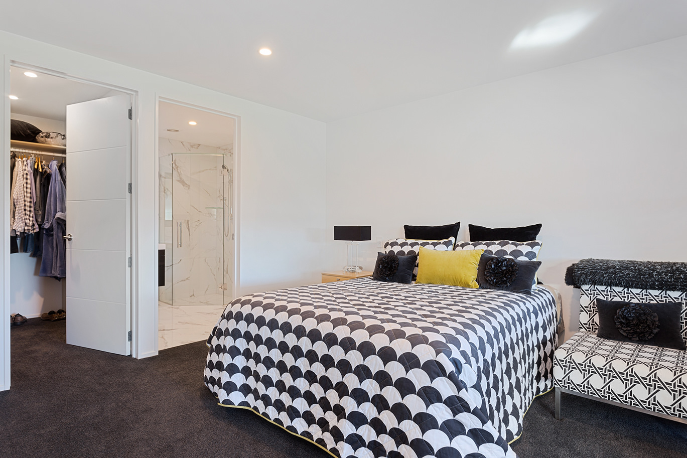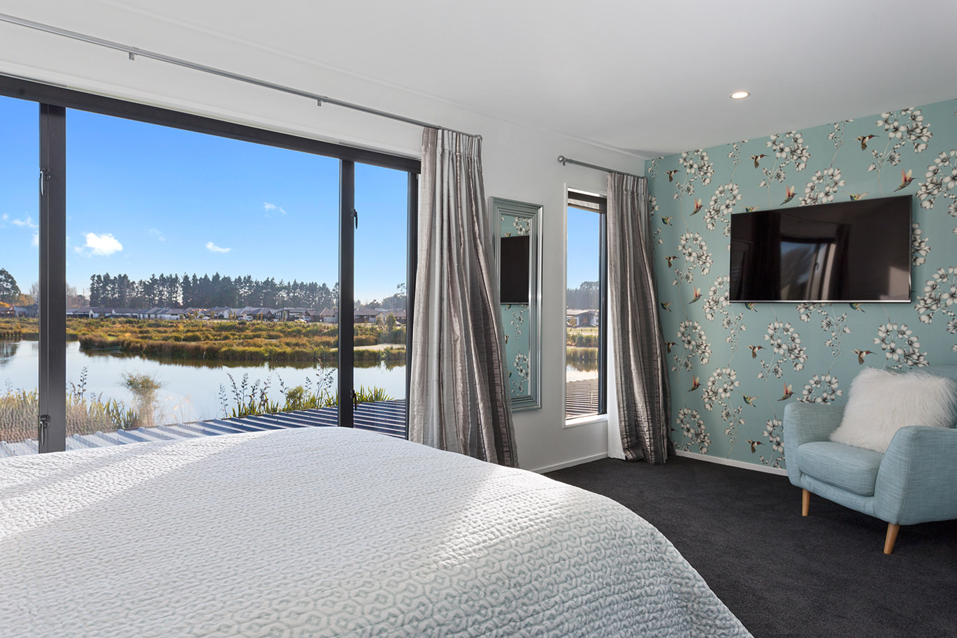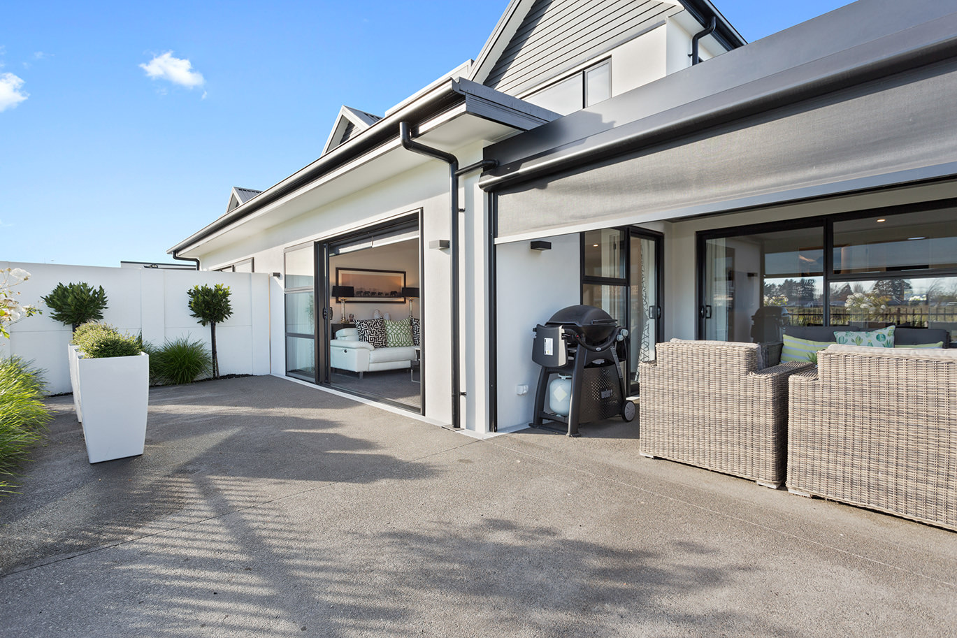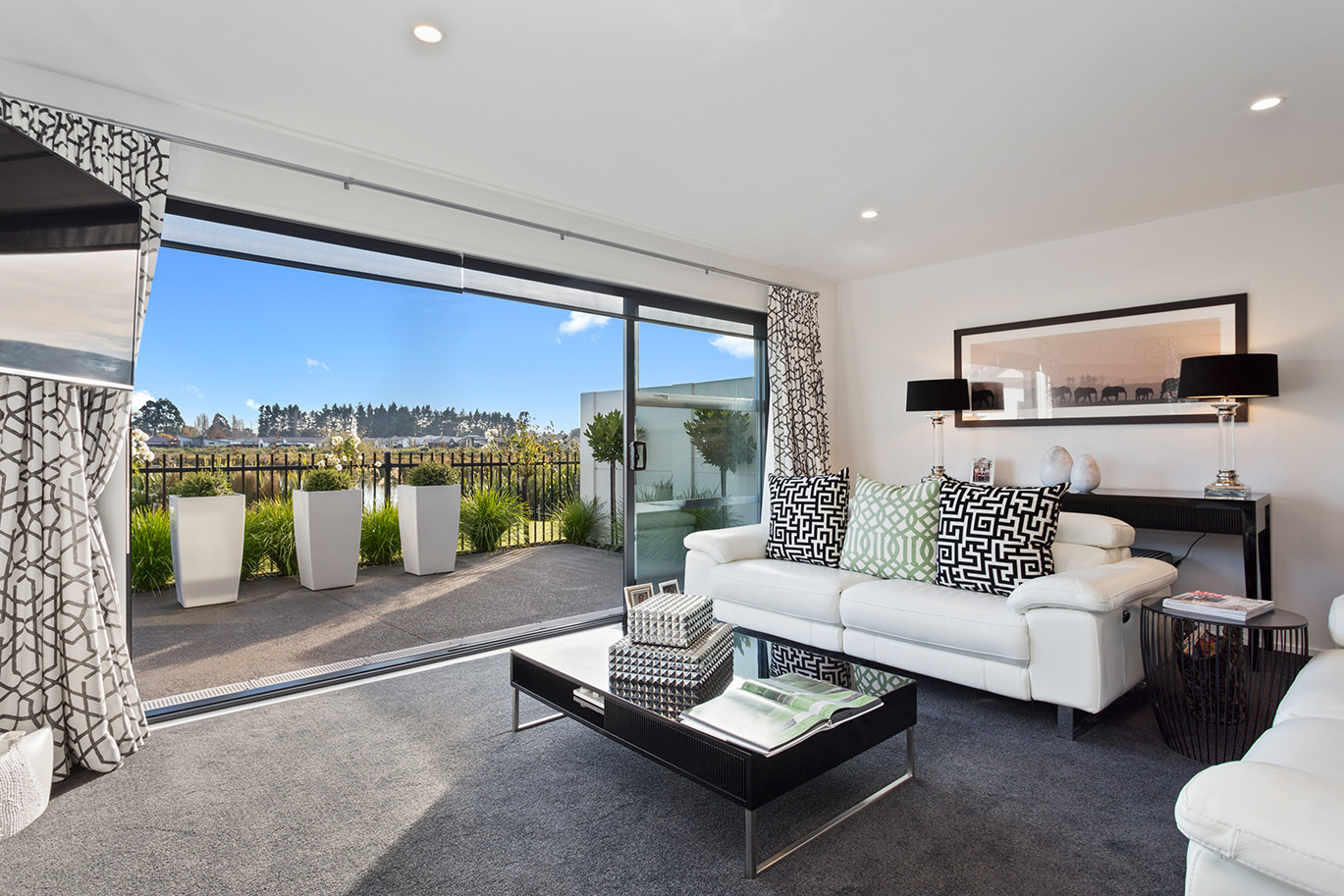 Cleverly arranged on a boomerang-shaped parcel of land, this set of seven lakeside apartments will have viewers coming right back. The design offers the best in country views with all the benefits of private, modern lock-up-and-leave city living. Facing north, these executive homes on the fringe of Christchurch are blessed with all-day sun. Designed for laidback or later-life living, emphasis was put on the use of low-maintenance materials. Level entries between interior and exterior living spaces are another thoughtful touch. The seamless transition enhances the open, flowing feel of the apartments. Each unit has a master bedroom with ensuite and walk-in robe both upstairs and down, future proofing the sleeping quarters. The street-facing hobby room promises flexible use – think gym, den or craft room. The apartments have private front entries, internal access double garages, plus amenity areas and laundry chutes for streamlined living. Modern designer kitchens with stone benchtops and walk-in pantries round out the style.