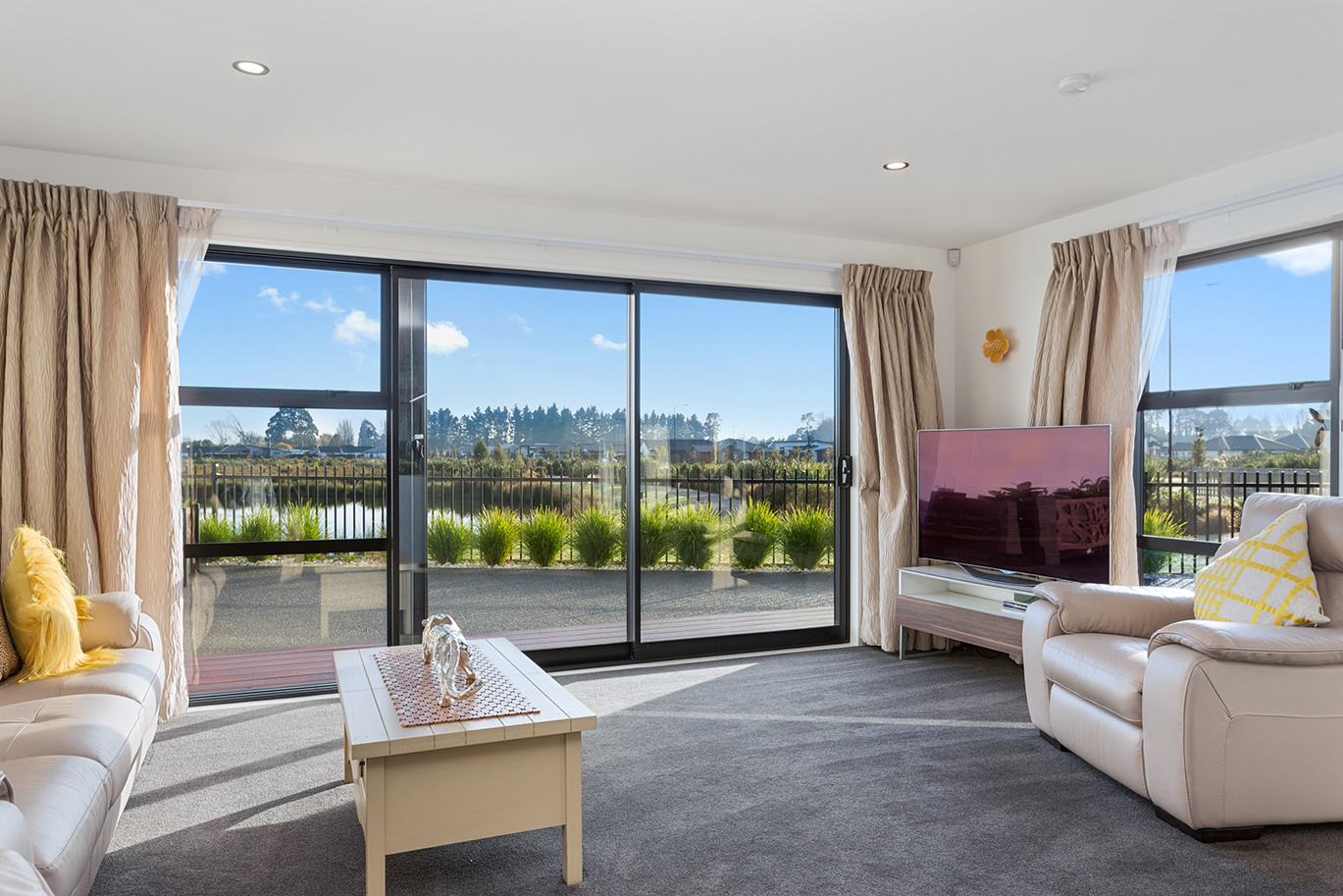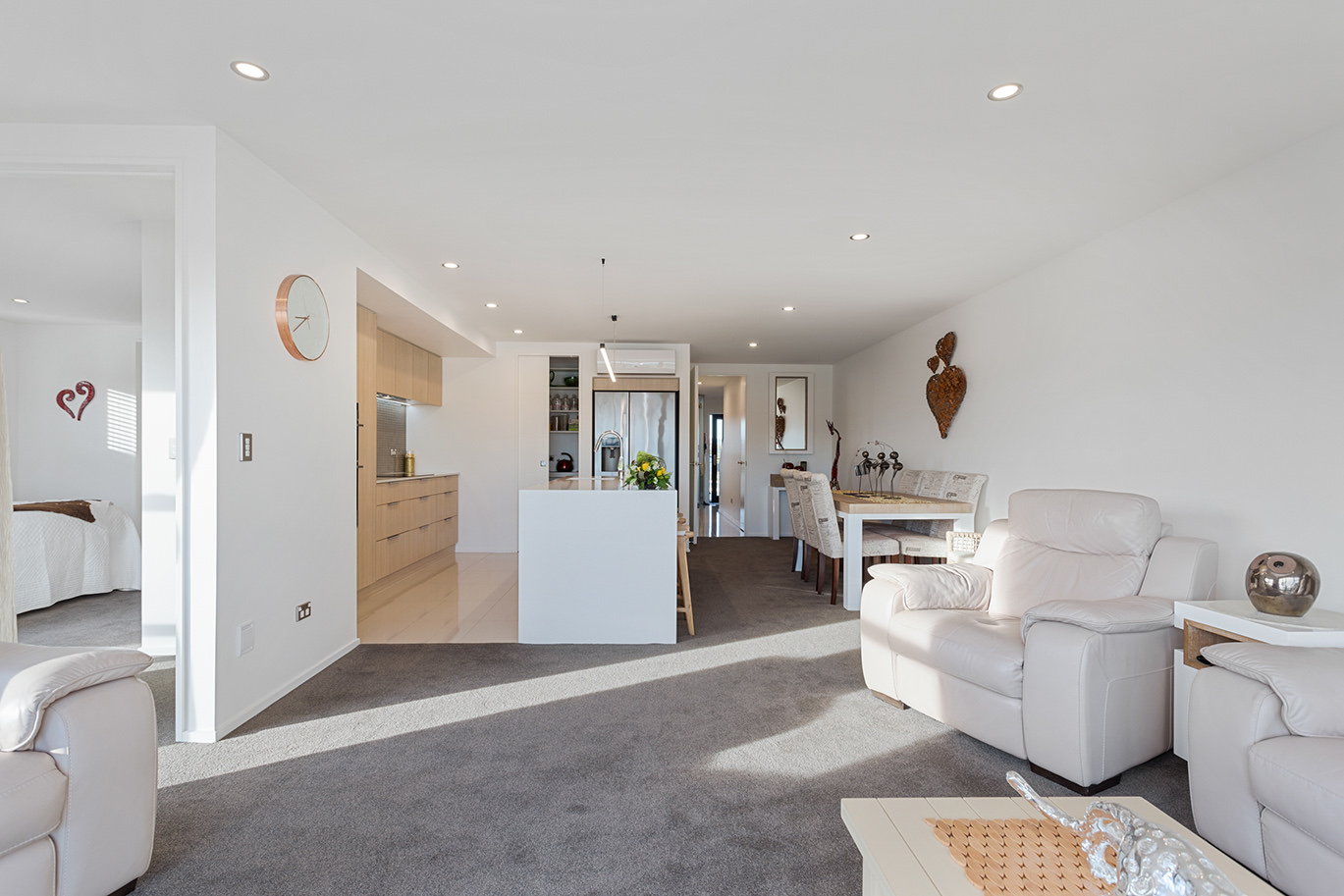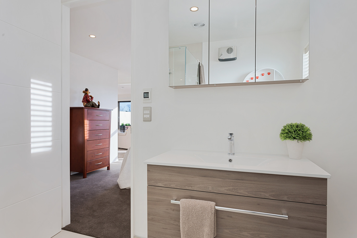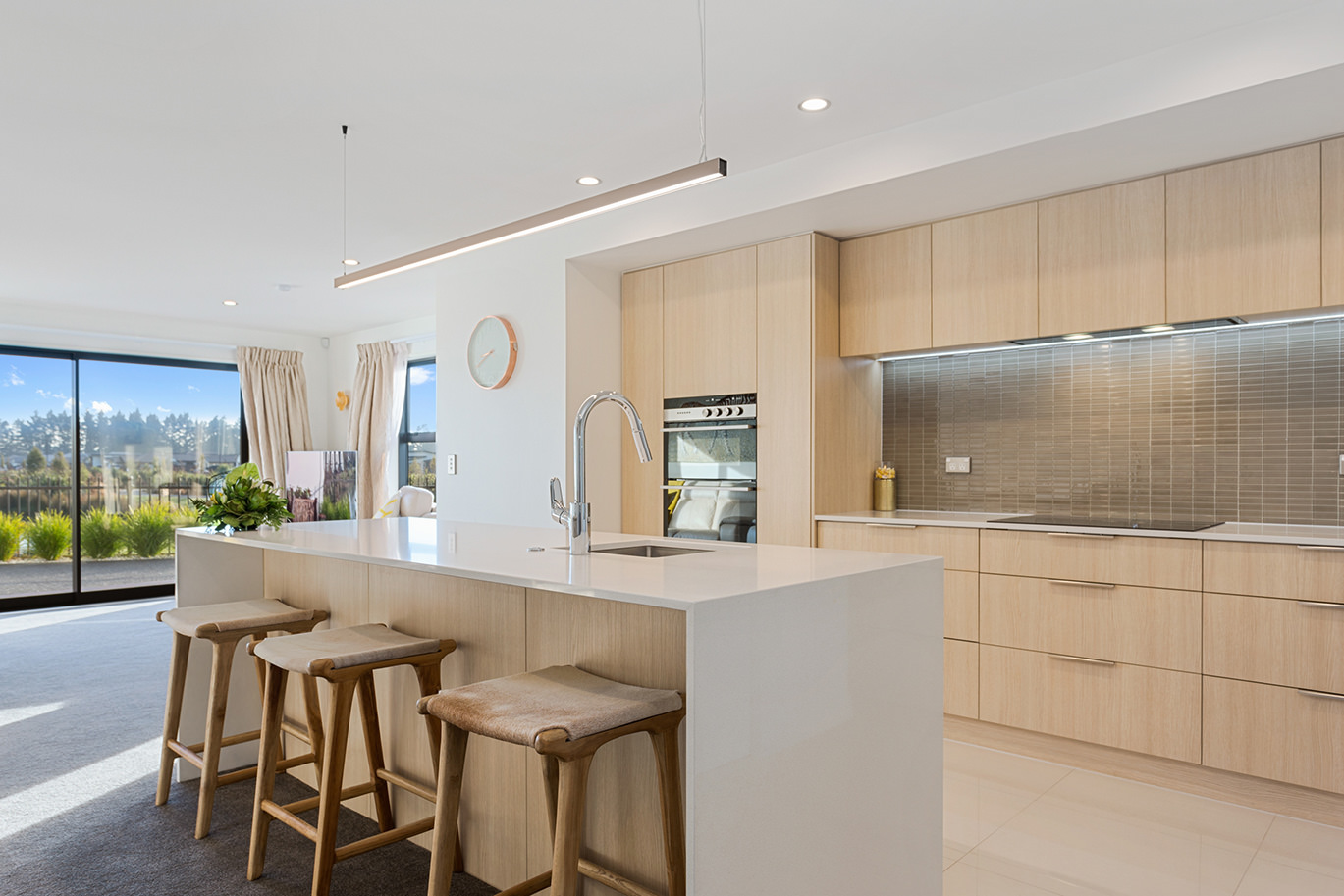 Cleverly arranged on a boomerang-shaped parcel of land, this set of seven lakeside apartments will have viewers coming right back. The design offers the best in country views with all the benefits of private, modern lock-up-and-leave city living. Facing north, these executive homes on the fringe of Christchurch are blessed with all-day sun. Designed for laidback or later-life living, emphasis was put on the use of low-maintenance materials. Level entries between interior and exterior living spaces are another thoughtful touch. The seamless transition enhances the open, flowing feel of the apartments. Each unit has a master bedroom with ensuite and walk-in robe both upstairs and down, future proofing the sleeping quarters. The street-facing hobby room promises flexible use – think gym, den or craft room. The apartments have private front entries, internal access double garages, plus amenity areas and laundry chutes for streamlined living. Modern designer kitchens with stone benchtops and walk-in pantries round out the style.