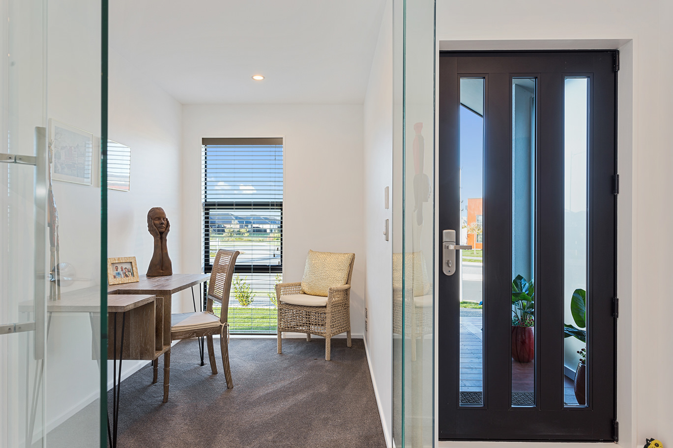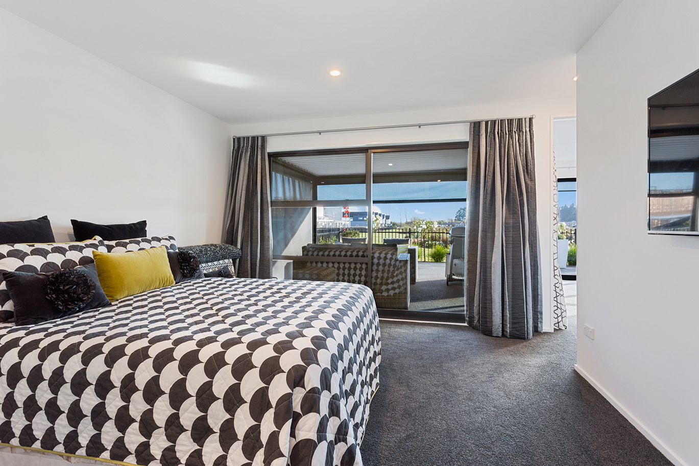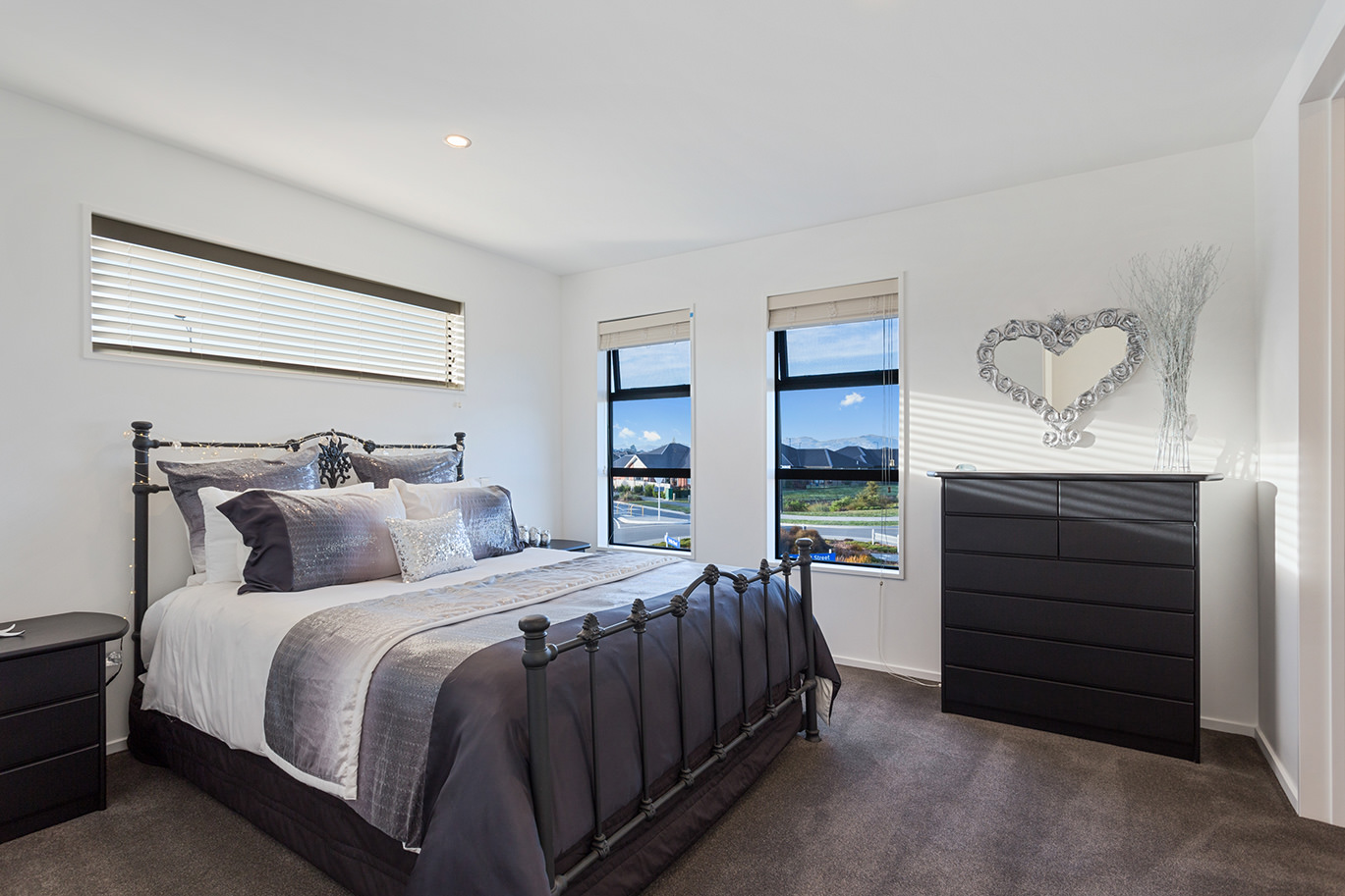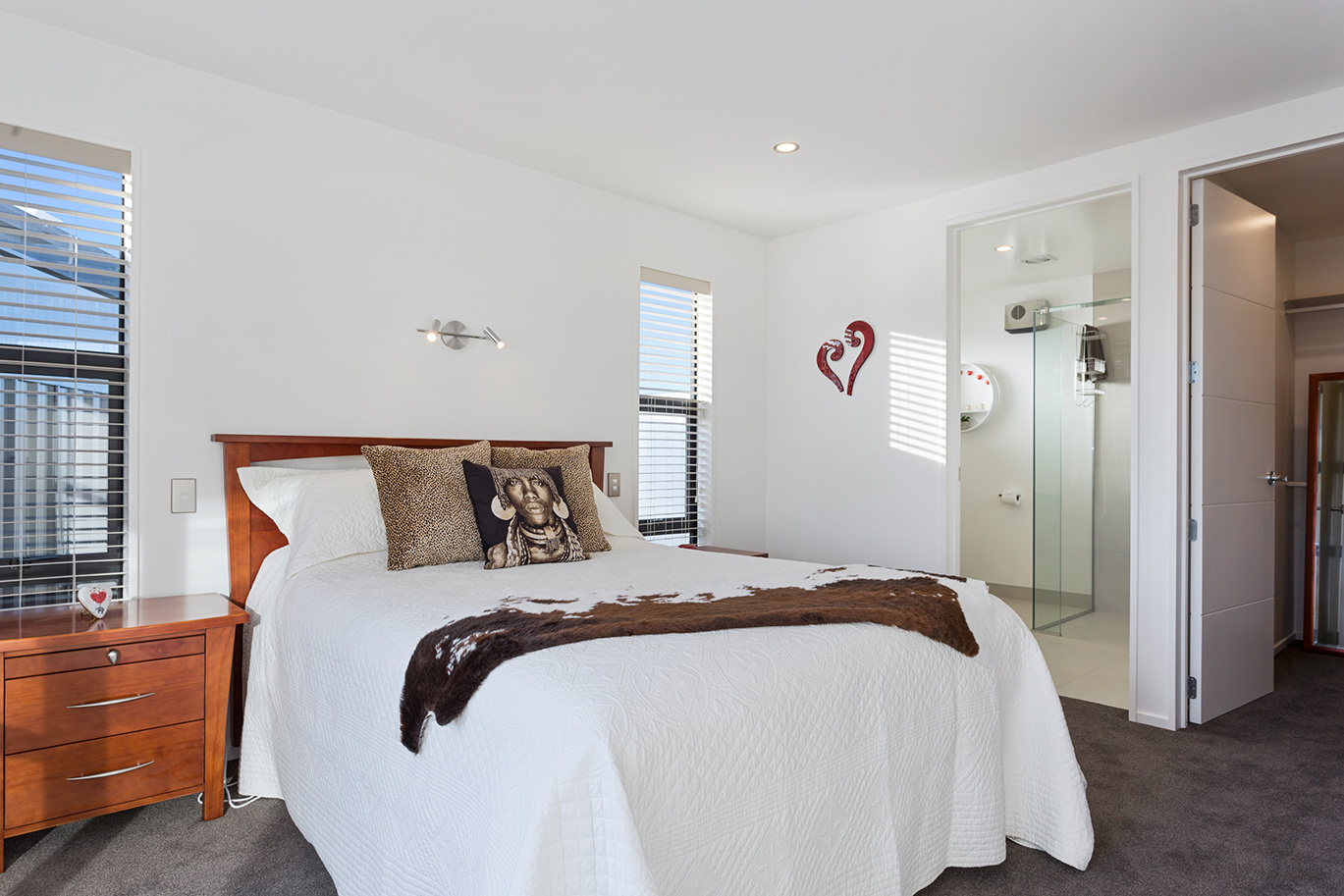 Cleverly arranged on a boomerang-shaped parcel of land, this set of seven lakeside apartments will have viewers coming right back. The design offers the best in country views with all the benefits of private, modern lock-up-and-leave city living. Facing north, these executive homes on the fringe of Christchurch are blessed with all-day sun. Designed for laidback or later-life living, emphasis was put on the use of low-maintenance materials. Level entries between interior and exterior living spaces are another thoughtful touch. The seamless transition enhances the open, flowing feel of the apartments. Each unit has a master bedroom with ensuite and walk-in robe both upstairs and down, future proofing the sleeping quarters. The street-facing hobby room promises flexible use – think gym, den or craft room. The apartments have private front entries, internal access double garages, plus amenity areas and laundry chutes for streamlined living. Modern designer kitchens with stone benchtops and walk-in pantries round out the style.