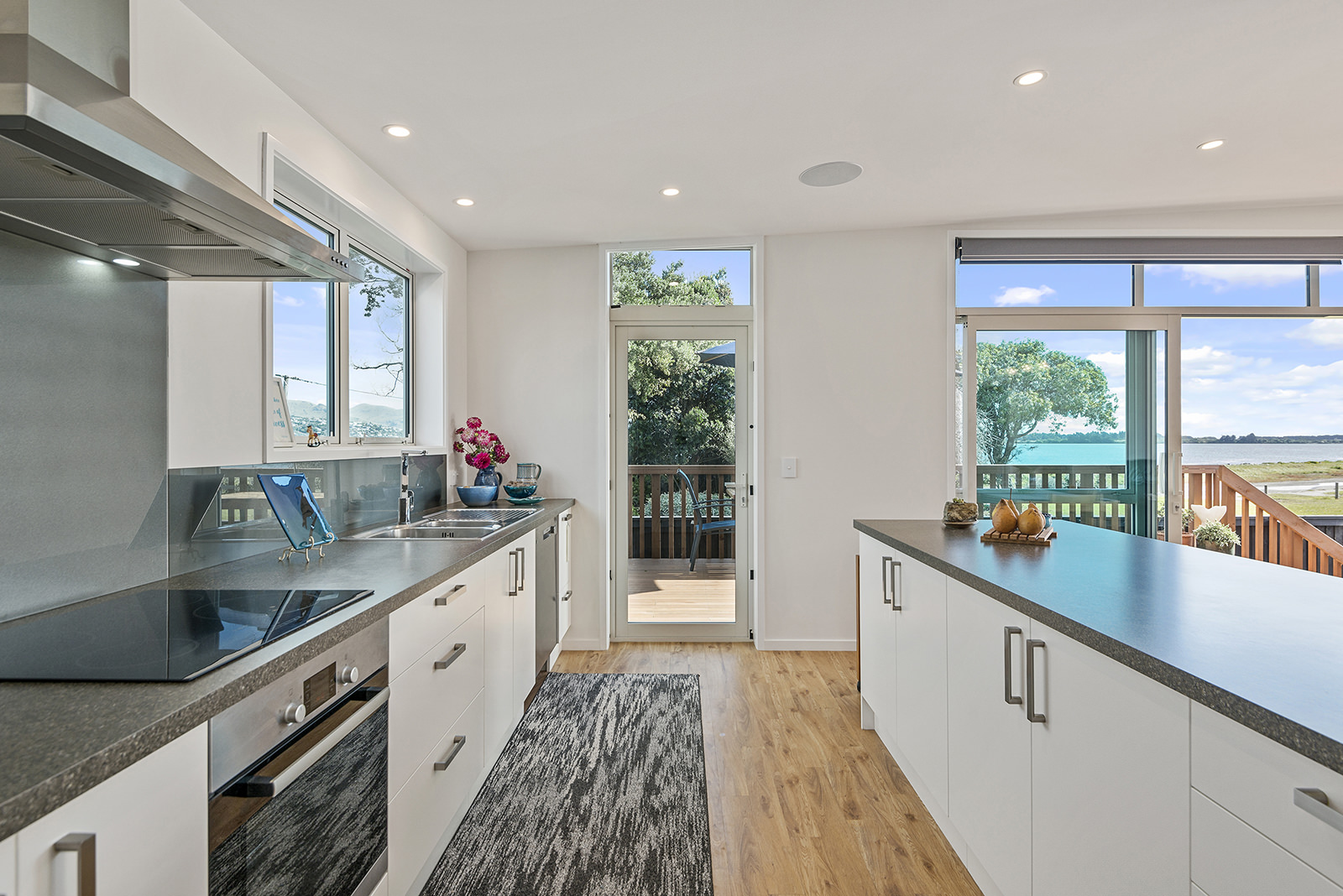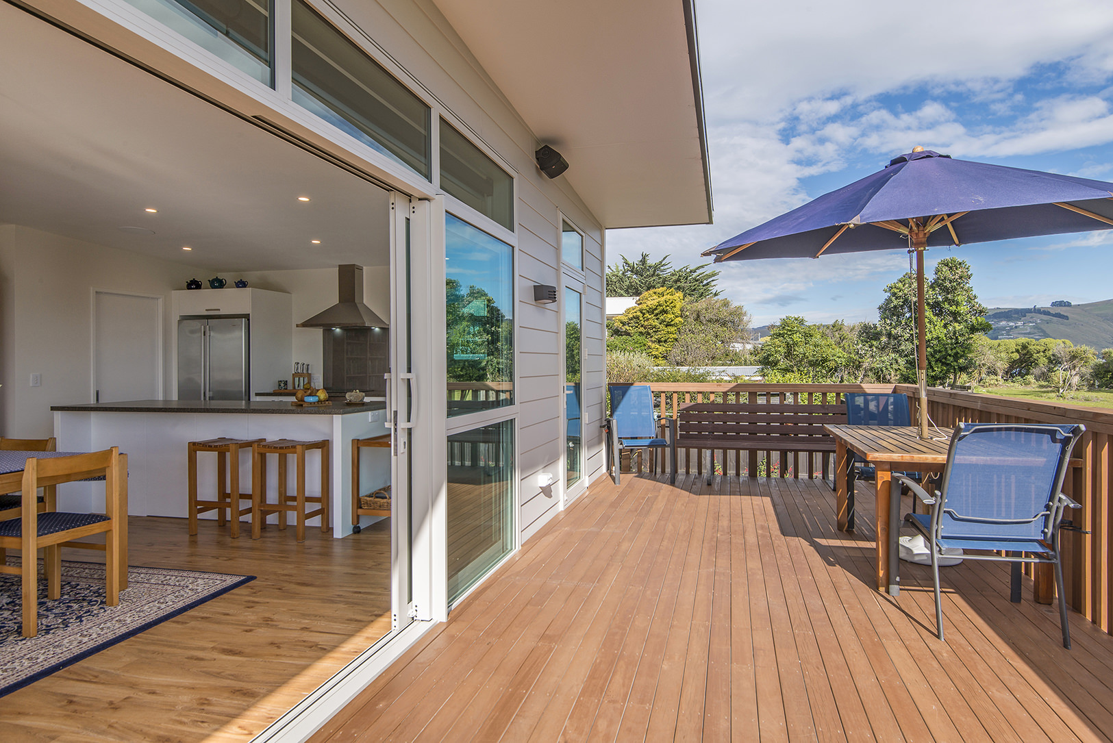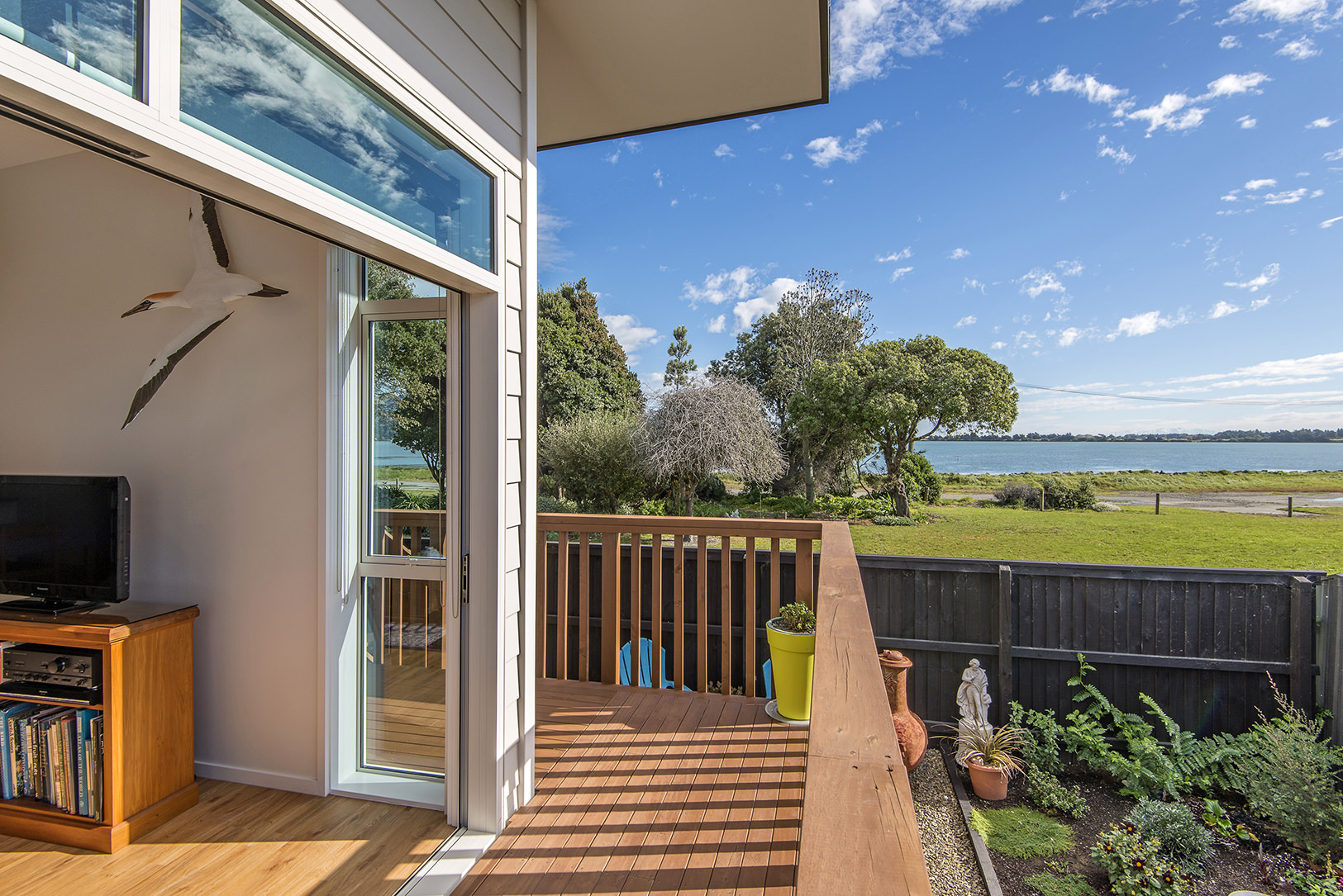 A little goes a long way. Just look at this prime example in Christchurch. Beautifully situated by the water, this low-maintenance, affordable home is big on everyday comforts. Its modest 138sqm footprint doesn’t hold it back. Three good-sized bedrooms provide more than enough space for the residents and their guests. The master bedroom, complete with ensuite, is thoughtfully located away from the others. A fresh white palette keeps things simple, while wood-look flooring creates a connection with the outdoors – as do the fibre glass sea birds, which really takes flight in the open-plan living space. Glazed sliders provide a direct link to alfresco living in the form of a large wraparound deck. The design makes it easy to follow the sun or enjoy a bit of shade at any time of day. The home is fully equipped with sustainable features including passive solar design, thermally broken construction, double insulation values, non-toxic building materials, and energy and water efficiency.