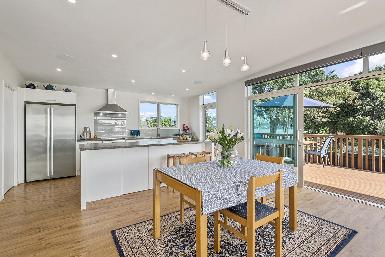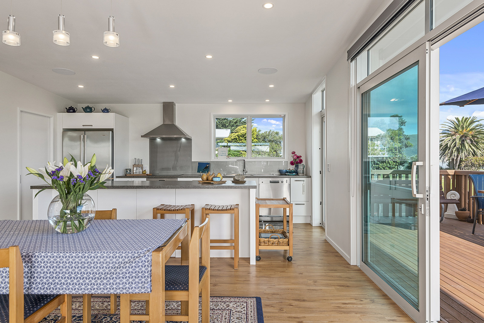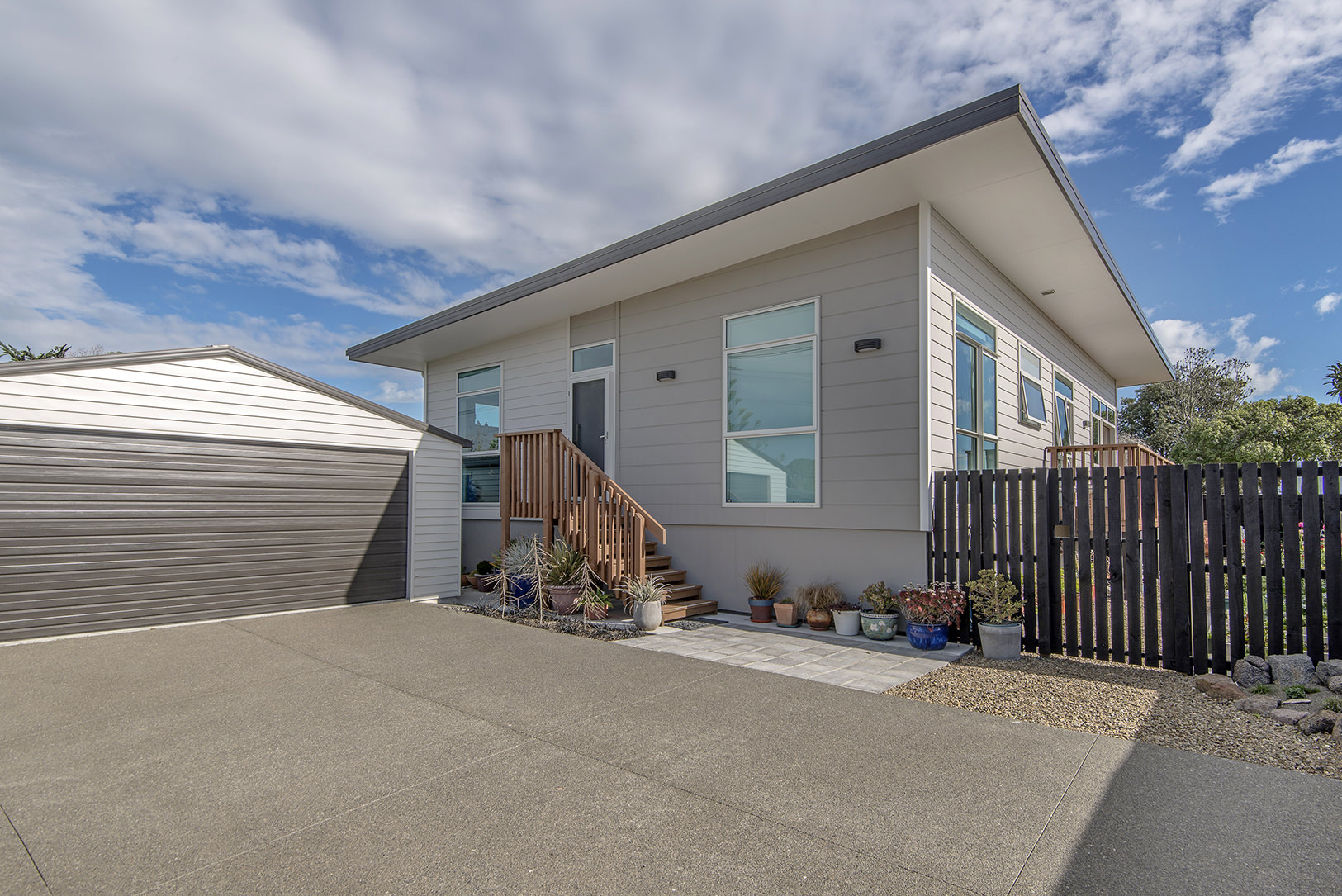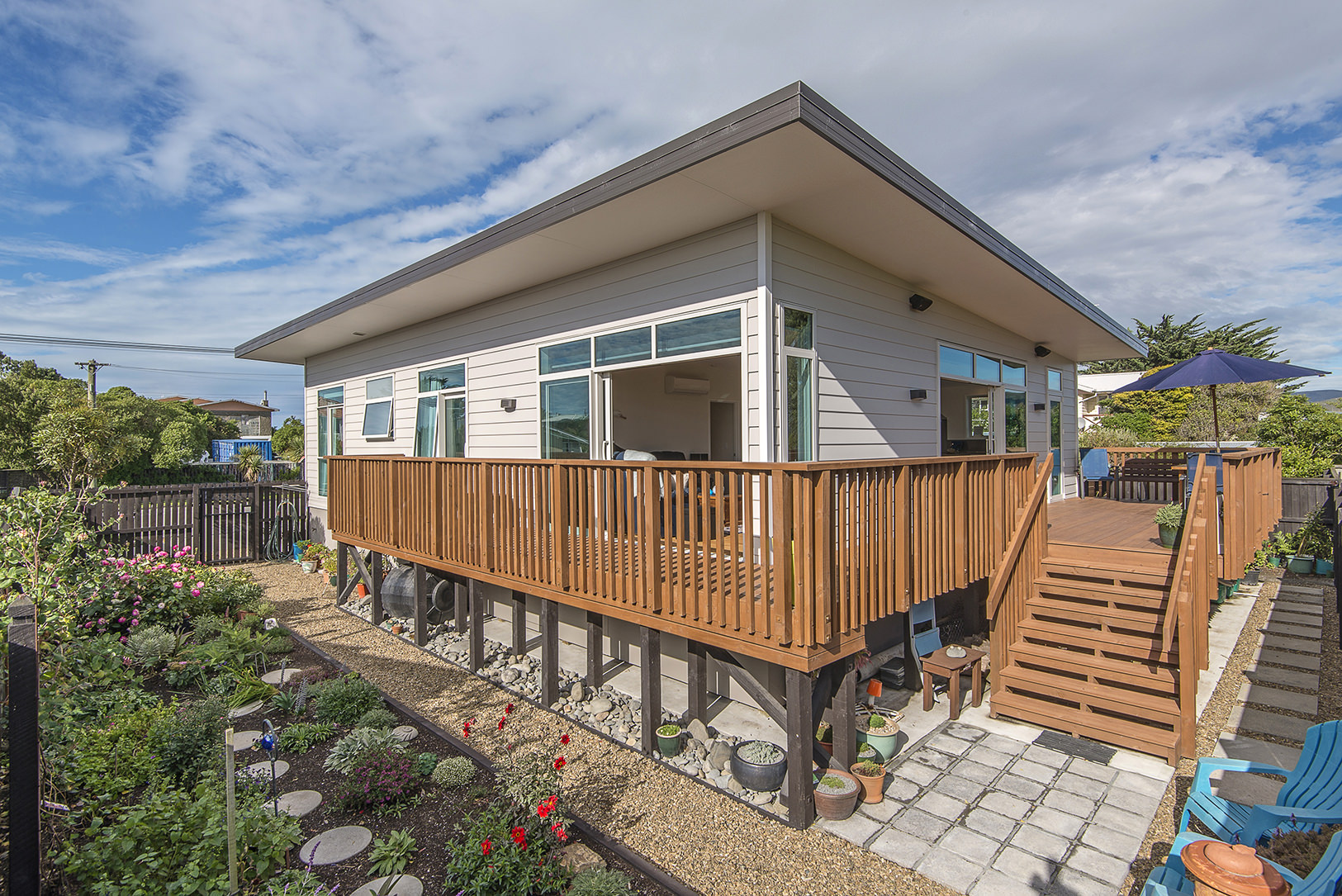 A little goes a long way. Just look at this prime example in Christchurch. Beautifully situated by the water, this low-maintenance, affordable home is big on everyday comforts. Its modest 138sqm footprint doesn’t hold it back. Three good-sized bedrooms provide more than enough space for the residents and their guests. The master bedroom, complete with ensuite, is thoughtfully located away from the others. A fresh white palette keeps things simple, while wood-look flooring creates a connection with the outdoors – as do the fibre glass sea birds, which really takes flight in the open-plan living space. Glazed sliders provide a direct link to alfresco living in the form of a large wraparound deck. The design makes it easy to follow the sun or enjoy a bit of shade at any time of day. The home is fully equipped with sustainable features including passive solar design, thermally broken construction, double insulation values, non-toxic building materials, and energy and water efficiency.