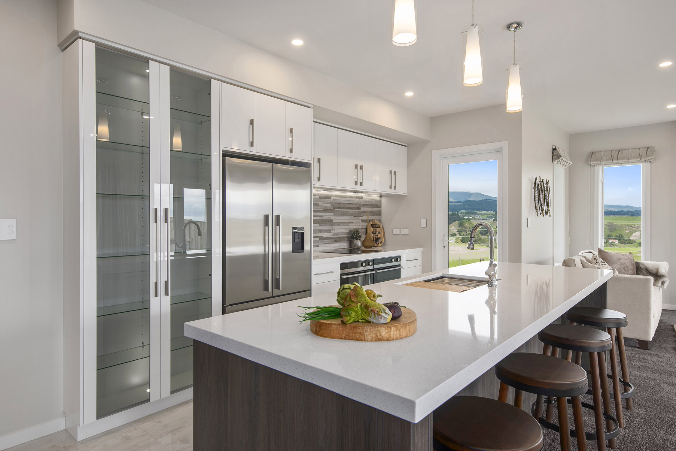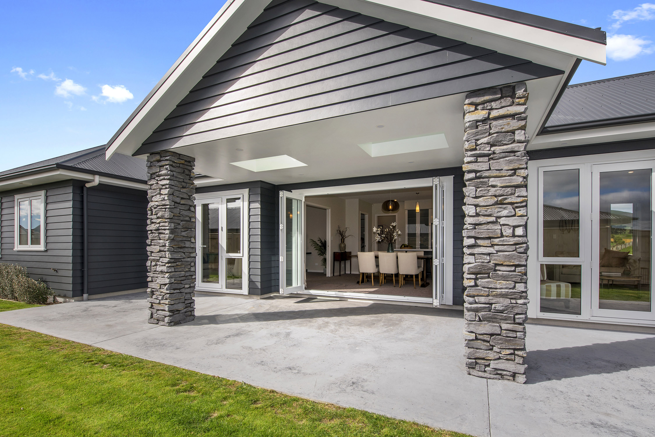This Palmerston North stunner puts a thoroughly modern spin on the classic weatherboard home. In smart charcoal with off-white trim, the tidy look is complemented by formal gardens and retaining walls. A gracious entry with vaulted ceiling entices you into spacious living areas. These exude effortless flow to the outdoors. A substantial portico promises outdoor living even when the weather is not obliging. The interior is a blissful marriage of traditional and modern styles. Wide skirtings and trims and 2.7m-high ceilings add a sense of timelessness and quality. The smart floor plan brings together three bedrooms, a study, two bathrooms and two living rooms on 262sqm. The galley-style kitchen and scullery form the sunny heart of the home with all the ingredients for everyday living and relaxed entertaining. High-gloss cabinetry with negative detailing, high-spec appliances, including side-by-side ovens, and engineered stone surfaces ensure a modern look. There’s also direct access to vegetable and herb gardens outside. A modern embodiment of timeless quality and style.