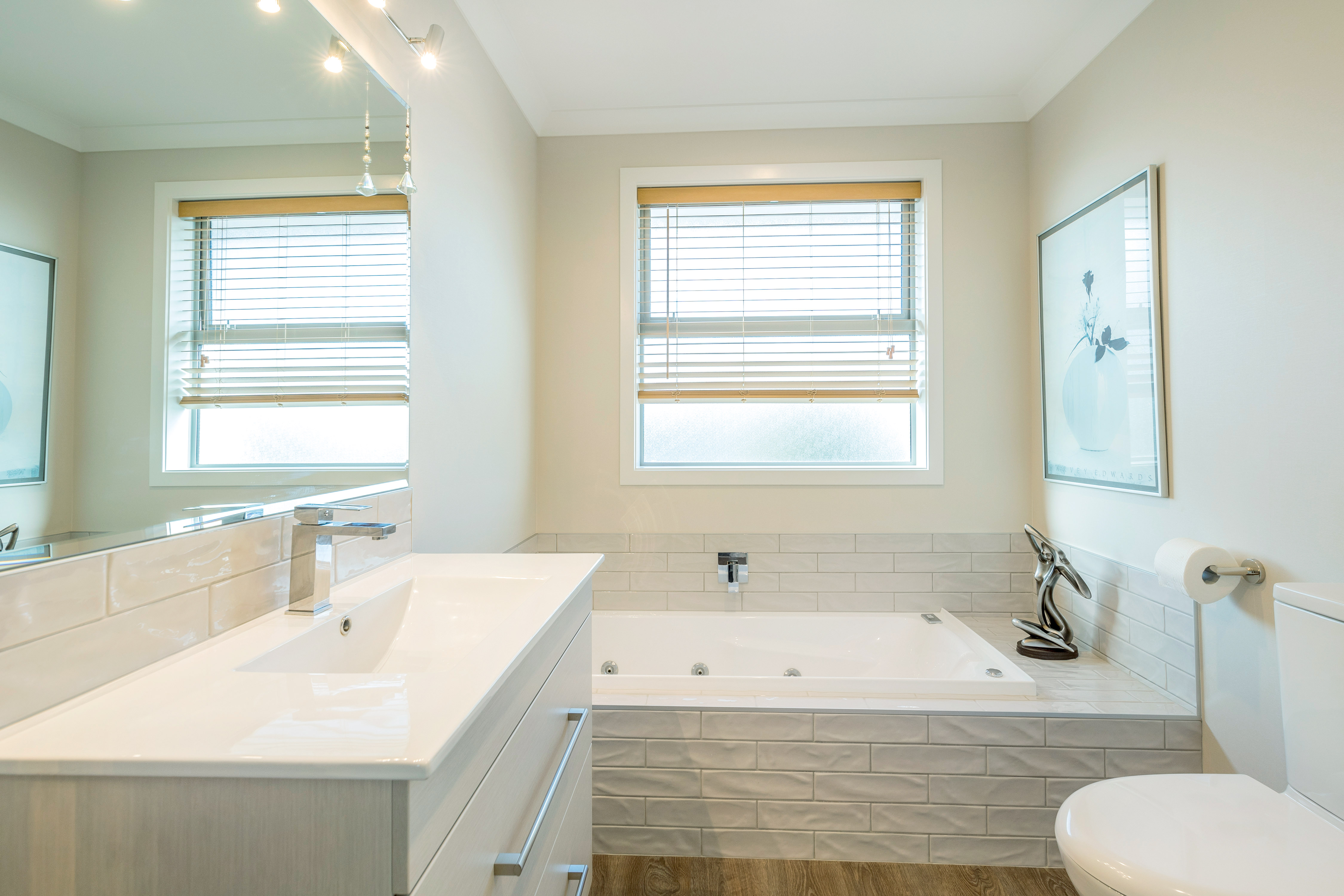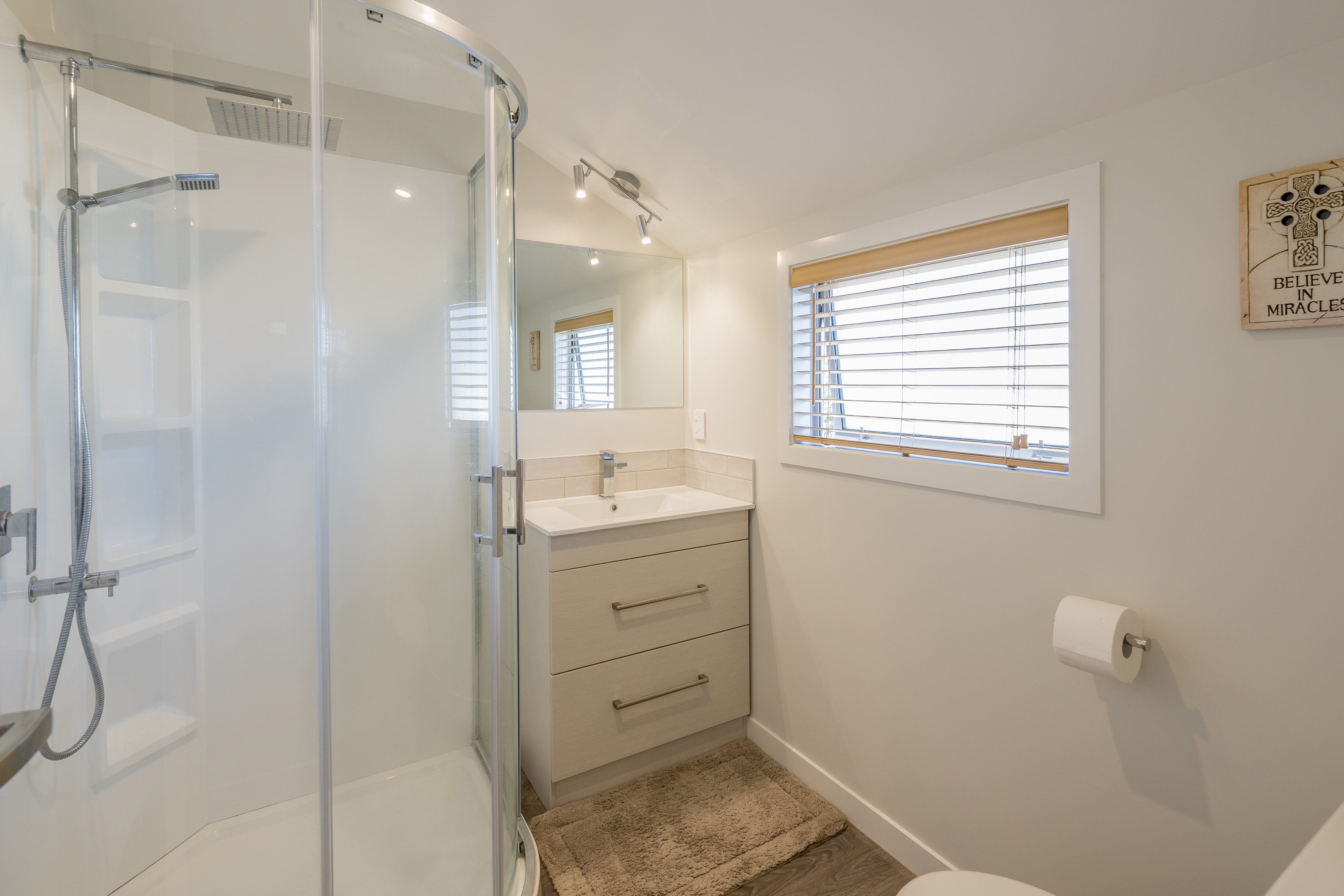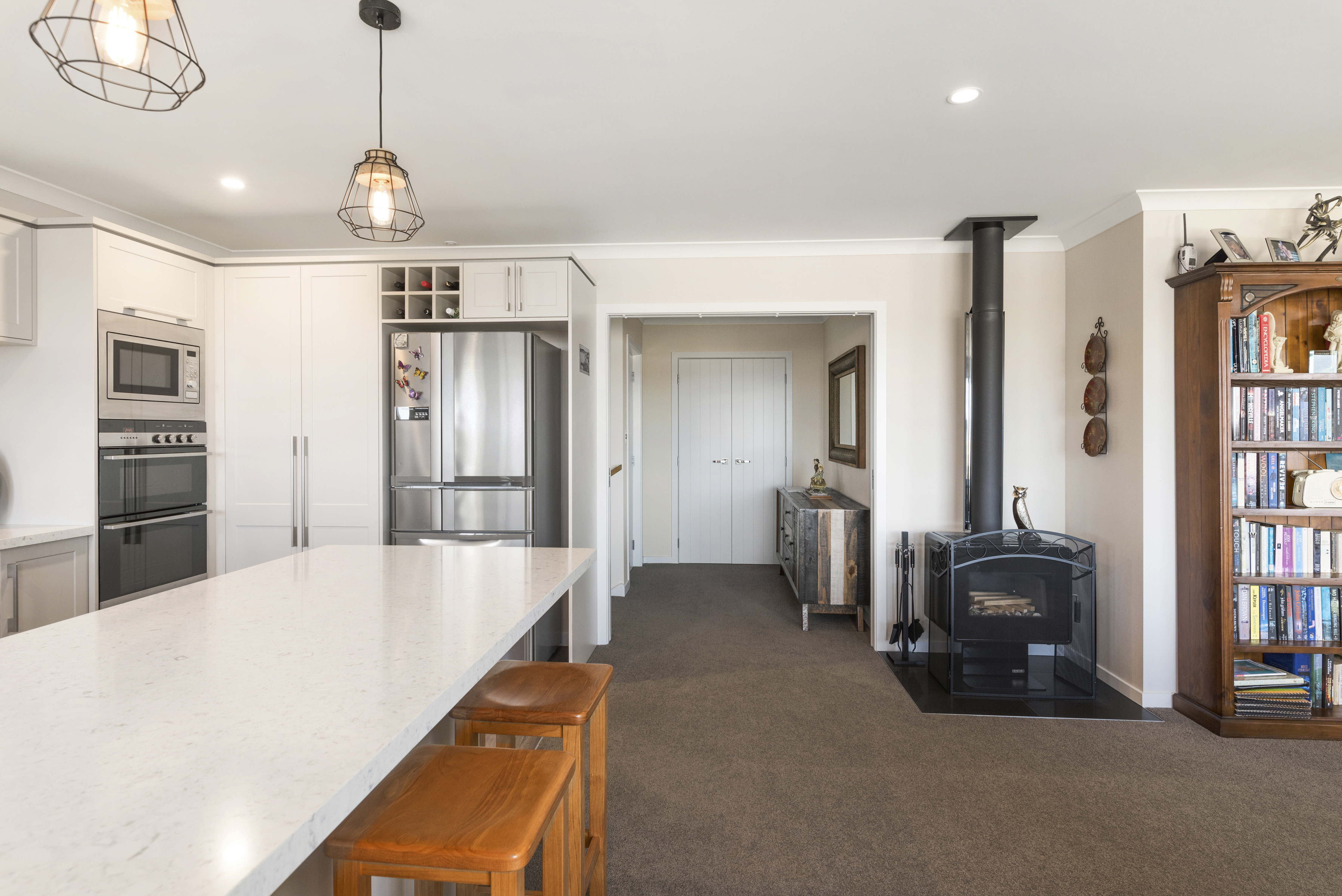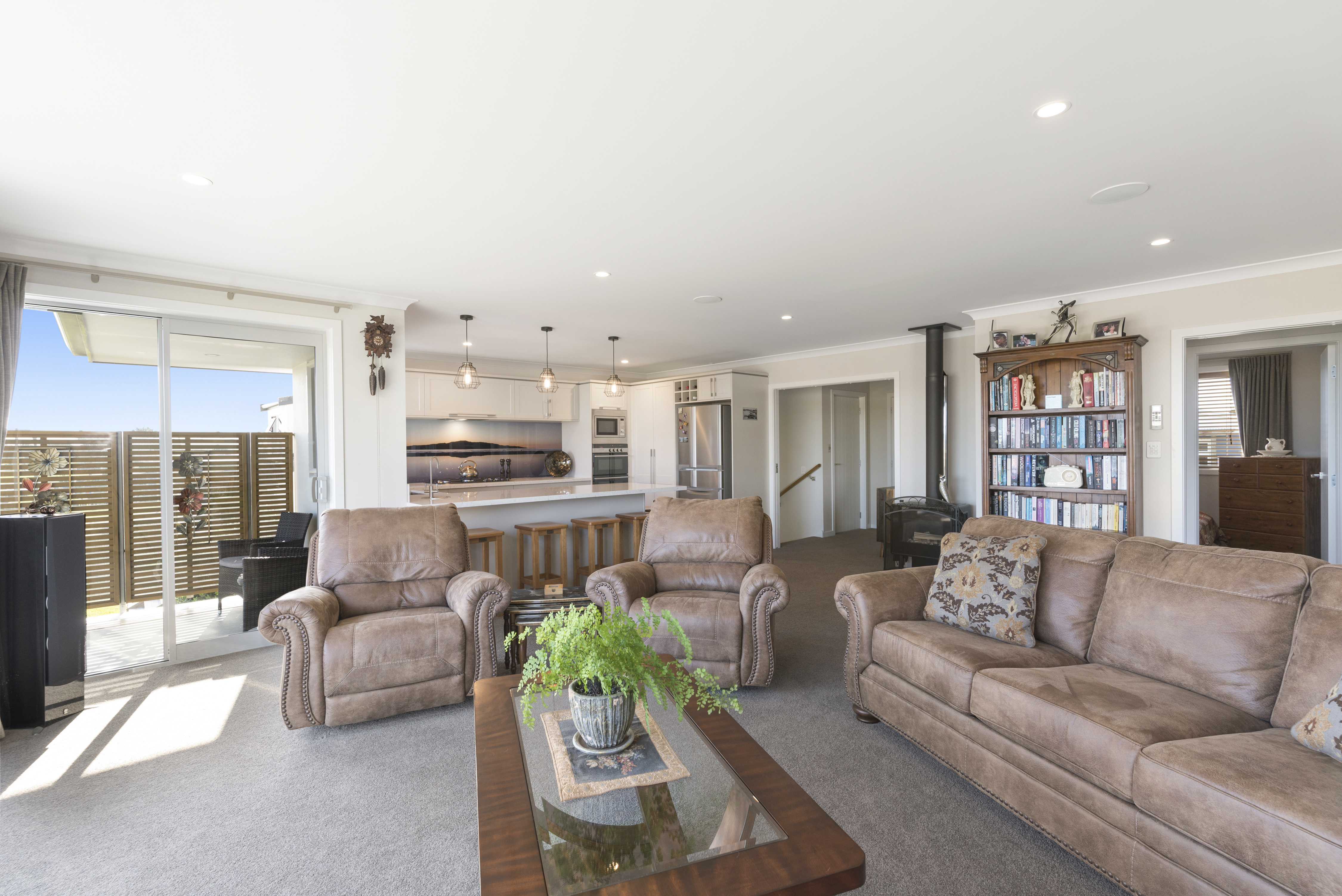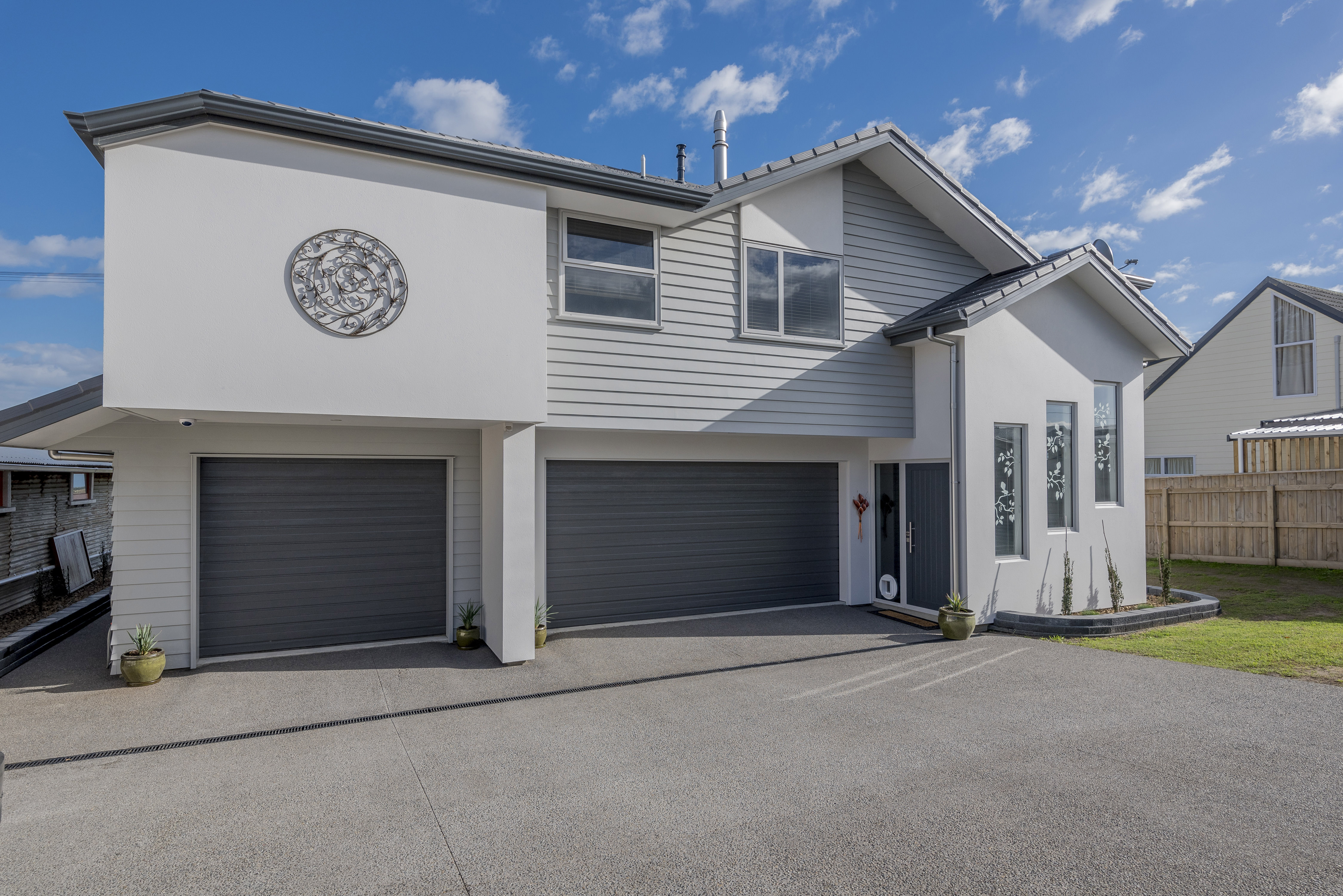 With views of the river-mouth and wildlife bird sanctuary, this is one well-situated home. The two-storey design, with gable ends and satin-finish steel roof tiles, sets the tone for the entire home. Low-maintenance weatherboard and stone add interest to the exterior – a mix of traditional and down-to-earth appeal. The front entrance is lit by a trio of windows, leading upstairs. Or you can take the home’s lift. At the top, step into the warm embrace of open-plan living with river views to foster conversation around a freestanding wood burner. Large glass sliding doors span the length of the living space flowing out to the balcony for wining and dining. The designer kitchen has its own picture-perfect view with a digital glass splashback featuring Kapiti Island. The master bedroom includes a well-designed double wardrobe and adjoining ensuite. Guests are accommodated with a large bedroom and bathroom also on this level. The fully tiled spa bath is a splendid place to relax and reflect in this wonderful home.
