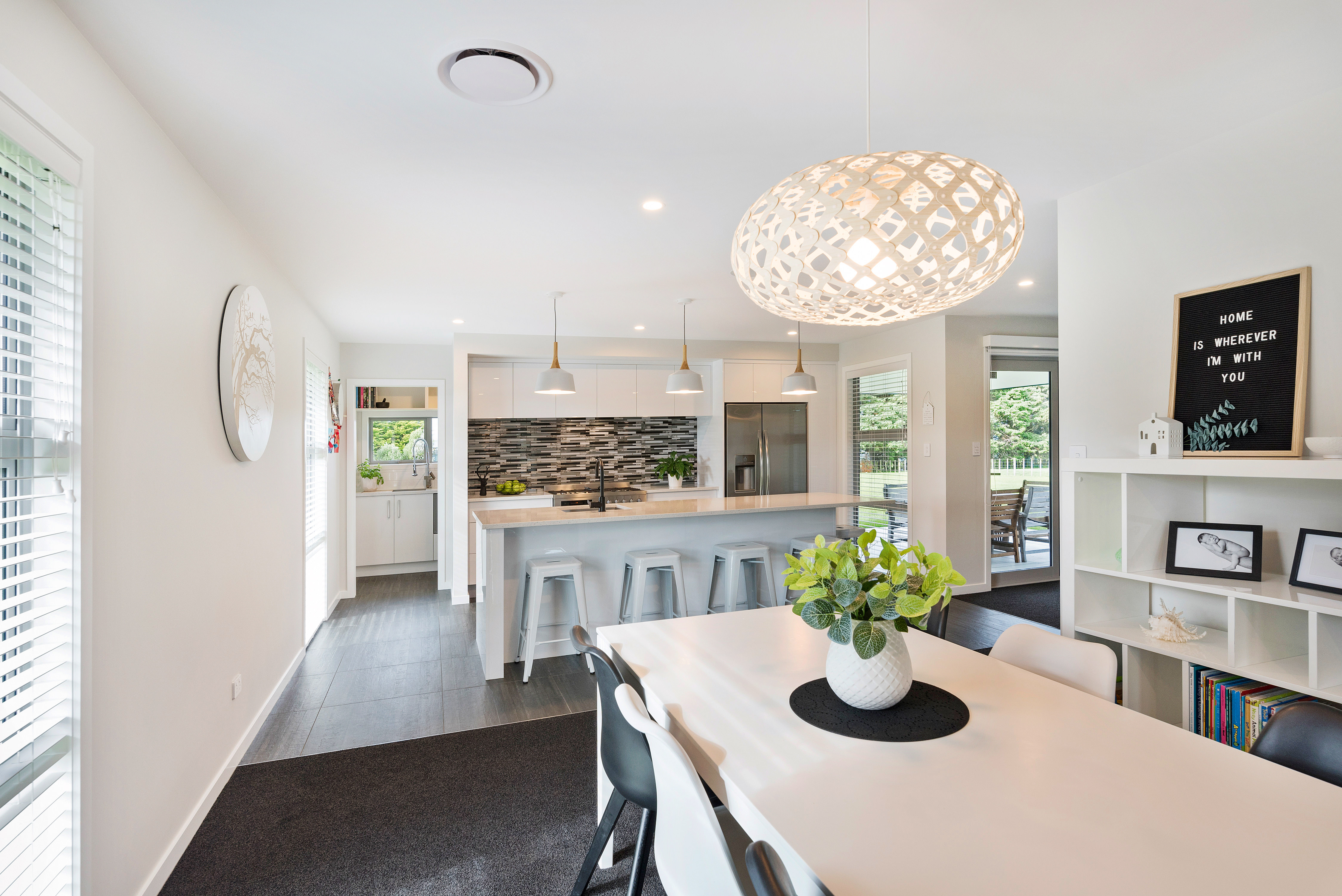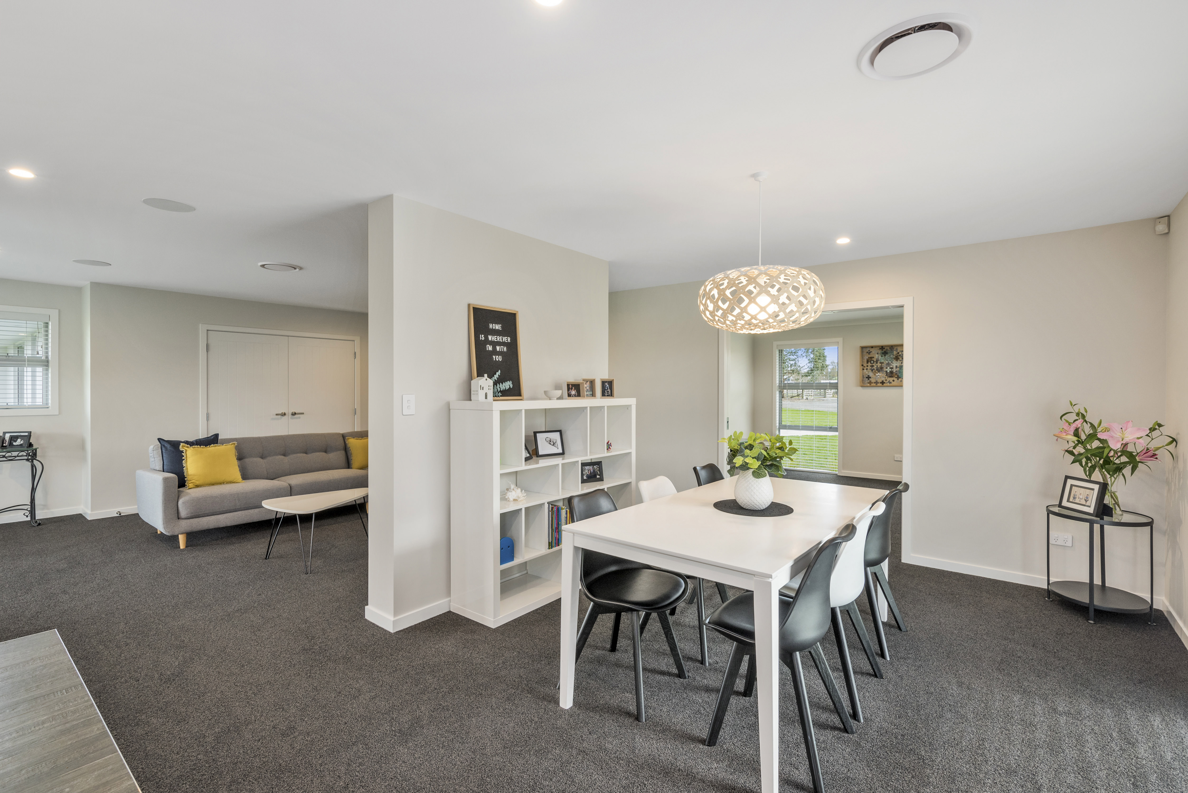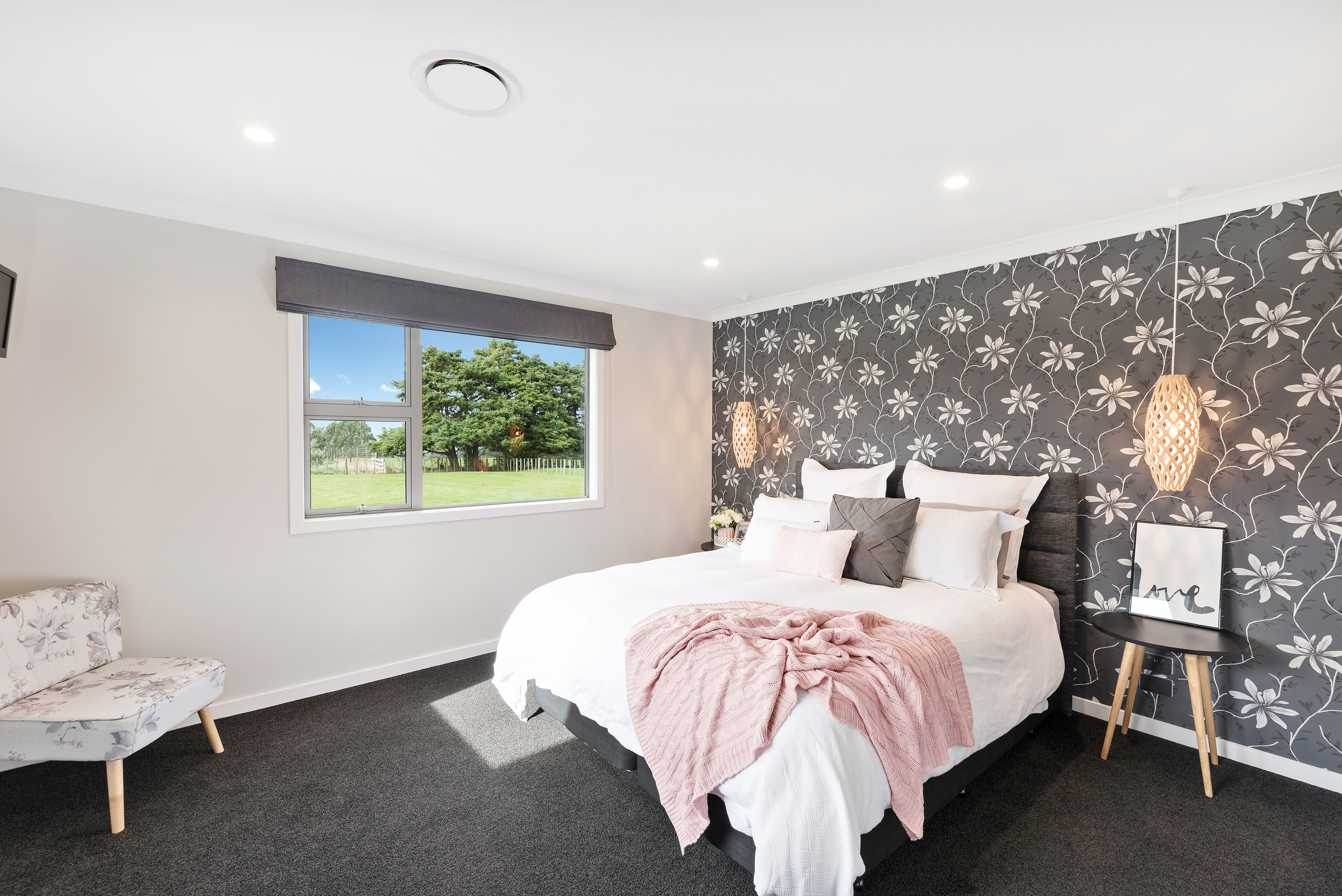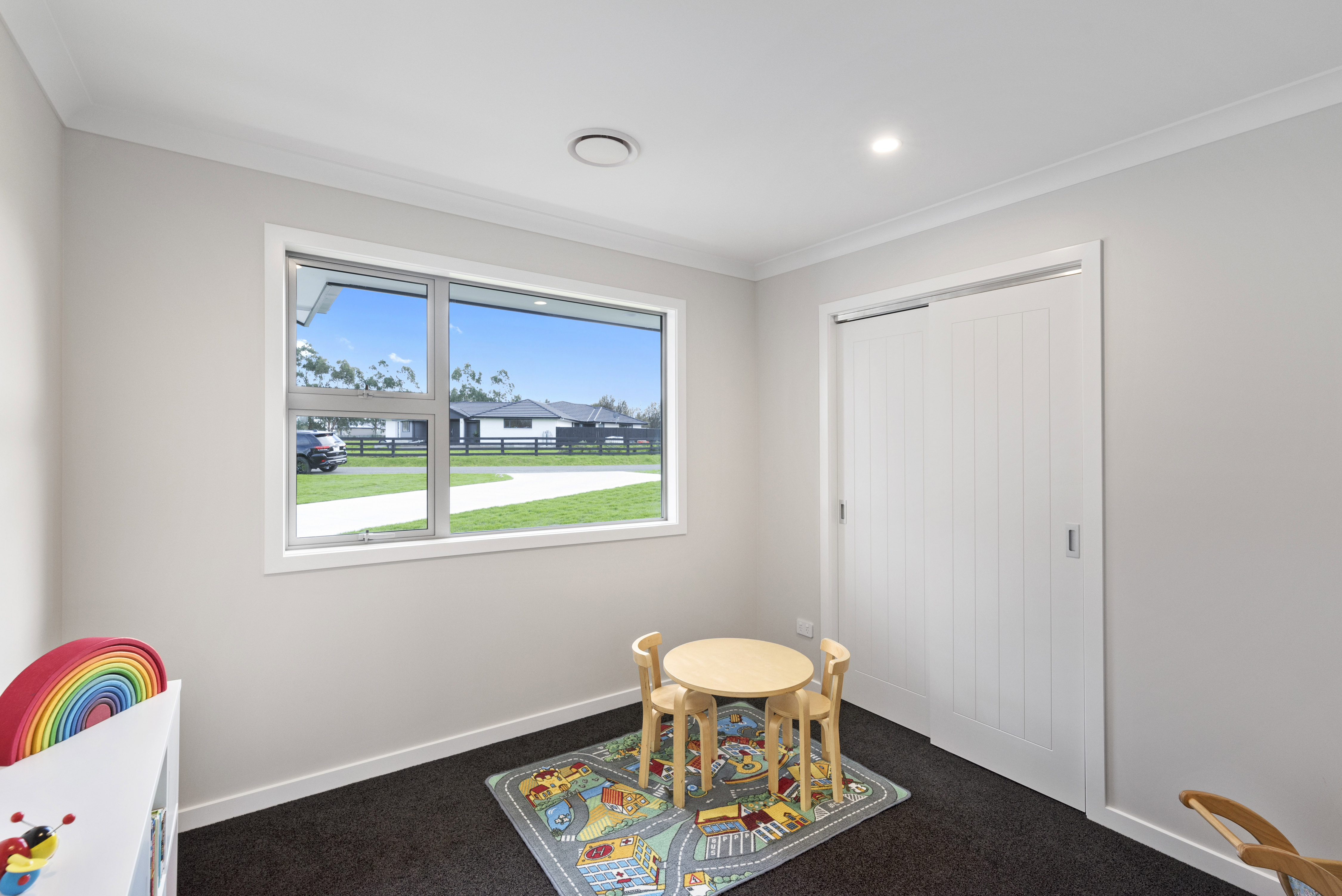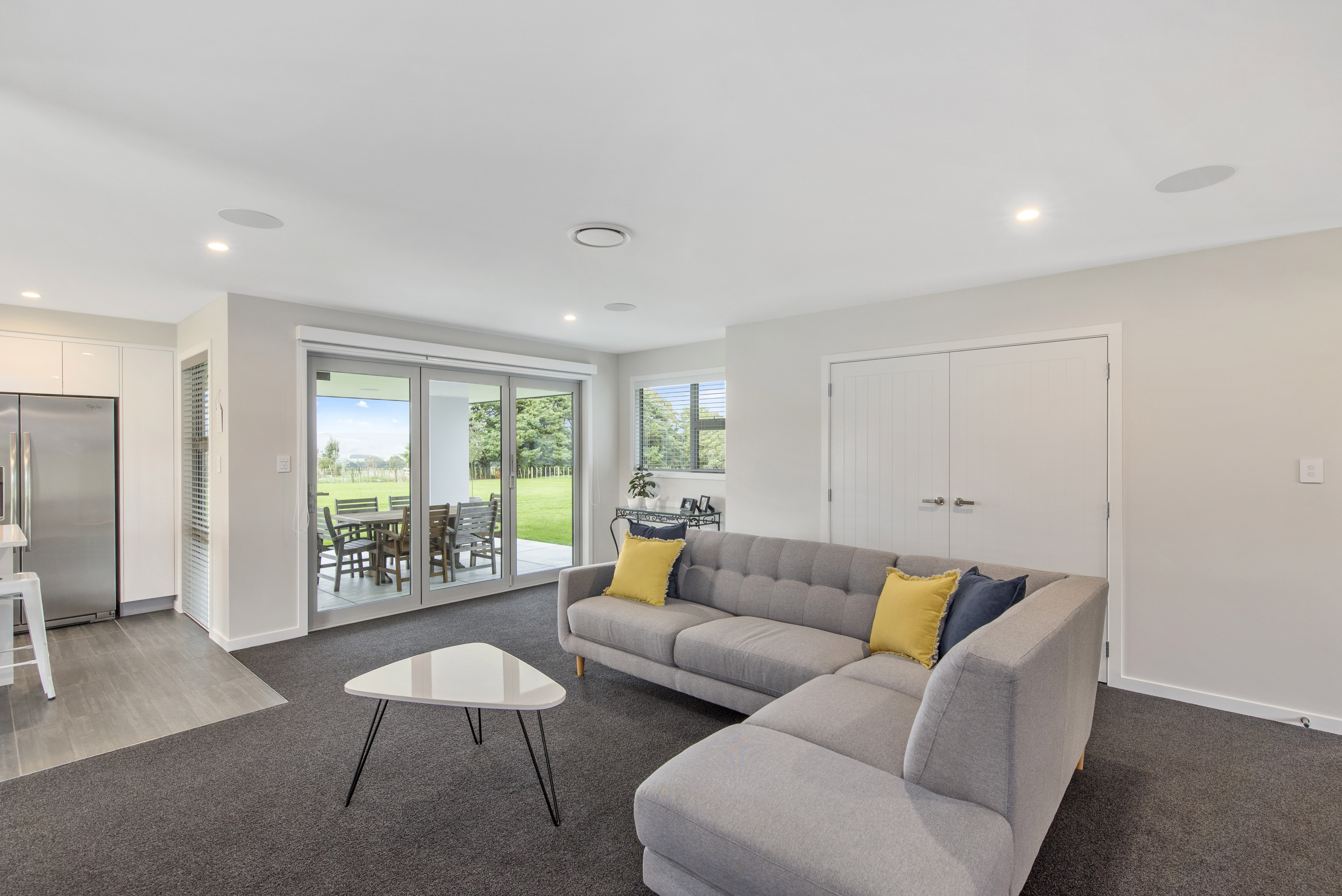 Designed to take advantage of the tranquil outlook, this well-designed home rests in the rolling meadows of Hiwinui, outside Palmerston North. Lifestyle, functionality and aesthetics go hand in hand, delivering a superb environment for a growing family. The entrance beckons you in with its feature wallpaper and lovely tiles. Plush carpet graces the open-plan living area, as do magical views captured through large bifold doors. The roofline extends to create an alfresco entertainment area that’s protected from the elements. Subtle divisions foster an appealing feeling of space in the living area. A formal lounge and study nook can both be opened or closed off from the main living zone. The high-gloss kitchen features a scullery with views. The main passageway leads to a triple garage, laundry, fully tiled main bathroom and four bedrooms. The master suite is spectacular with a double walk-in robe and fully tiled ensuite with level entry shower. A ducted heating system doubles as a cooling device in summer. This is a home for all seasons.