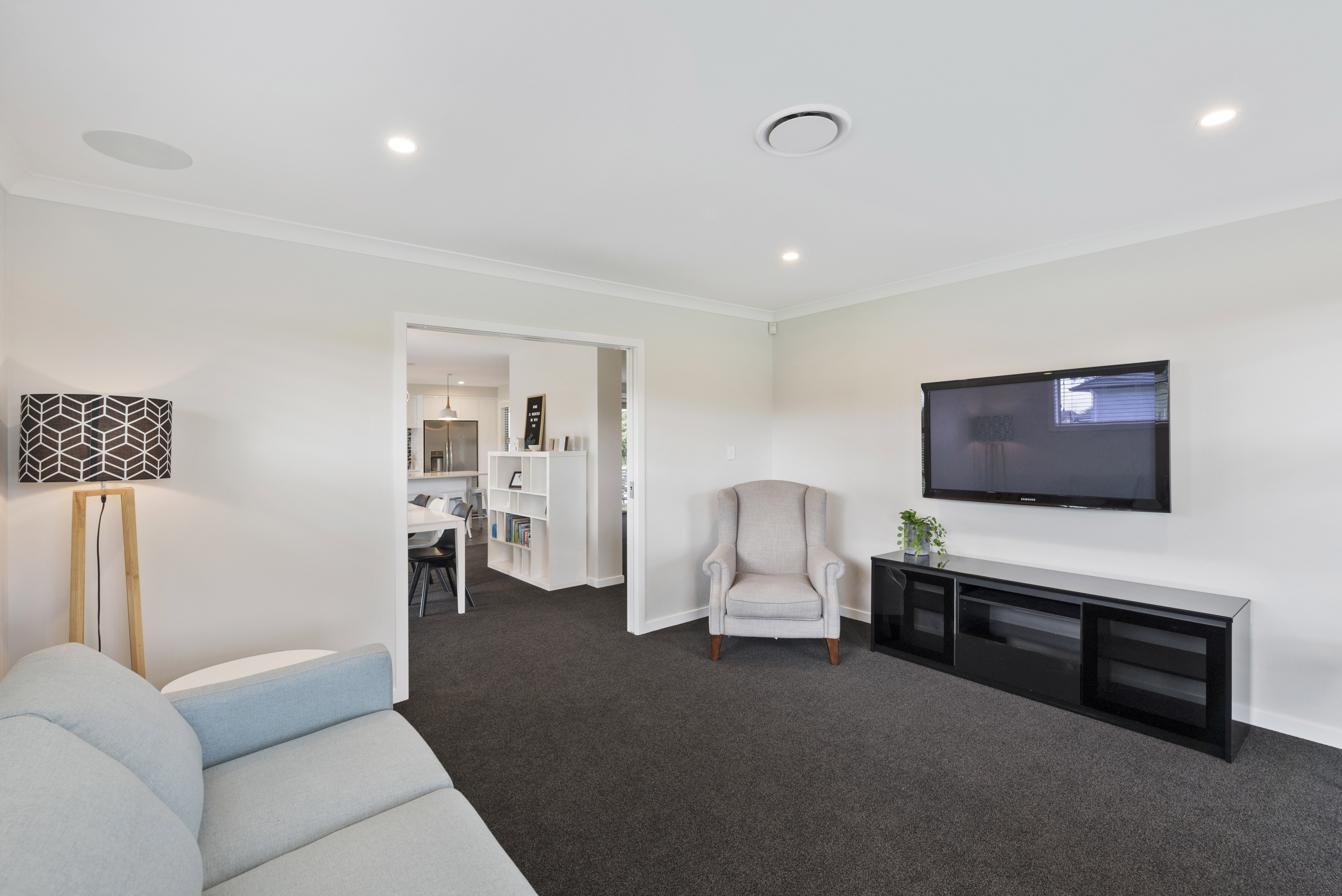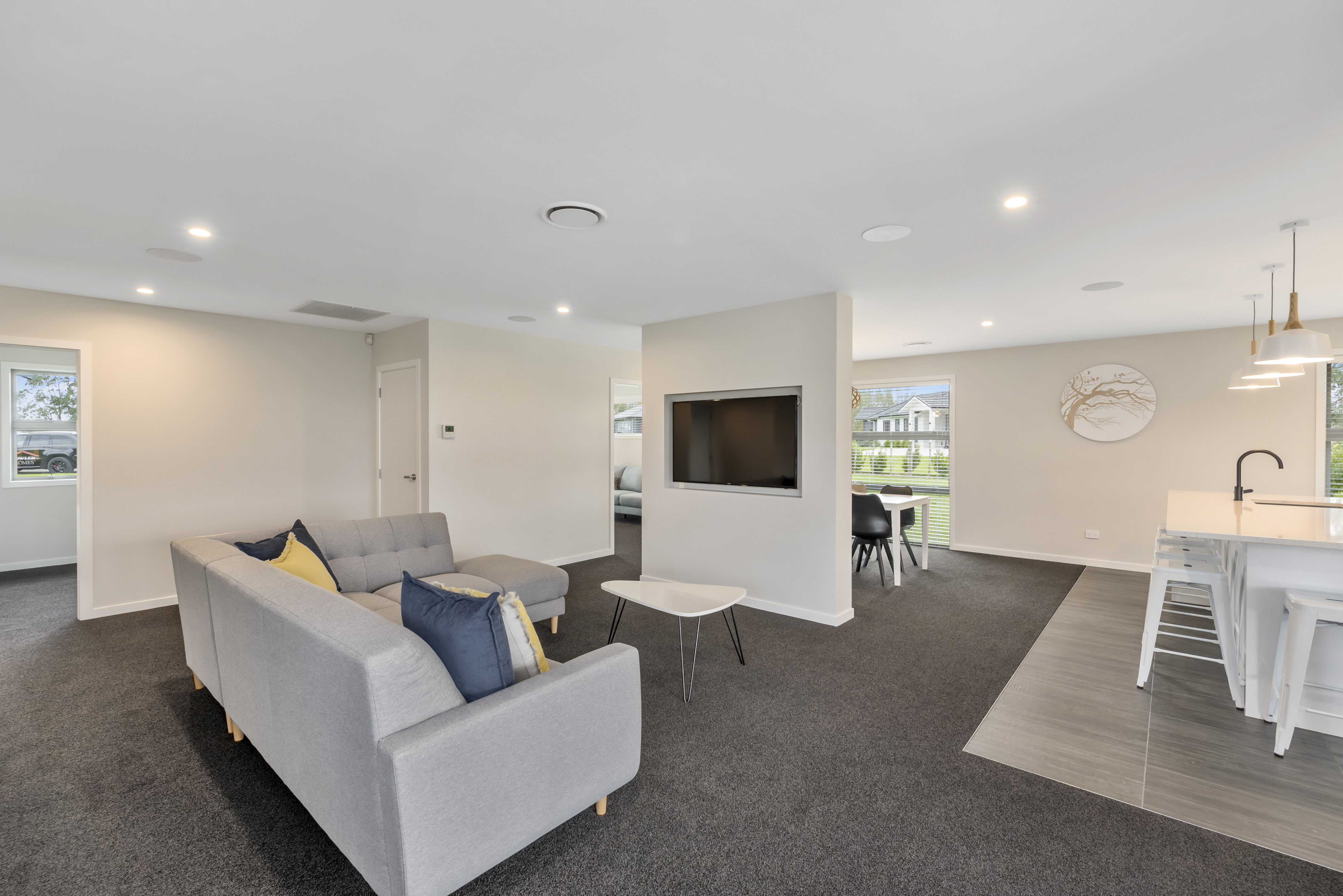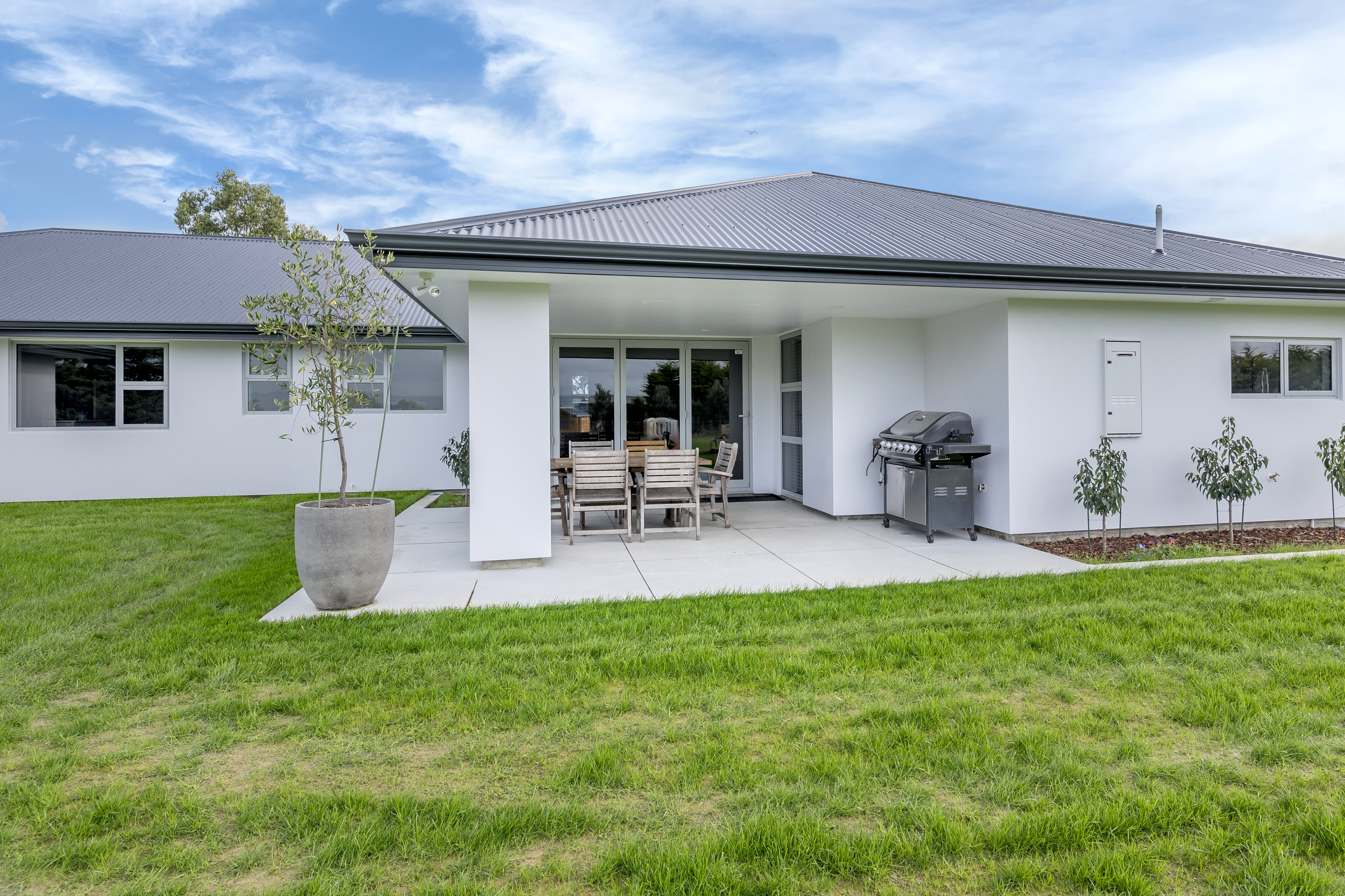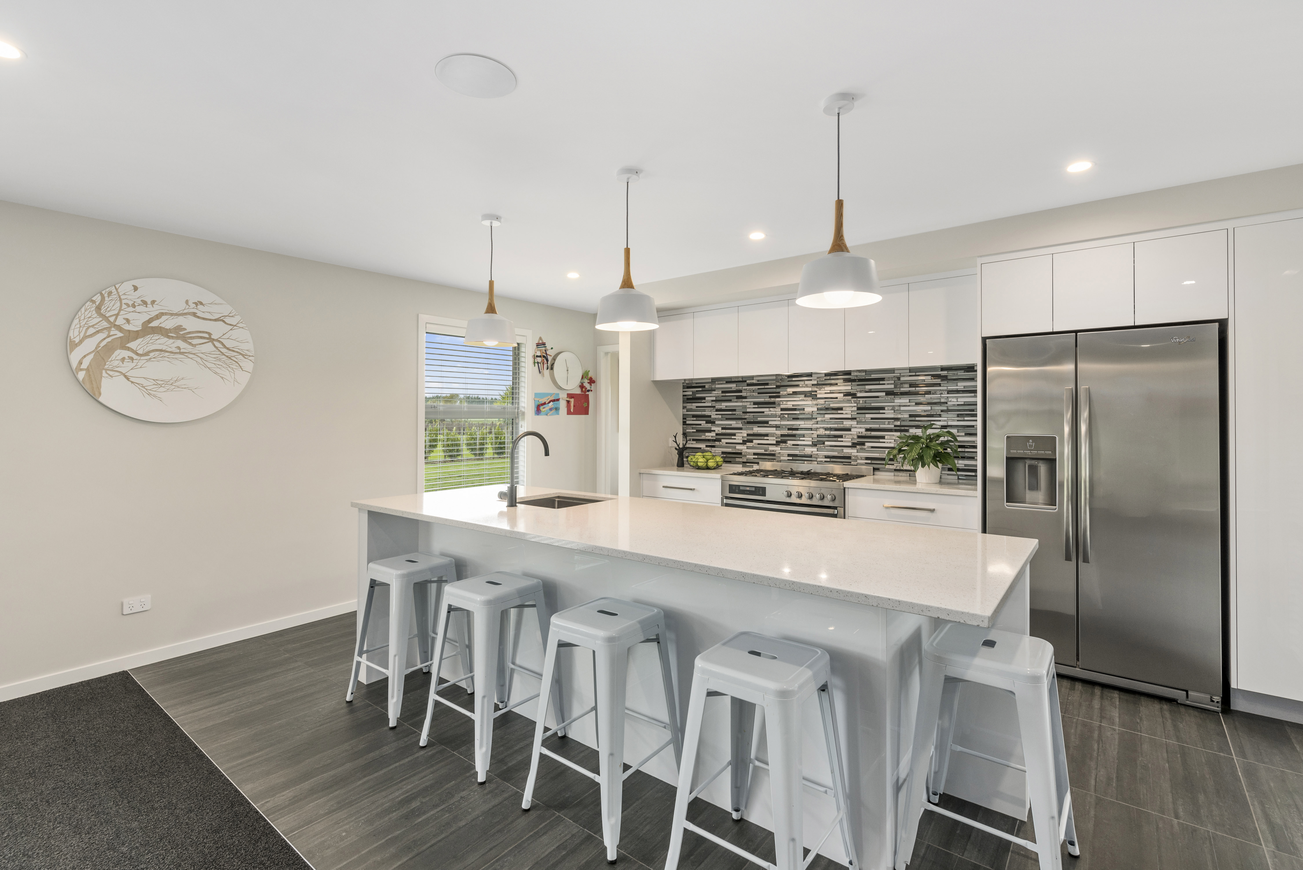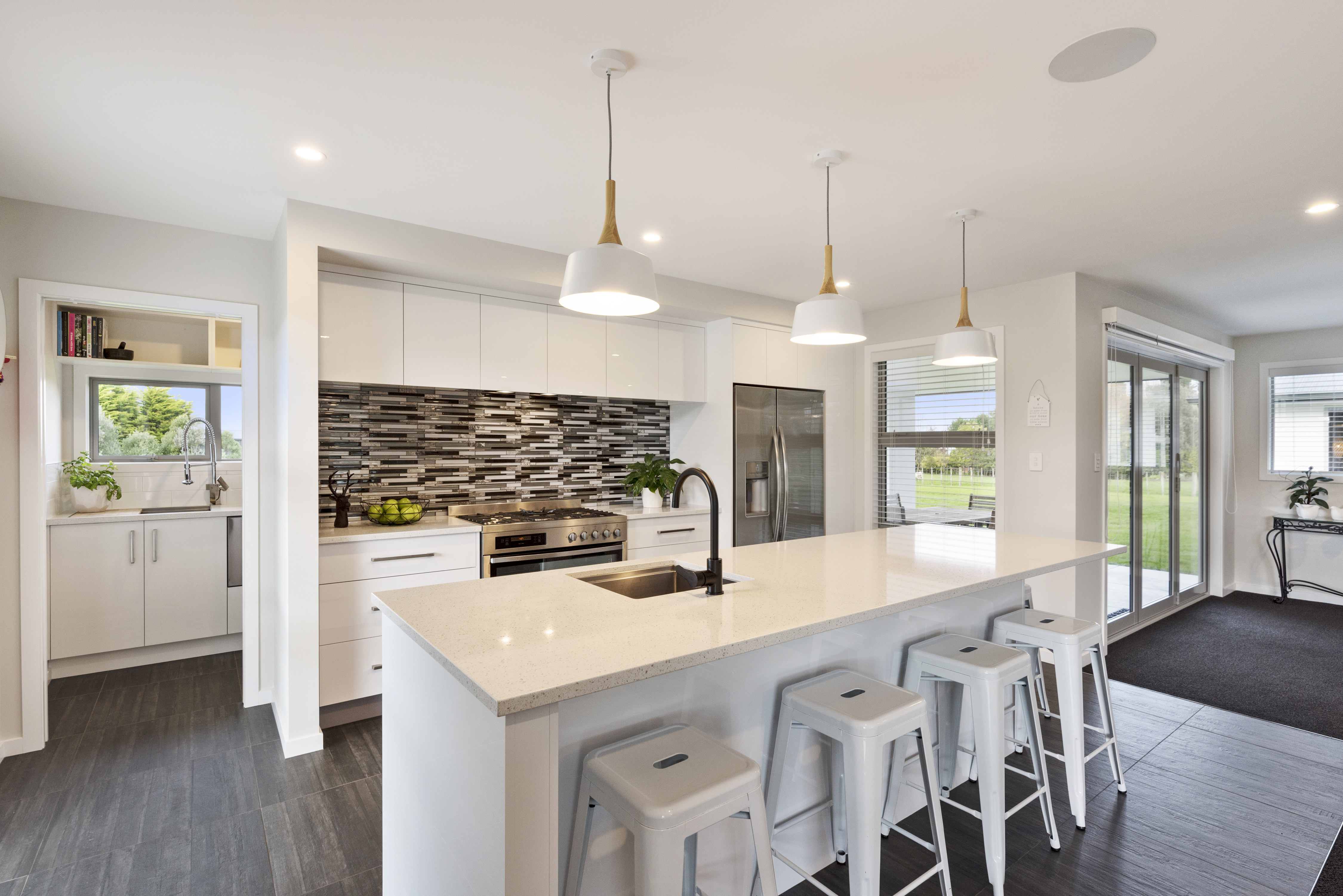 Designed to take advantage of the tranquil outlook, this well-designed home rests in the rolling meadows of Hiwinui, outside Palmerston North. Lifestyle, functionality and aesthetics go hand in hand, delivering a superb environment for a growing family. The entrance beckons you in with its feature wallpaper and lovely tiles. Plush carpet graces the open-plan living area, as do magical views captured through large bifold doors. The roofline extends to create an alfresco entertainment area that’s protected from the elements. Subtle divisions foster an appealing feeling of space in the living area. A formal lounge and study nook can both be opened or closed off from the main living zone. The high-gloss kitchen features a scullery with views. The main passageway leads to a triple garage, laundry, fully tiled main bathroom and four bedrooms. The master suite is spectacular with a double walk-in robe and fully tiled ensuite with level entry shower. A ducted heating system doubles as a cooling device in summer. This is a home for all seasons.