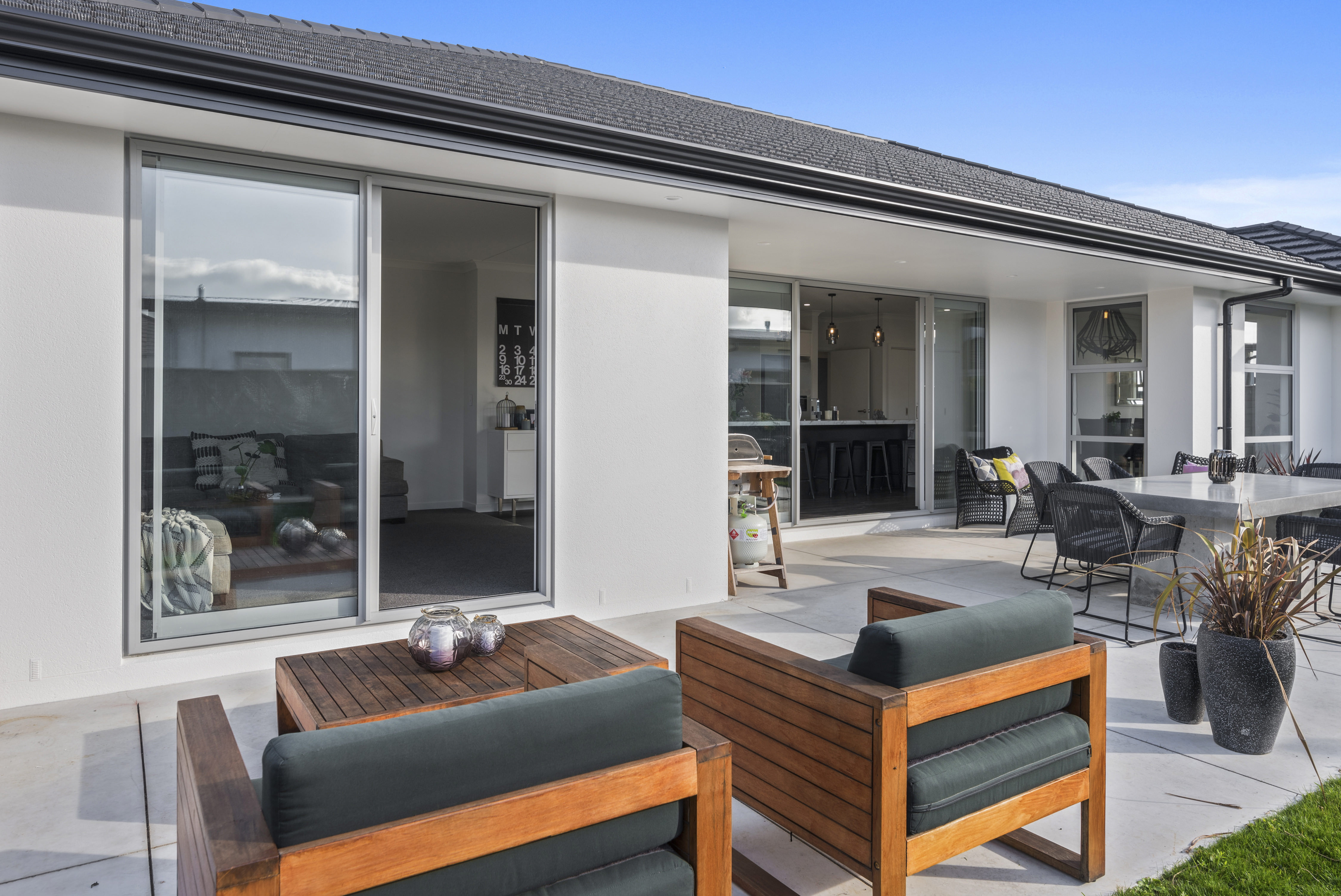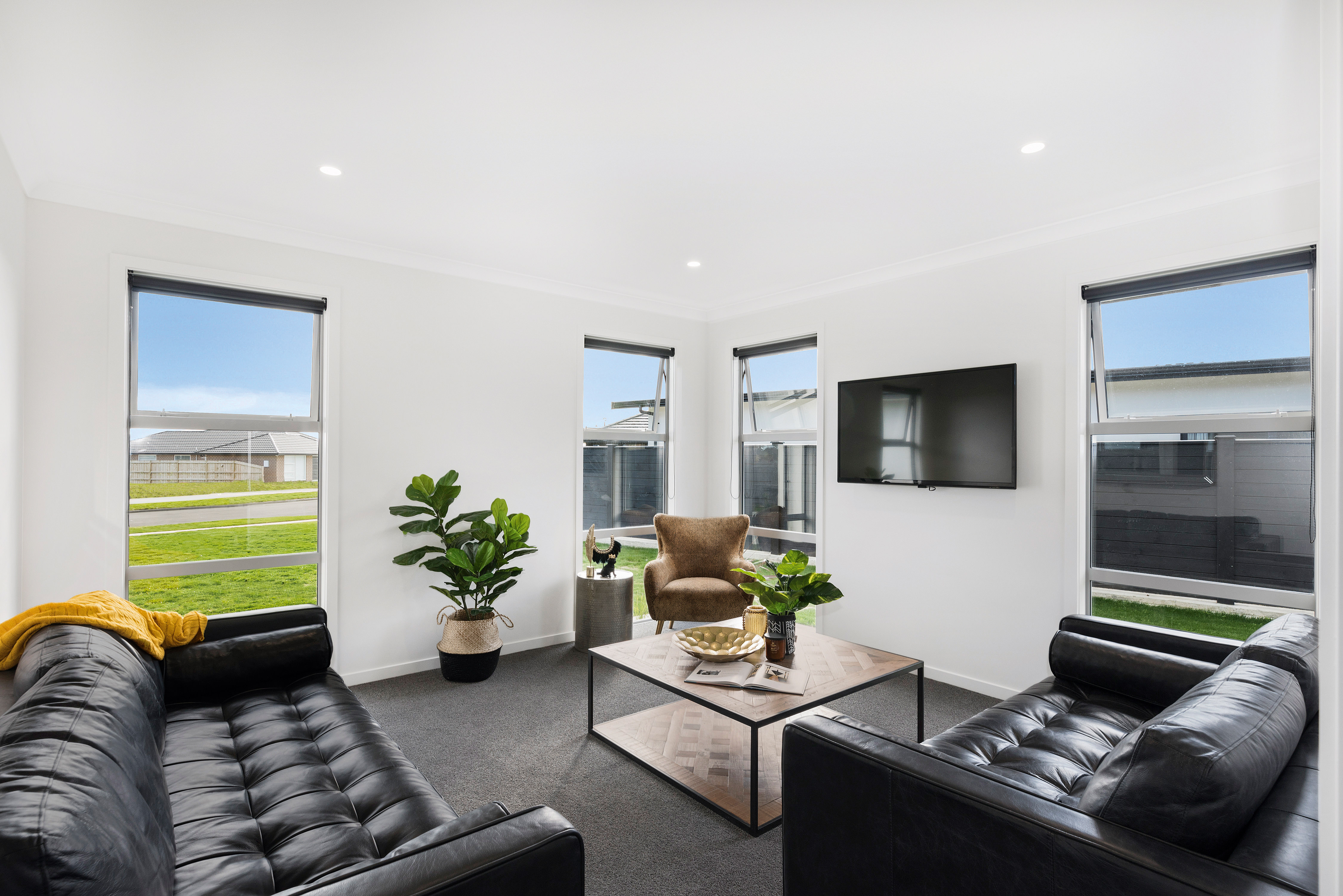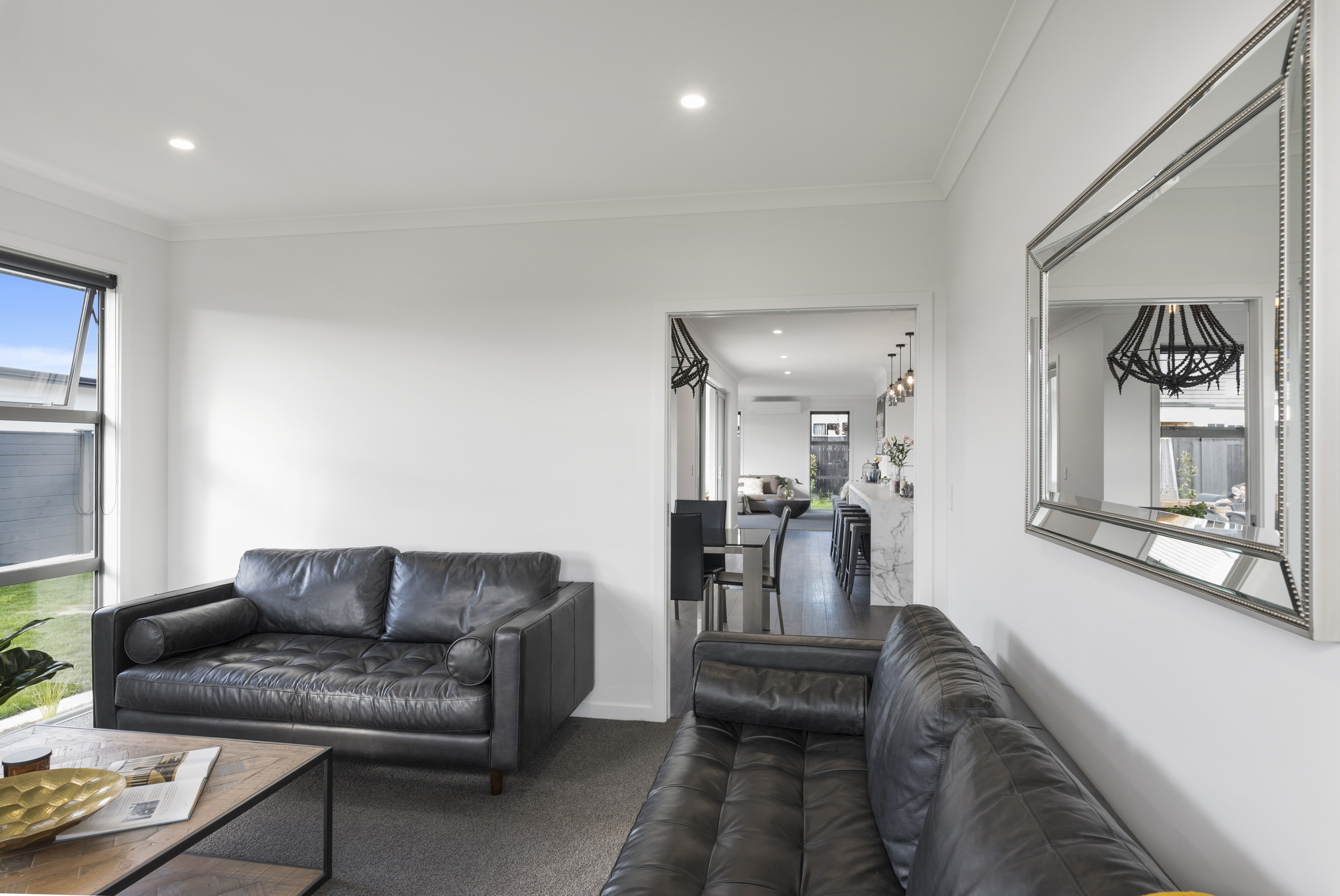 Fresh-faced and ready for action, this 234sqm home in Palmerston North is destined to please. Attractive vinyl plank flooring flows into the elegant open plan-living area. The breakfast bar with marble waterfall end is perfect for serving hors d’oeuvres and cocktails. Choose between indoor seating or the covered outdoor living area. A walk-in pantry hides all manner of sins. Positioned through an over-sized cavity sliding door, the well-equipped media room is ideal for movie nights. Low-maintenance yet luxurious, the main bathroom continues the home’s attention to detail. A wall-hung vanity, separate shower and large tile-encased bath accommodate the growing family. The separate toilet ensures privacy and convenience. This four-bedroom home plays favourites with the master suite, which boasts a walk-in wardrobe and beautifully detailed ensuite. The fully insulated double garage and separate laundry take care of all those dirty jobs. This home is an absolute clean sweep for family life and entertaining.