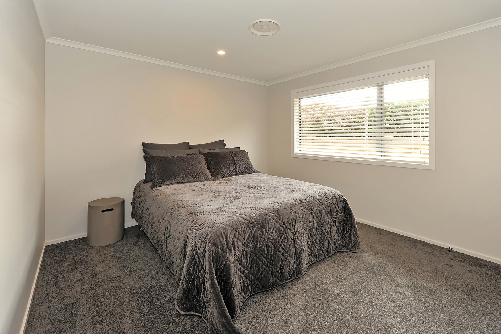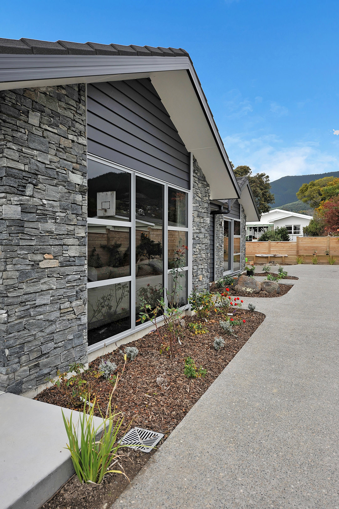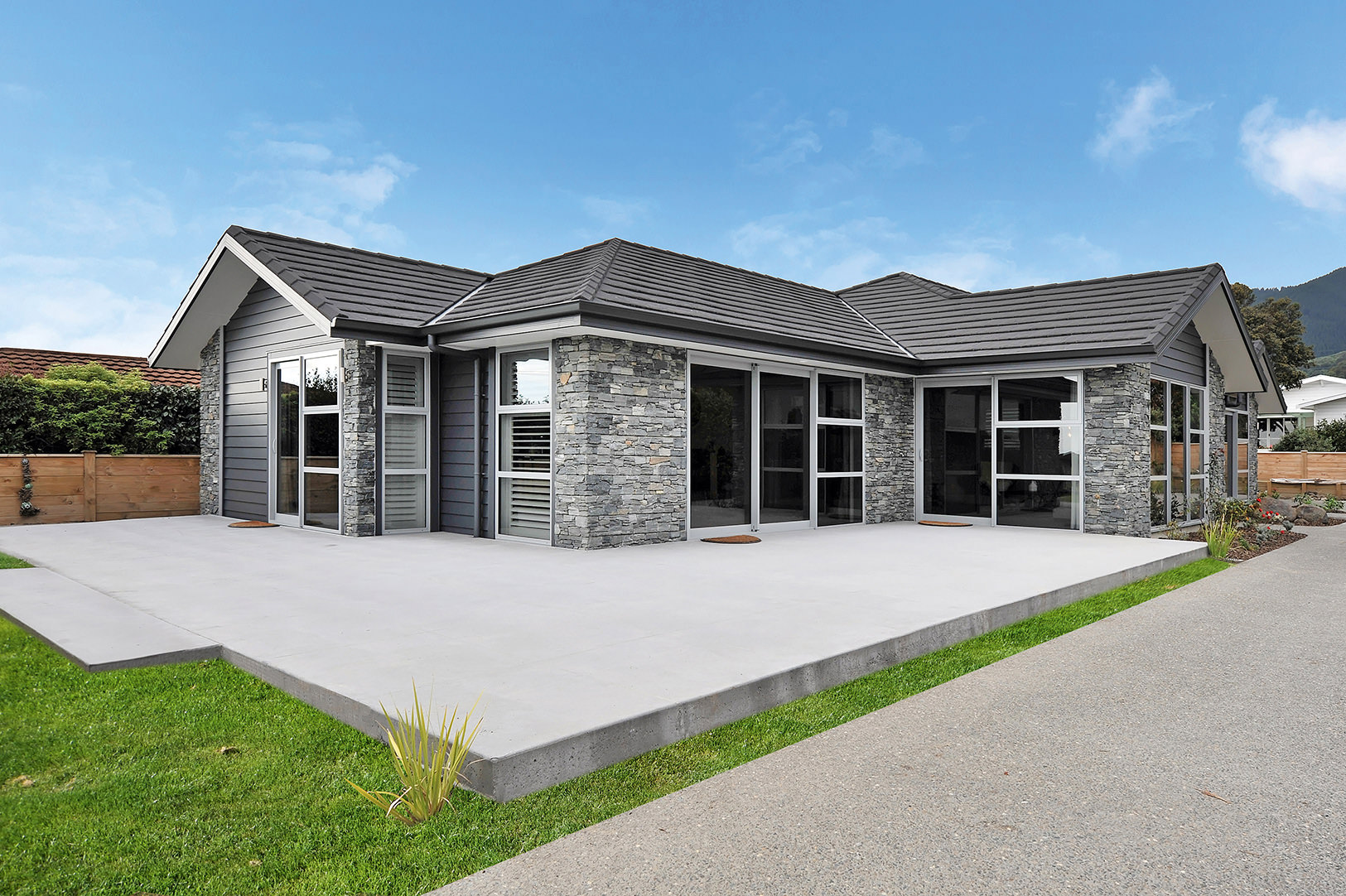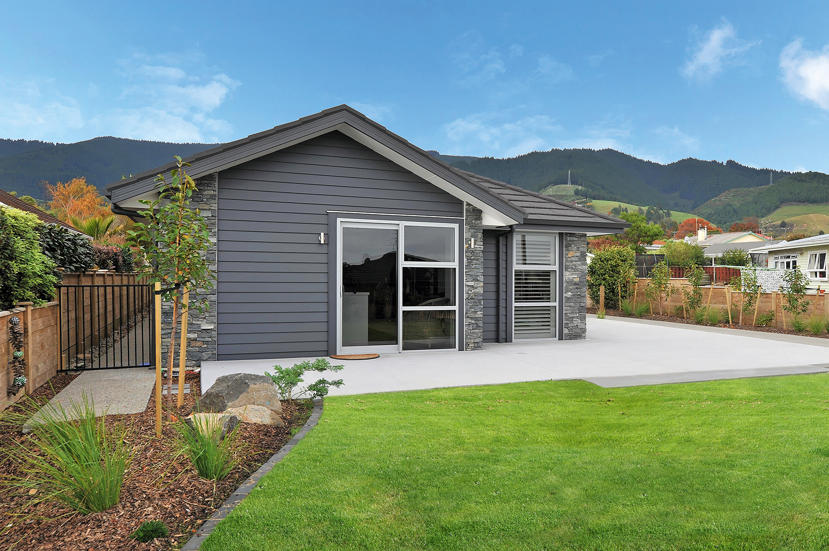 Elegantly enrobed in shades of grey, this Nelson region residence deserves a closer look. Weatherboard and schist cladding creates lovely exterior appeal that’s eye-catching without being flashy. The colour palette is echoed in the well-appointed interiors. Step through the tiled entrance hall and experience the warm welcome of the open-plan zone – the heart of this three-bedroom, two-bathroom home. A mix of stud heights adds architectural interest throughout. Both the master bedroom and separate lounge are capped off with pitched ceilings. Bifold doors and carpet create a cosy feel in the second lounge. Top-of-the-range appliances and stacks of storage make the kitchen a dream space for the resident entertainer. A mirrored splashback amplifies the feeling of space. The scullery is a lifesaver for concealing clutter when there’s company. All living spaces plus the master bedroom spill out to a large L-shaped patio. A retreat for two, the master also boasts a walk-in robe and ensuite with dual vanities so the owners can get ready on the double.