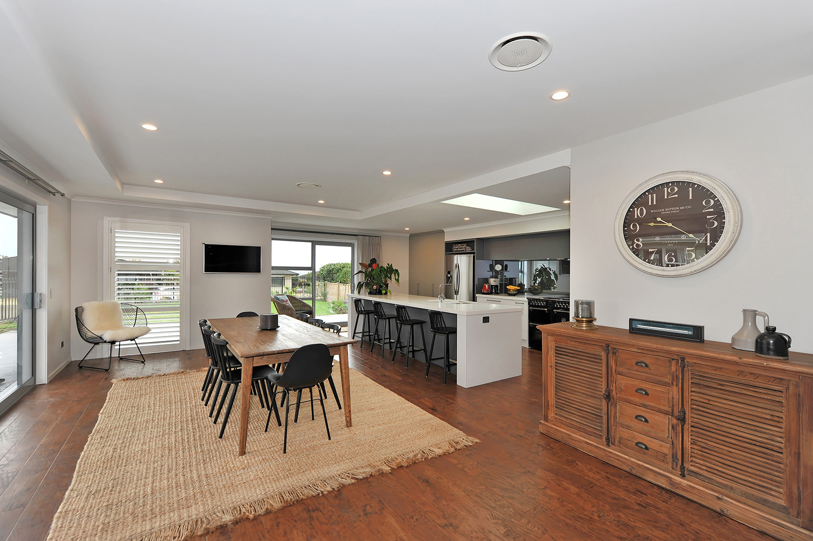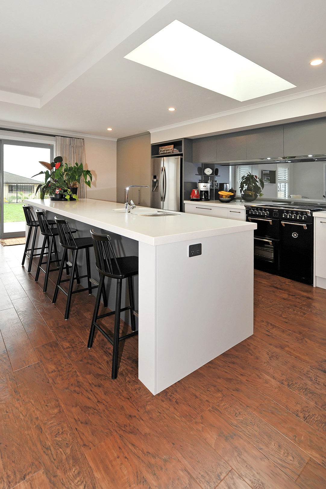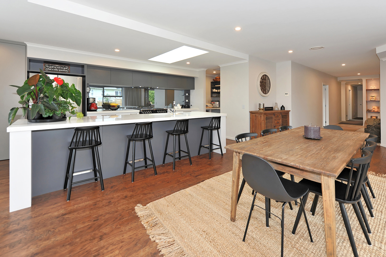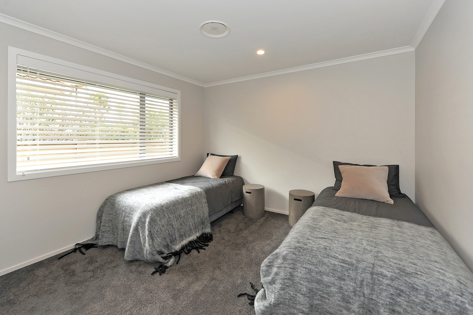 Elegantly enrobed in shades of grey, this Nelson region residence deserves a closer look. Weatherboard and schist cladding creates lovely exterior appeal that’s eye-catching without being flashy. The colour palette is echoed in the well-appointed interiors. Step through the tiled entrance hall and experience the warm welcome of the open-plan zone – the heart of this three-bedroom, two-bathroom home. A mix of stud heights adds architectural interest throughout. Both the master bedroom and separate lounge are capped off with pitched ceilings. Bifold doors and carpet create a cosy feel in the second lounge. Top-of-the-range appliances and stacks of storage make the kitchen a dream space for the resident entertainer. A mirrored splashback amplifies the feeling of space. The scullery is a lifesaver for concealing clutter when there’s company. All living spaces plus the master bedroom spill out to a large L-shaped patio. A retreat for two, the master also boasts a walk-in robe and ensuite with dual vanities so the owners can get ready on the double.