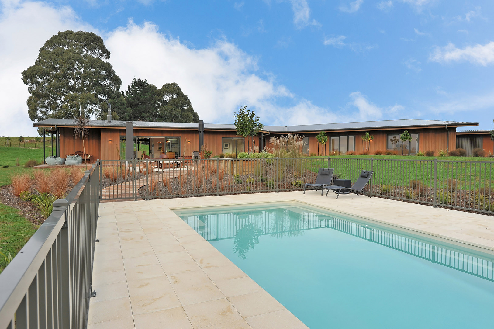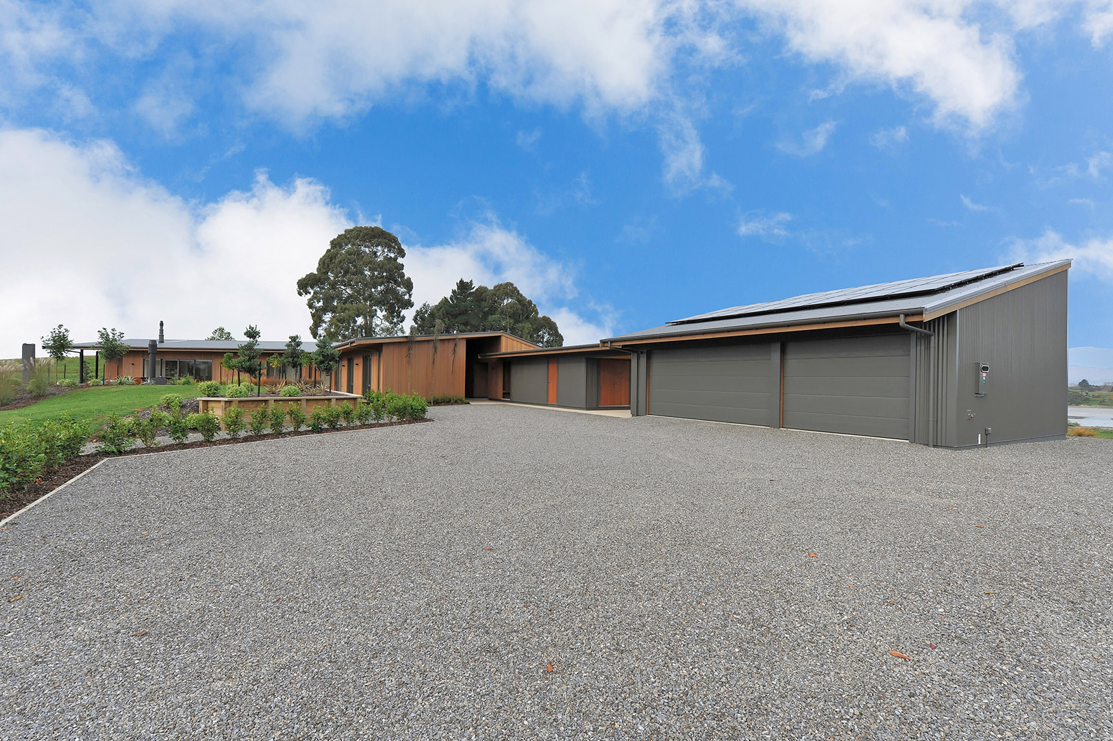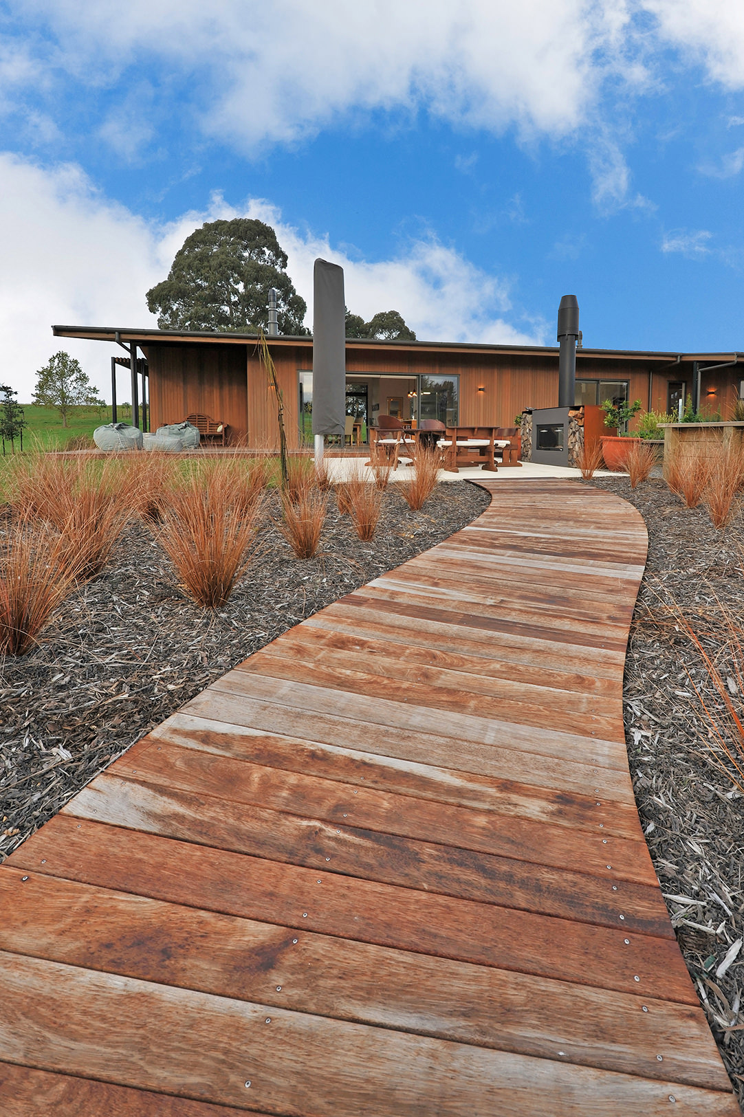 This cedar-clad stunner wraps around the top of a hill in Redwood Valley with rolling slopes below. The result: A variety of outlooks and an assortment of unique outdoor living areas. The home’s main gable roof connects the garage, workshop, wine cellar and firewood buildings to the dwelling while framing views to the estuary. The interior is swimming in space and light. It all starts at the front entrance which flows through a glass gallery into the family room with its high ply ceiling – the piece de resistance of the open-plan zone. Every room pays heed to the landscape and there are many outdoor areas to enjoy, from small and intimate to spacious and open. Different levels of shade and shelter cater to weather conditions and time of day. Utilising a long, narrow layout, the 360sqm single-level home opens itself superbly to solar gain. Cross ventilation is also a happy result of the design. Three bedrooms, two bathrooms and two living areas promise modern comfort. An understated home that exudes such dignity and grace, it scooped the Nulook New Home $700,000-$1 Million National title.