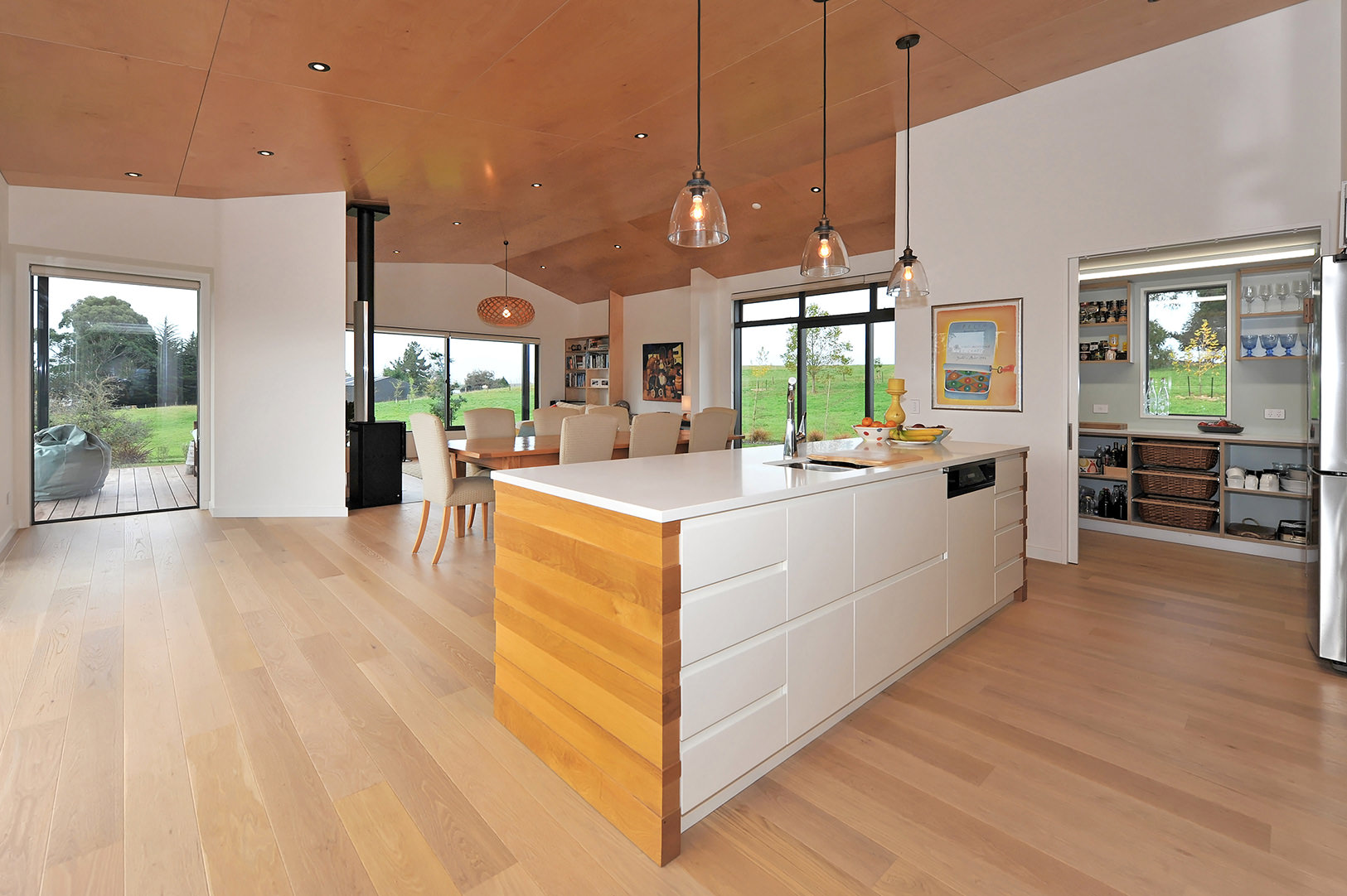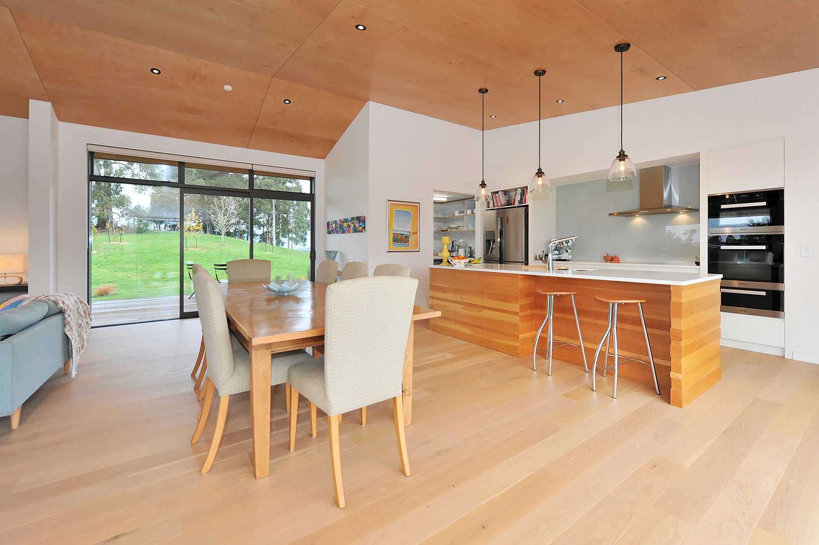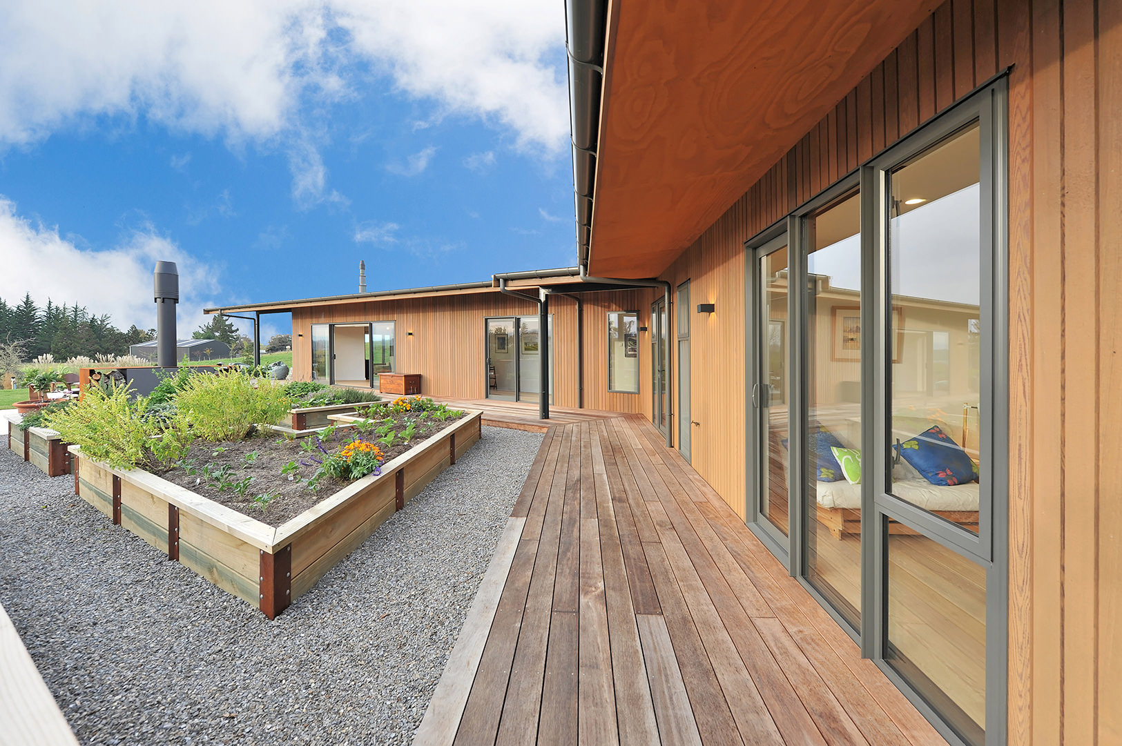 This cedar-clad stunner wraps around the top of a hill in Redwood Valley with rolling slopes below. The result: A variety of outlooks and an assortment of unique outdoor living areas. The home’s main gable roof connects the garage, workshop, wine cellar and firewood buildings to the dwelling while framing views to the estuary. The interior is swimming in space and light. It all starts at the front entrance which flows through a glass gallery into the family room with its high ply ceiling – the piece de resistance of the open-plan zone. Every room pays heed to the landscape and there are many outdoor areas to enjoy, from small and intimate to spacious and open. Different levels of shade and shelter cater to weather conditions and time of day. Utilising a long, narrow layout, the 360sqm single-level home opens itself superbly to solar gain. Cross ventilation is also a happy result of the design. Three bedrooms, two bathrooms and two living areas promise modern comfort. An understated home that exudes such dignity and grace, it scooped the Nulook New Home $700,000-$1 Million National title.