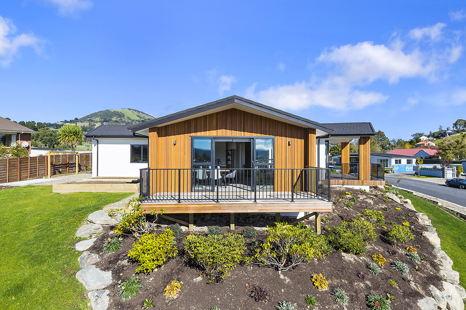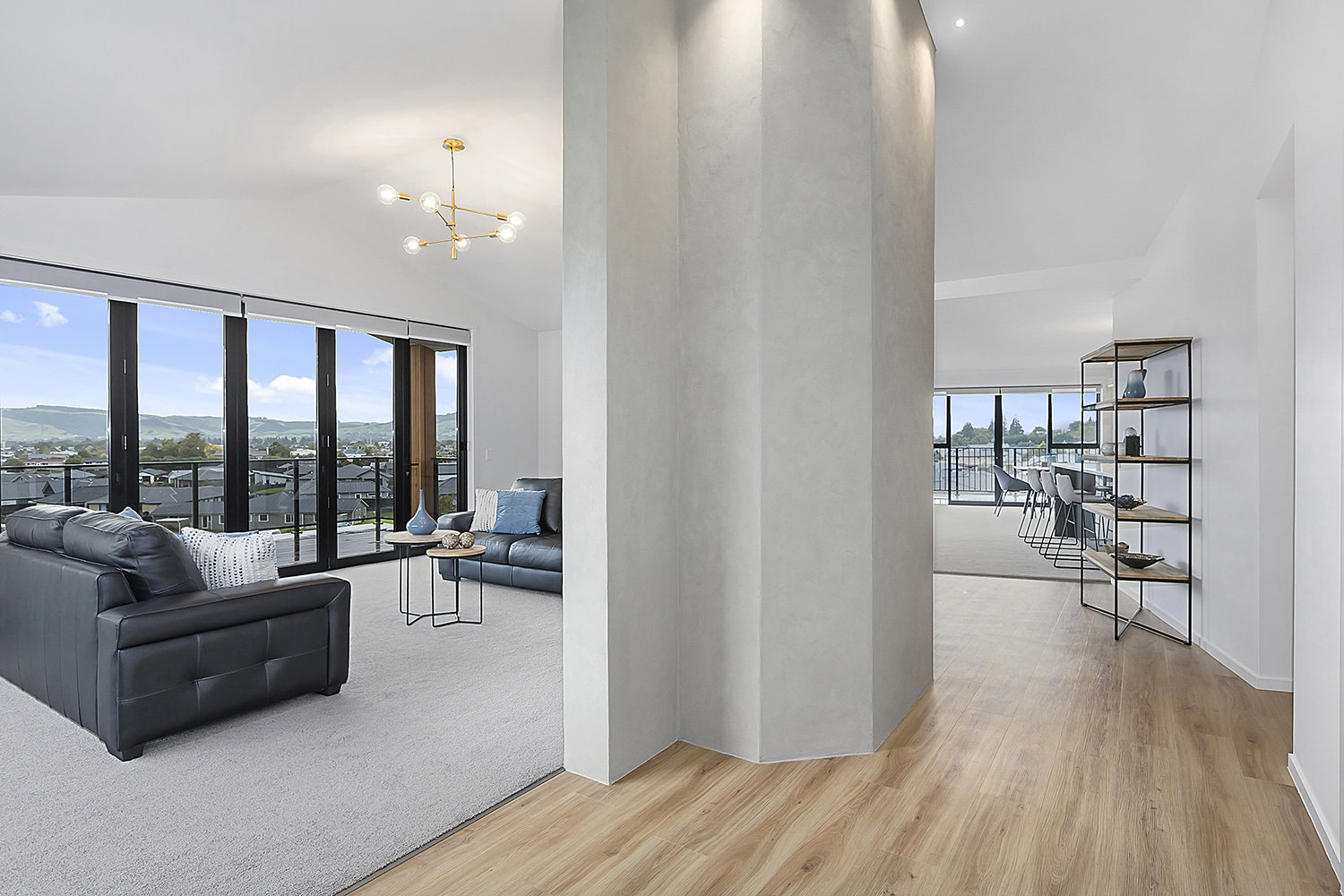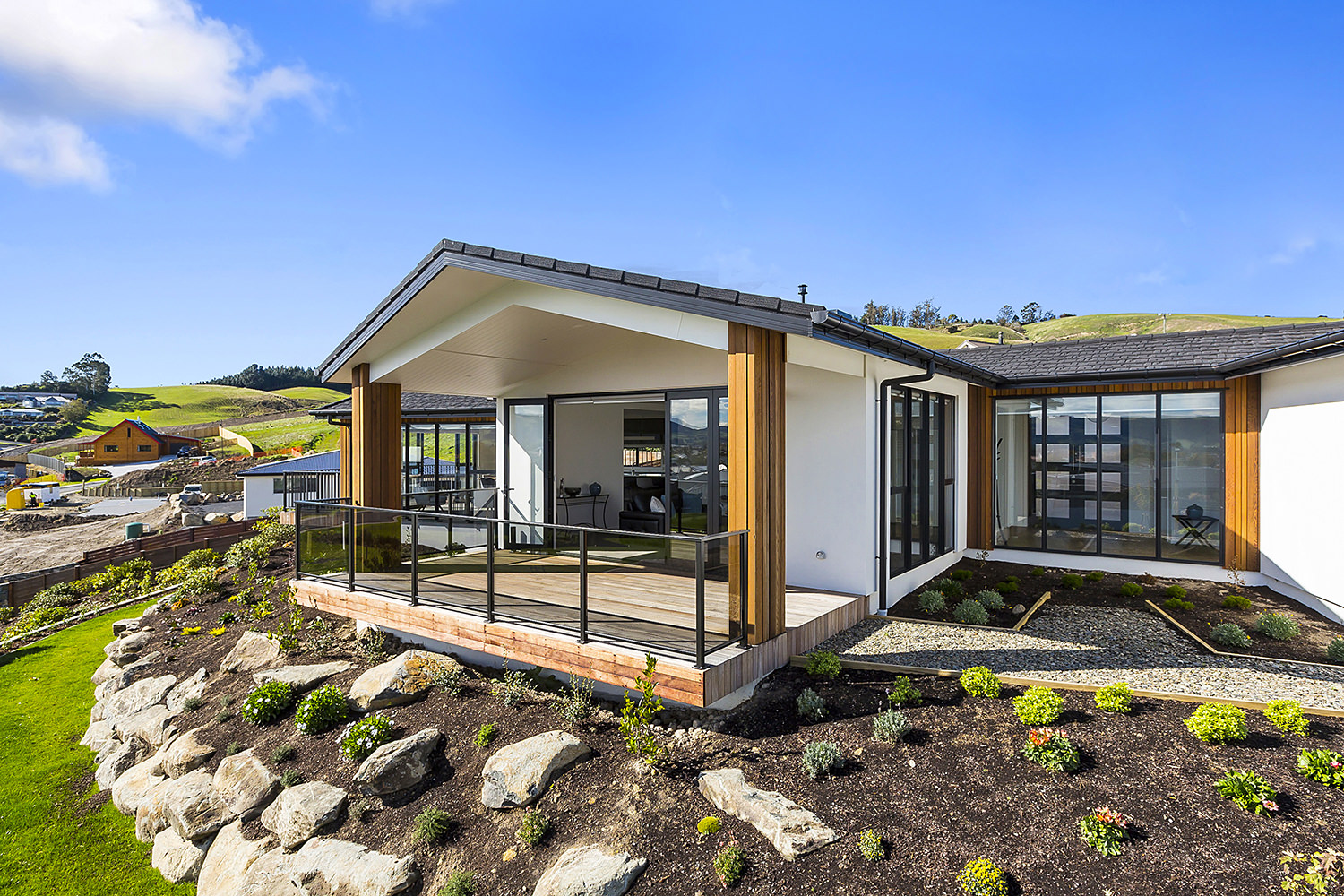 From its commanding position on an elevated corner site in Heathfield, this proud home has an eye for design capturing wonderful views over Mosgiel and the Taieri. Designed specifically for this site, the contemporary home with its Swiss gables suits its location perfectly. Angled walls enhance the architectural feel while maximising the outlook and solar gain. Extensive landscaping complements the home, which is both appealing and inspiring in its design and layout. A generous 249sqm footprint comprises three bedrooms, two bathrooms and a pair of fantastic living spaces, making this an ideal environment for family life. The flexible single-level layout is also suited to comfortable retirement living, with room for guests. From the designer kitchen with adjoining scullery, to the feature fireplace, covered alfresco entertaining area, and super-modern master ensuite with room for two, visitors will be wowed and awed by this wonderfully considered design. This fantastic display home is open for viewing now.