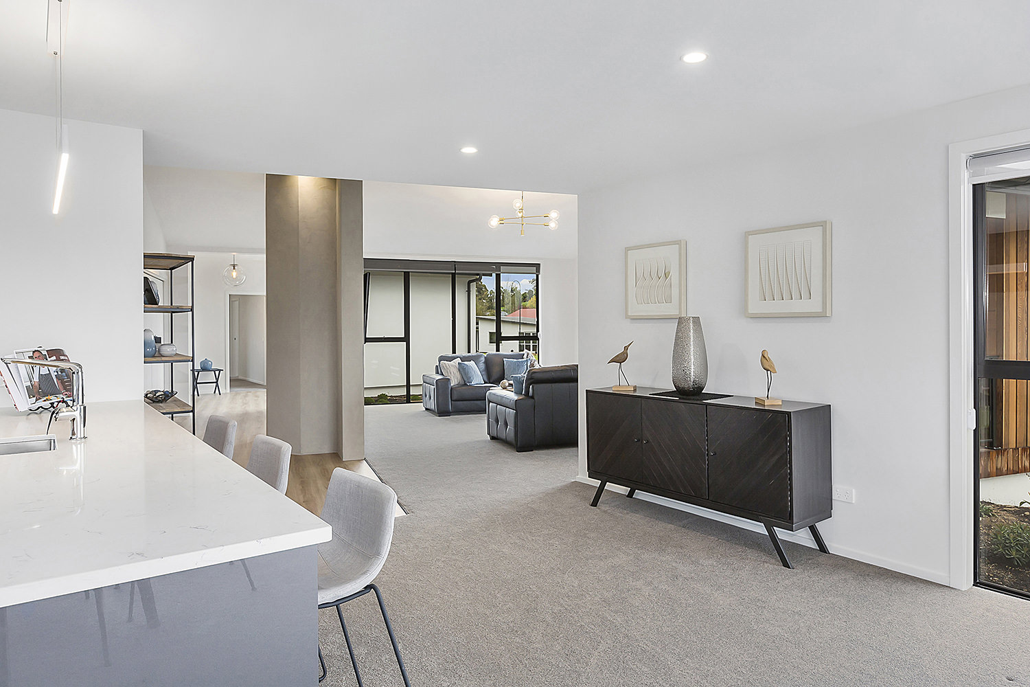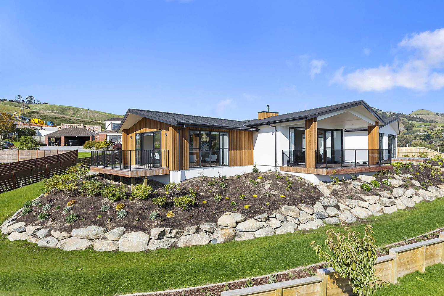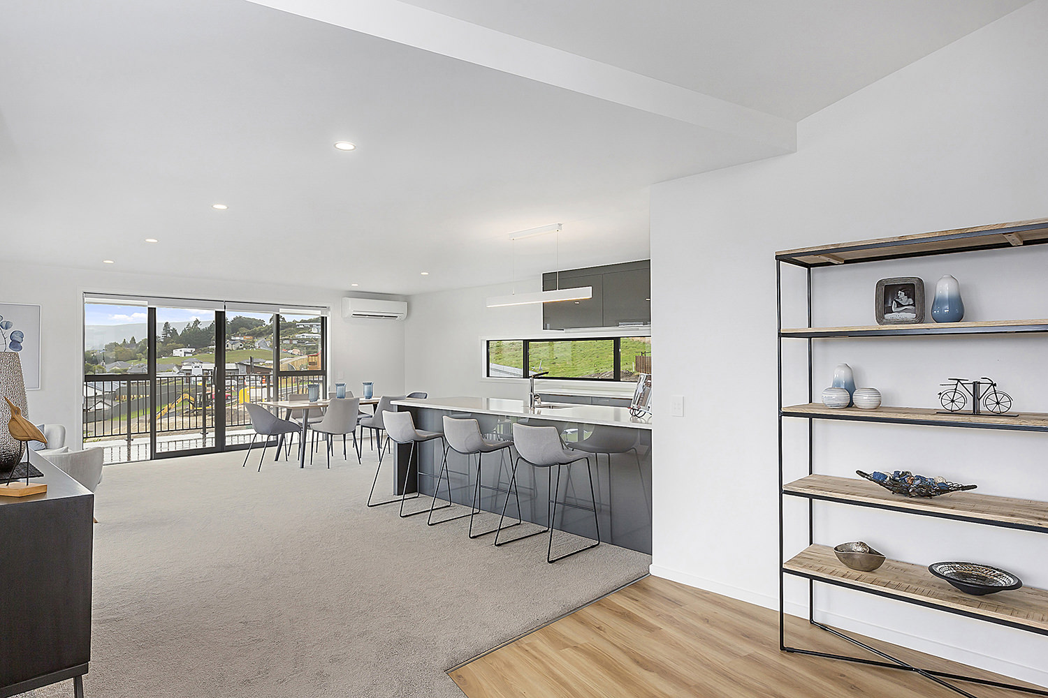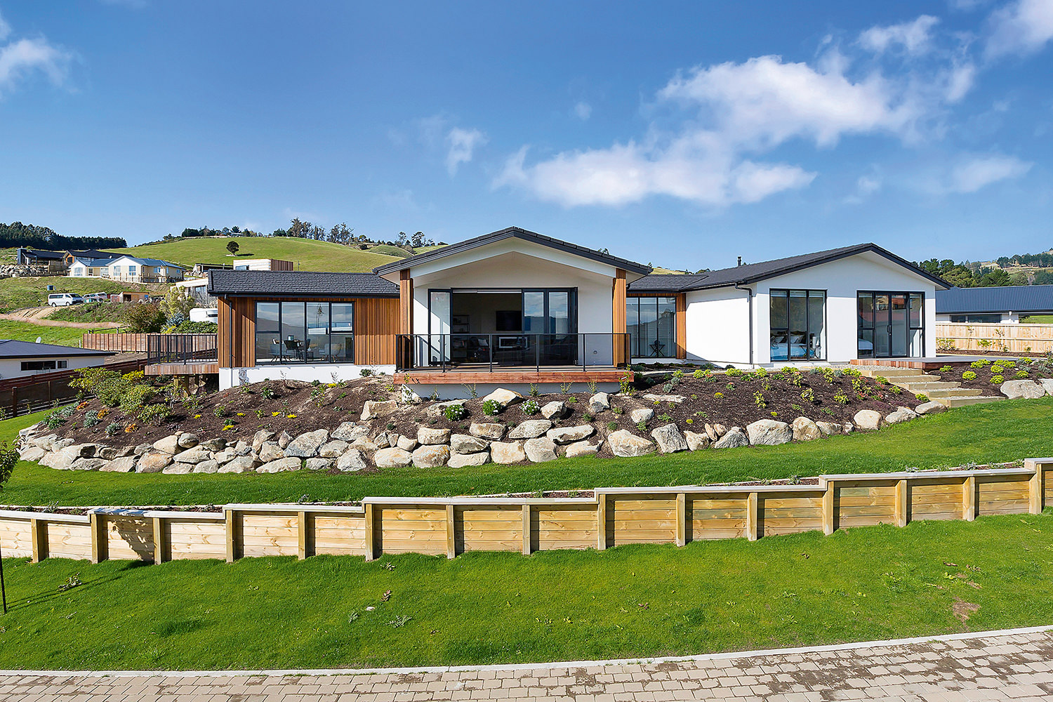 From its commanding position on an elevated corner site in Heathfield, this proud home has an eye for design capturing wonderful views over Mosgiel and the Taieri. Designed specifically for this site, the contemporary home with its Swiss gables suits its location perfectly. Angled walls enhance the architectural feel while maximising the outlook and solar gain. Extensive landscaping complements the home, which is both appealing and inspiring in its design and layout. A generous 249sqm footprint comprises three bedrooms, two bathrooms and a pair of fantastic living spaces, making this an ideal environment for family life. The flexible single-level layout is also suited to comfortable retirement living, with room for guests. From the designer kitchen with adjoining scullery, to the feature fireplace, covered alfresco entertaining area, and super-modern master ensuite with room for two, visitors will be wowed and awed by this wonderfully considered design. This fantastic display home is open for viewing now.