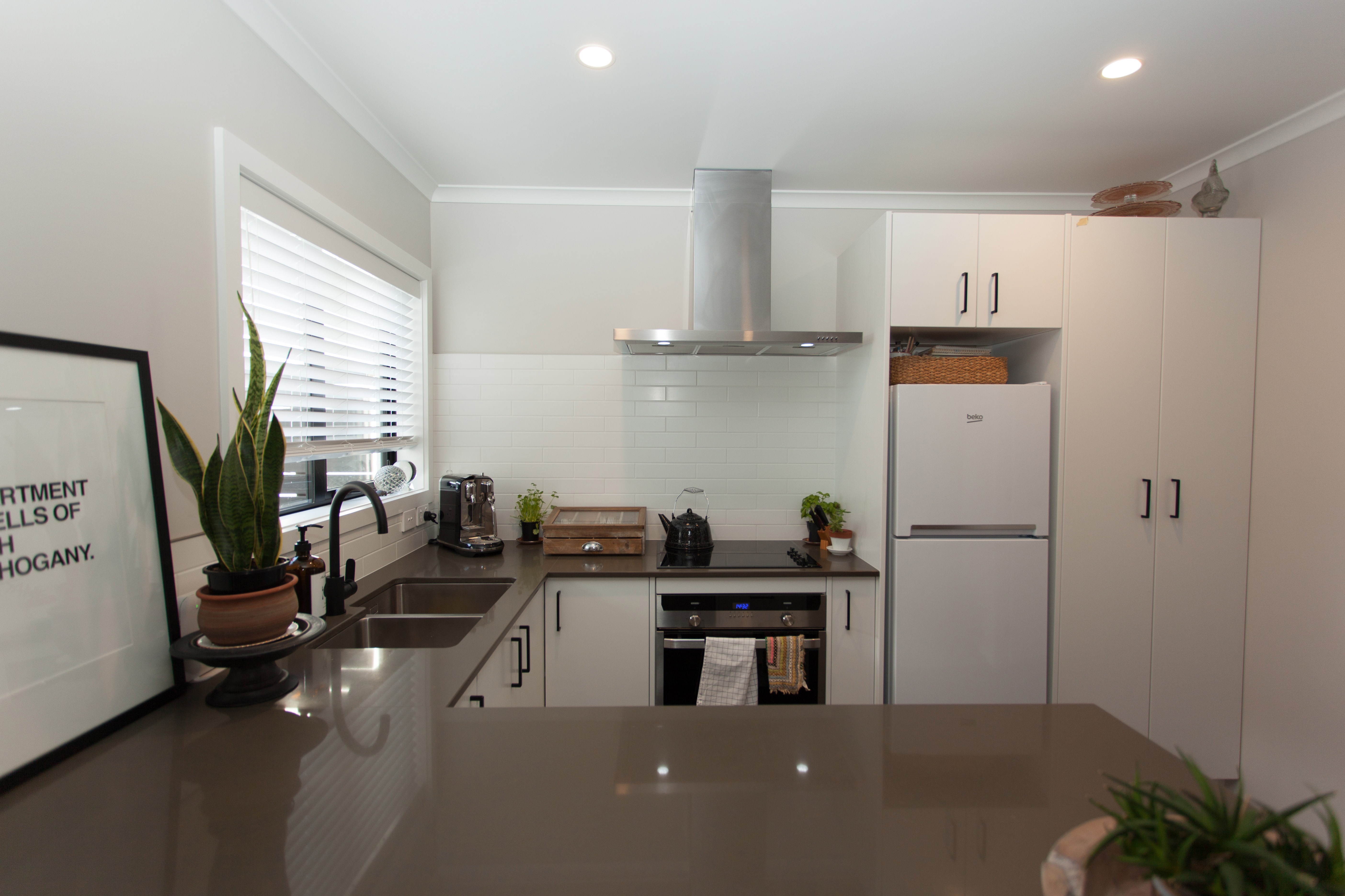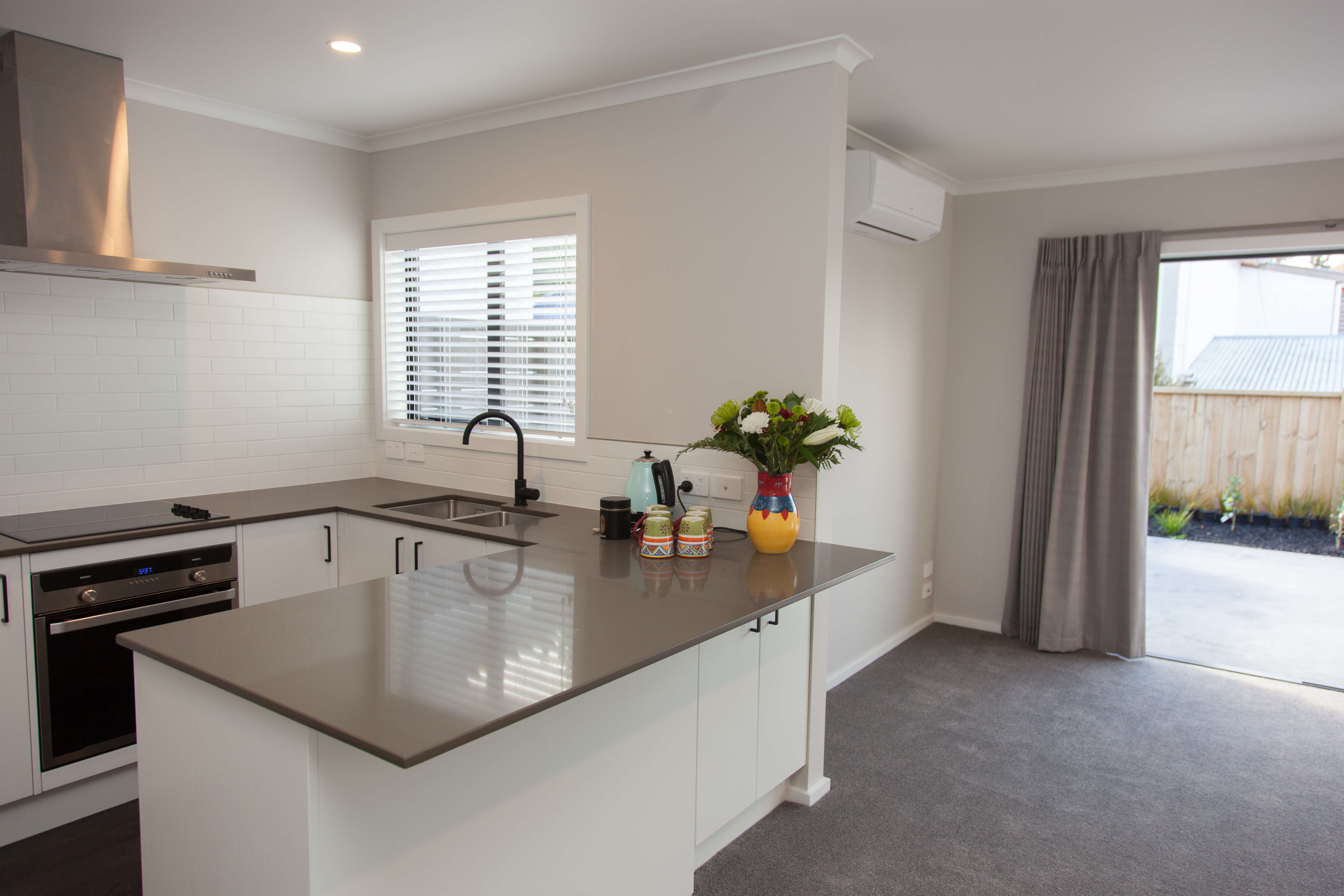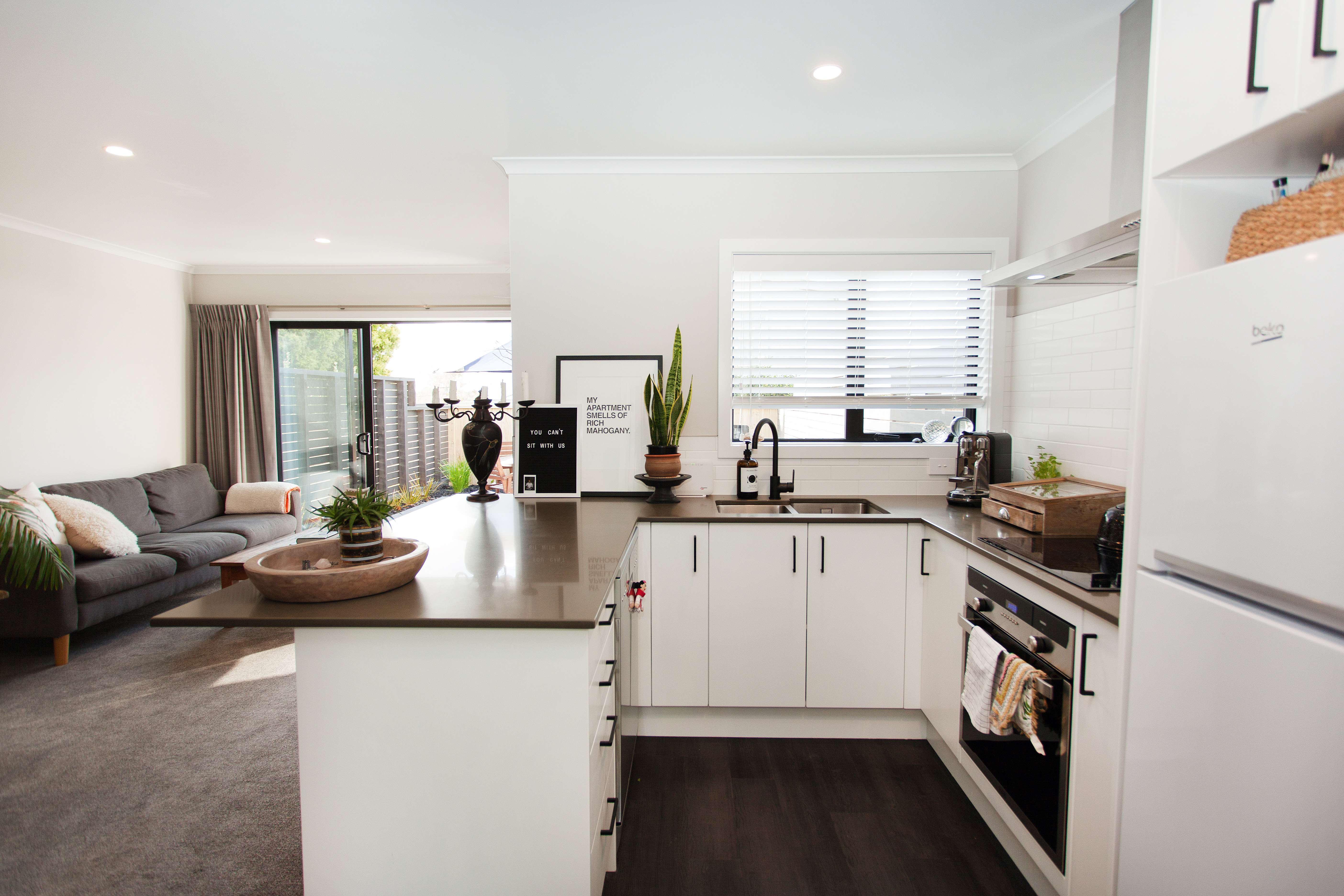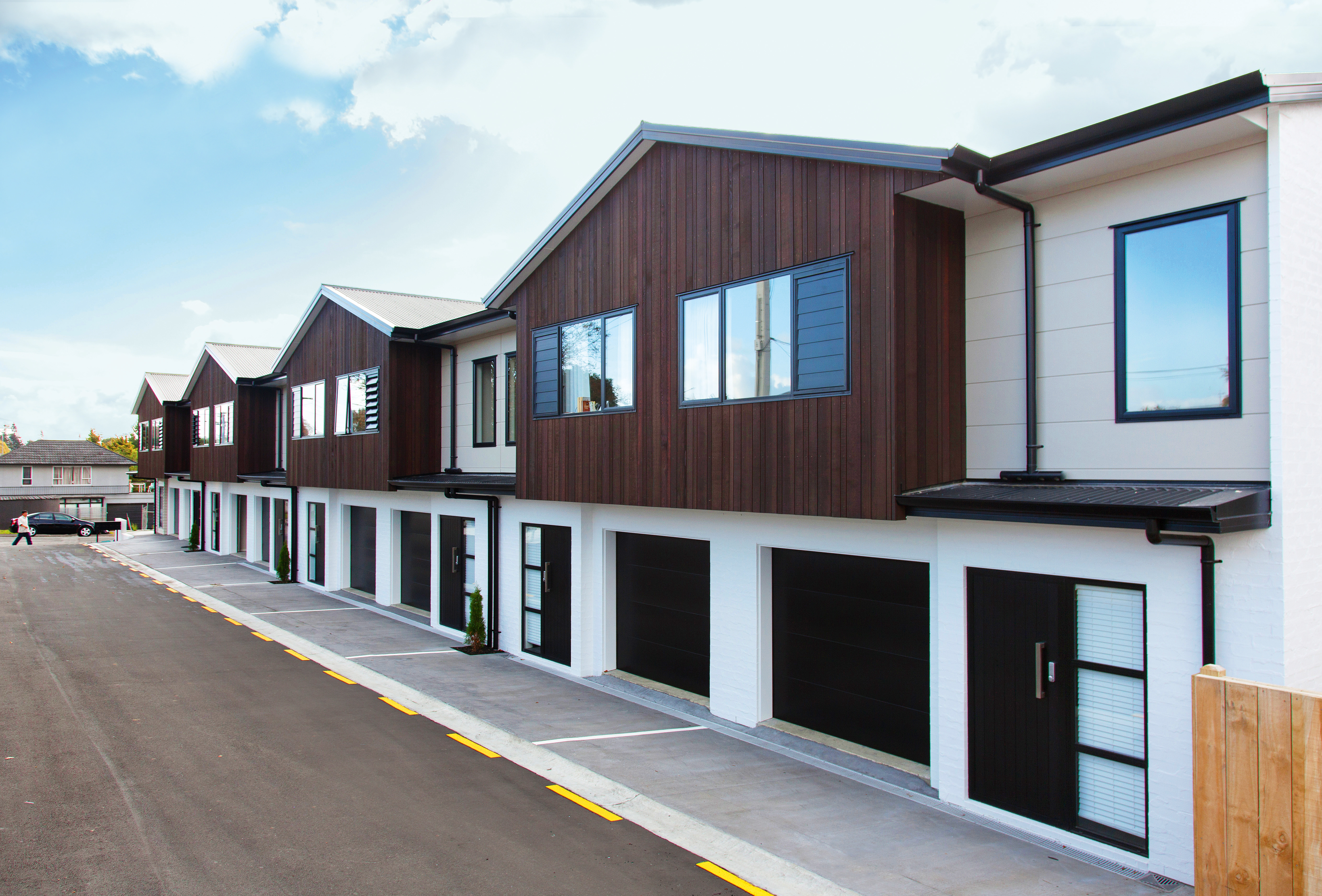 Cosy, well-equipped and close to Hamilton’s CBD, this set of eight townhouses ticks all the boxes for compact city living. Perfect for young professionals or small families, each unit offers style, comfort and a warm heart. The front door opens to an inviting entrance and hallway. Dark wood-look flooring creates a sophisticated base alongside a subtle, light paint palette. The 115sqm floor plan is spread over two levels. Plush grey carpet provides an inviting pathway up the stairs. Three double bedrooms and a well-designed bathroom reside on the top floor with an open-plan kitchen/dining/lounge below. A separate toilet on the ground floor offers easy access for guests. Laundry facilities are smartly incorporated into the single garage. The carpeted living area opens directly onto a private outdoor space, made for entertaining or enjoying a quiet drink. Fencing and landscaping enhance the space. Modern finishes and fixtures lift the interior from simply stylish to something special.