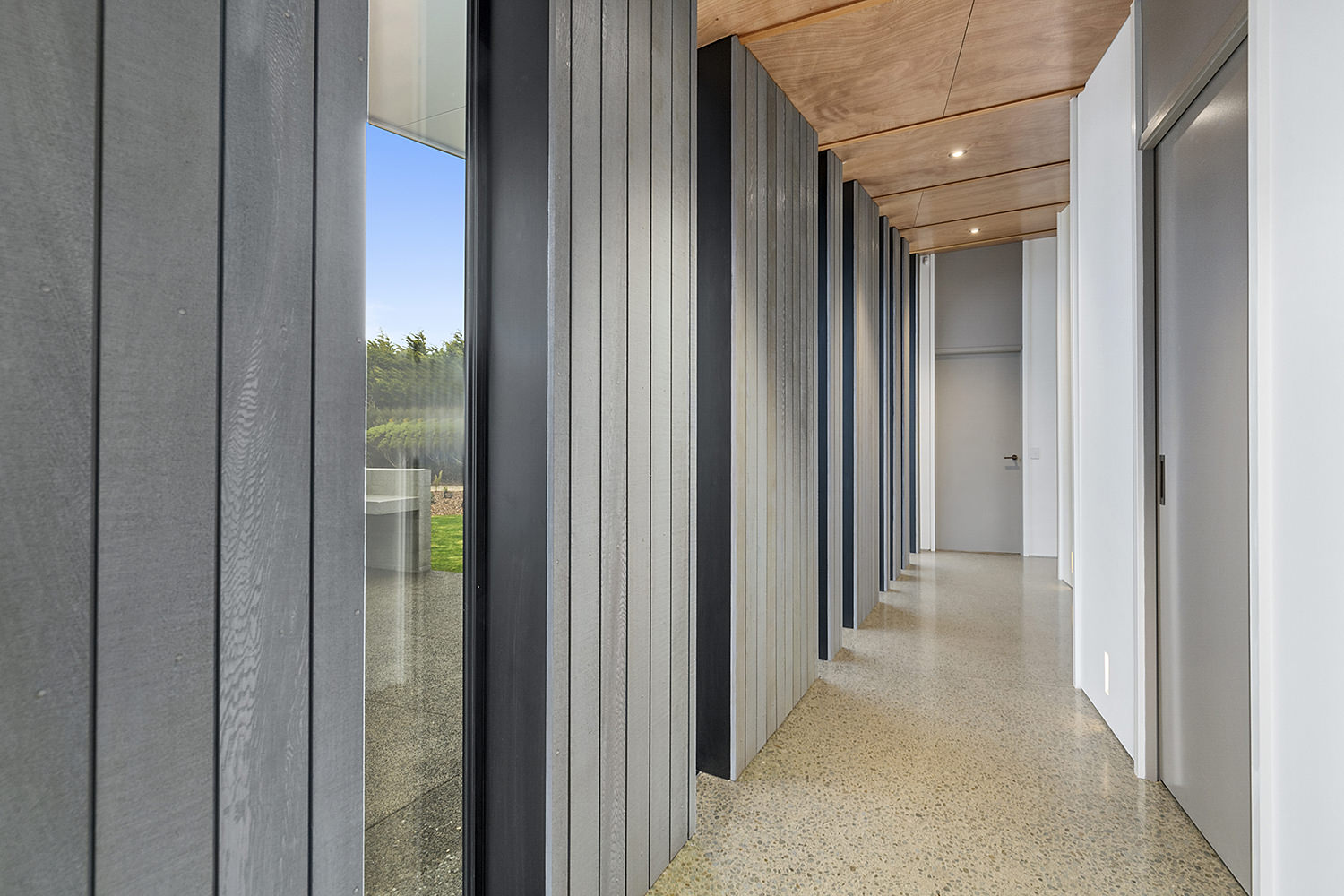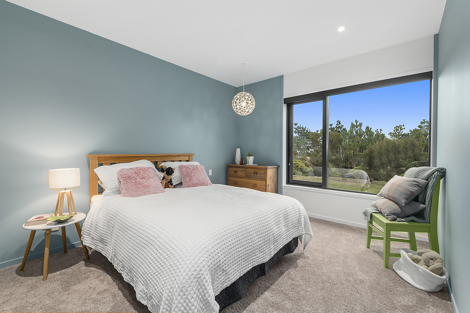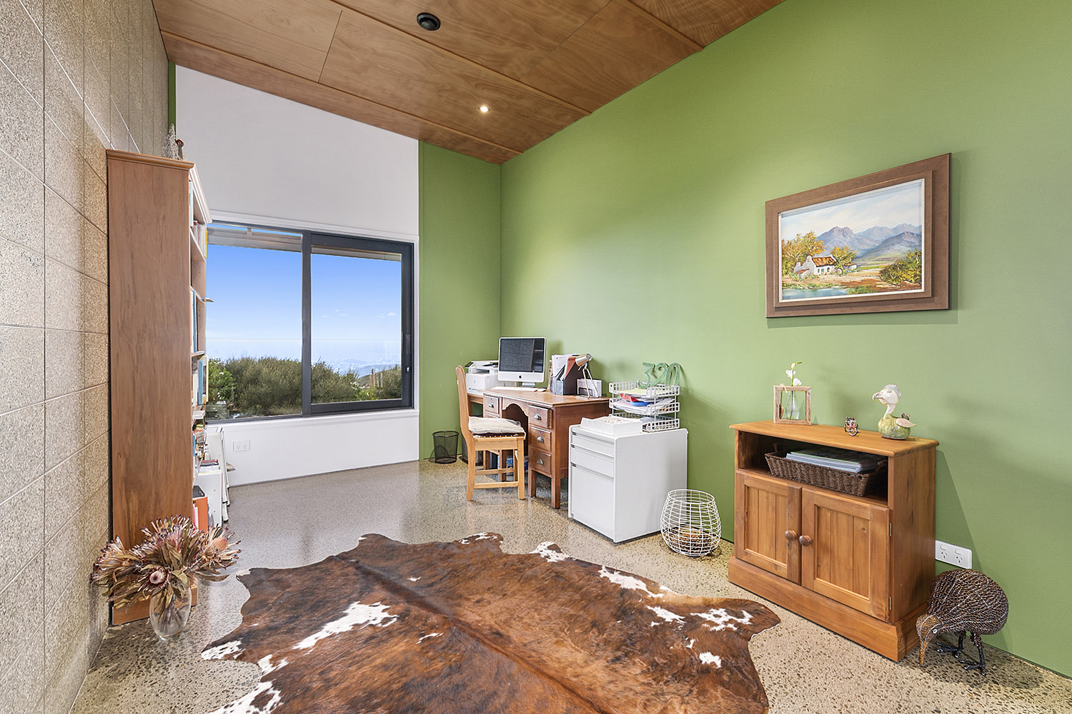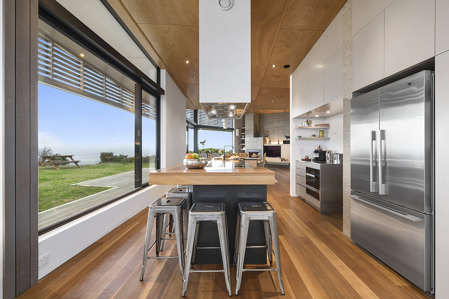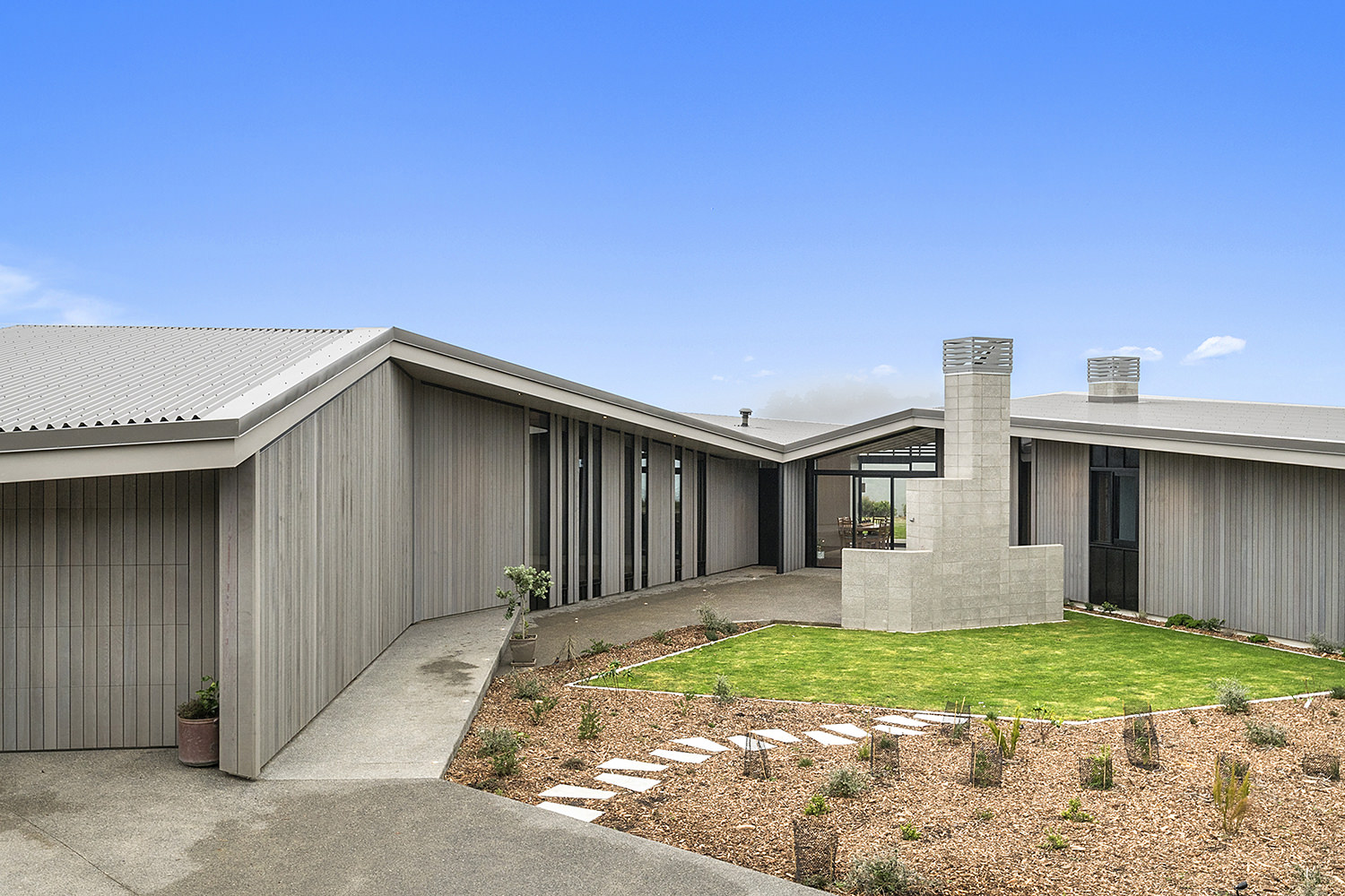 A hybrid city-country home, this architecturally designed home frames views over Wellington from the comfort of its secluded hilltop. The structure exists in harmony with the land while offering sheltered and sunny alfresco living spaces. Oiled cedar and zinc cladding ensures enduring good looks in the unforgiving climate. The skillion ceiling delivers a dynamic feeling of space in the main living area. Areas of floor-to-ceiling glass enhance the open connection with nature. The four-bedroom, three-bathroom layout offers parents and children their own wings. These converge in the shared social spaces. Separate living doubles as a guest room with access to an adjacent bathroom. The energy-efficient interiors stay exceptionally cosy thanks to in-slab hydronic underfloor heating and passive solar heating. Exposed concrete floors and block walls retain the sun’s warmth. Alfresco living areas include a sheltered courtyard with outdoor oven, plus wood storage to feed the fire. This is luxurious living at its understated best.