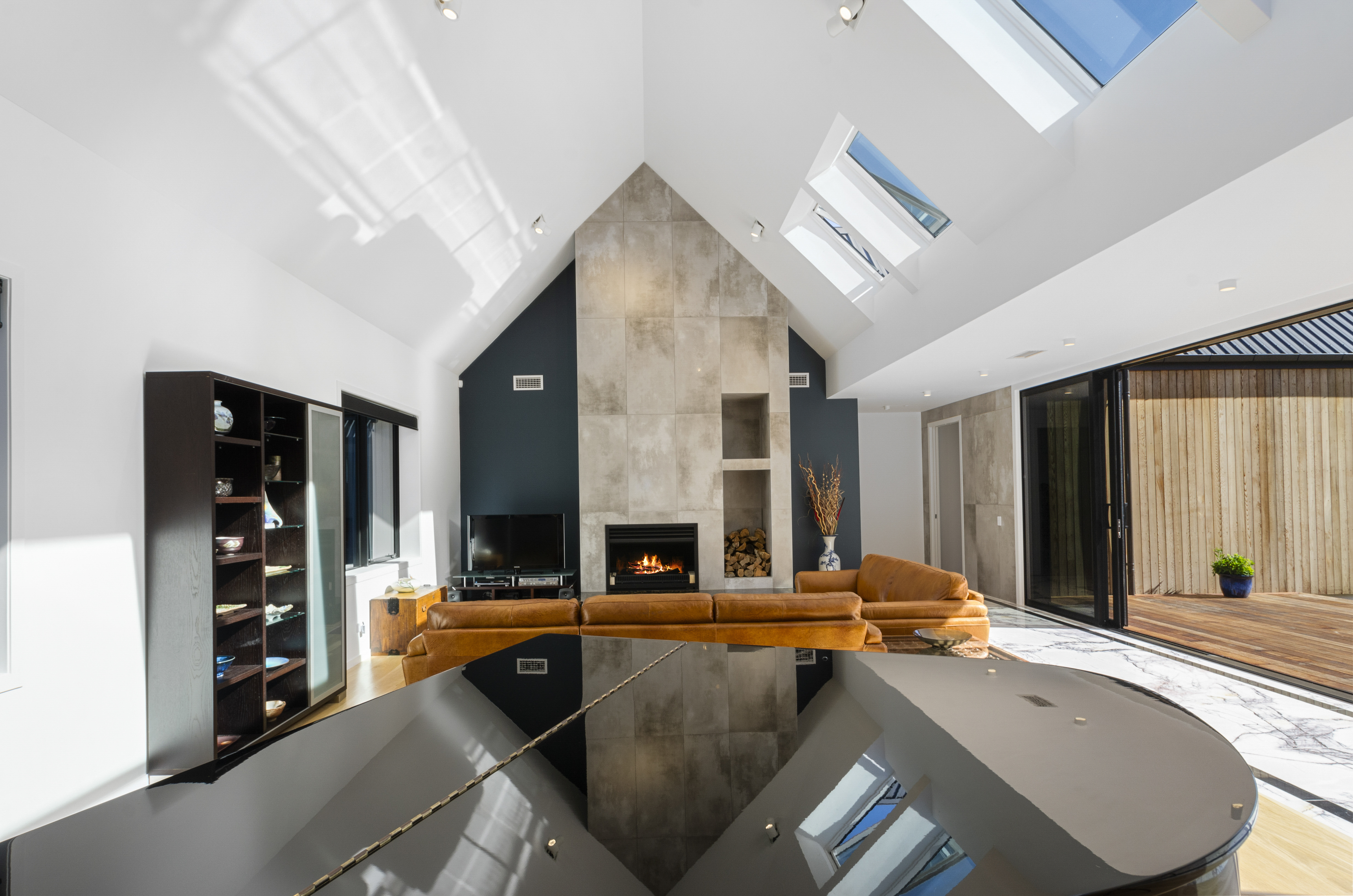 Thanks to extensive glazing, including strategically positioned skylights, the stylish and sophisticated open-plan living area is light and breezy.