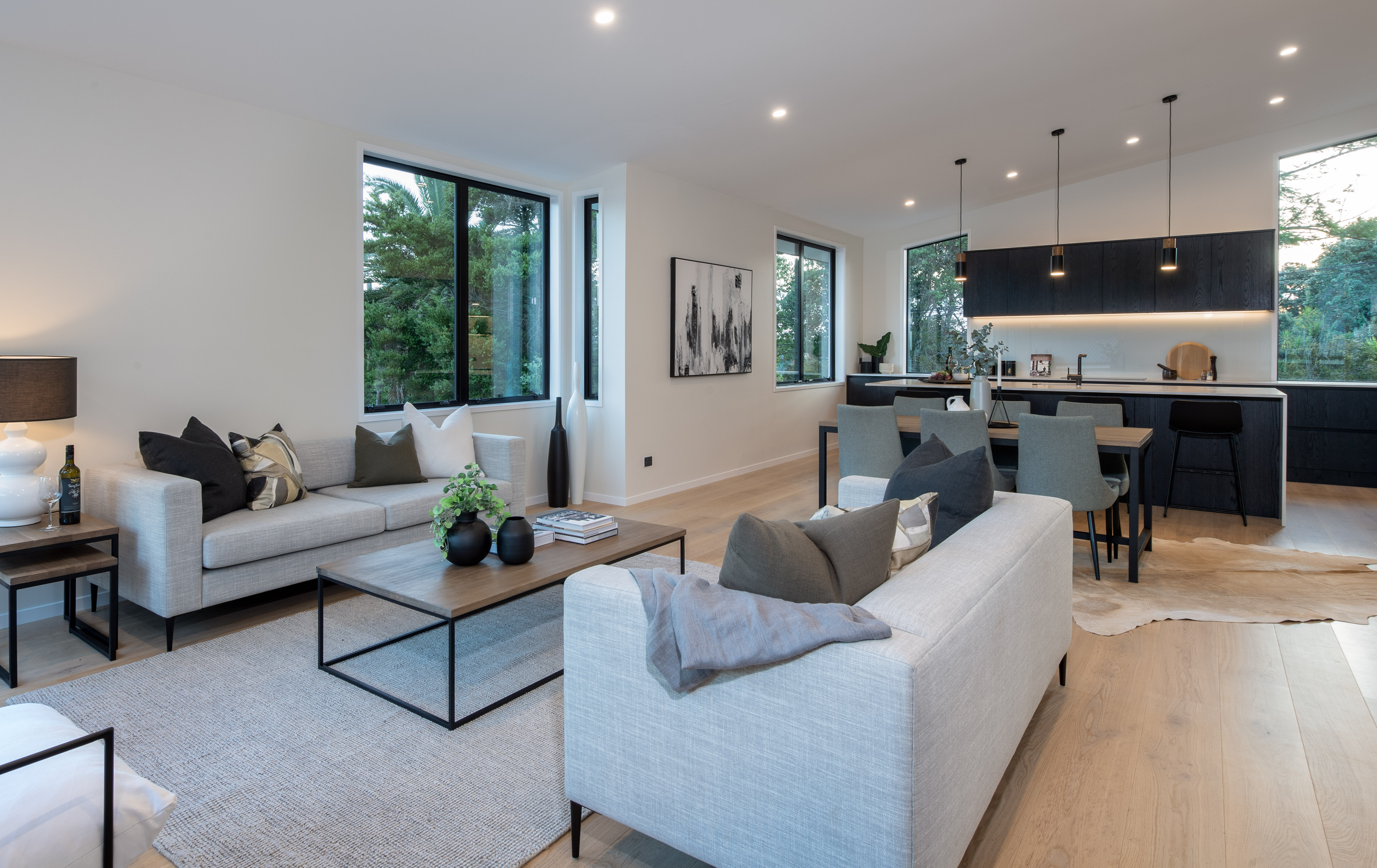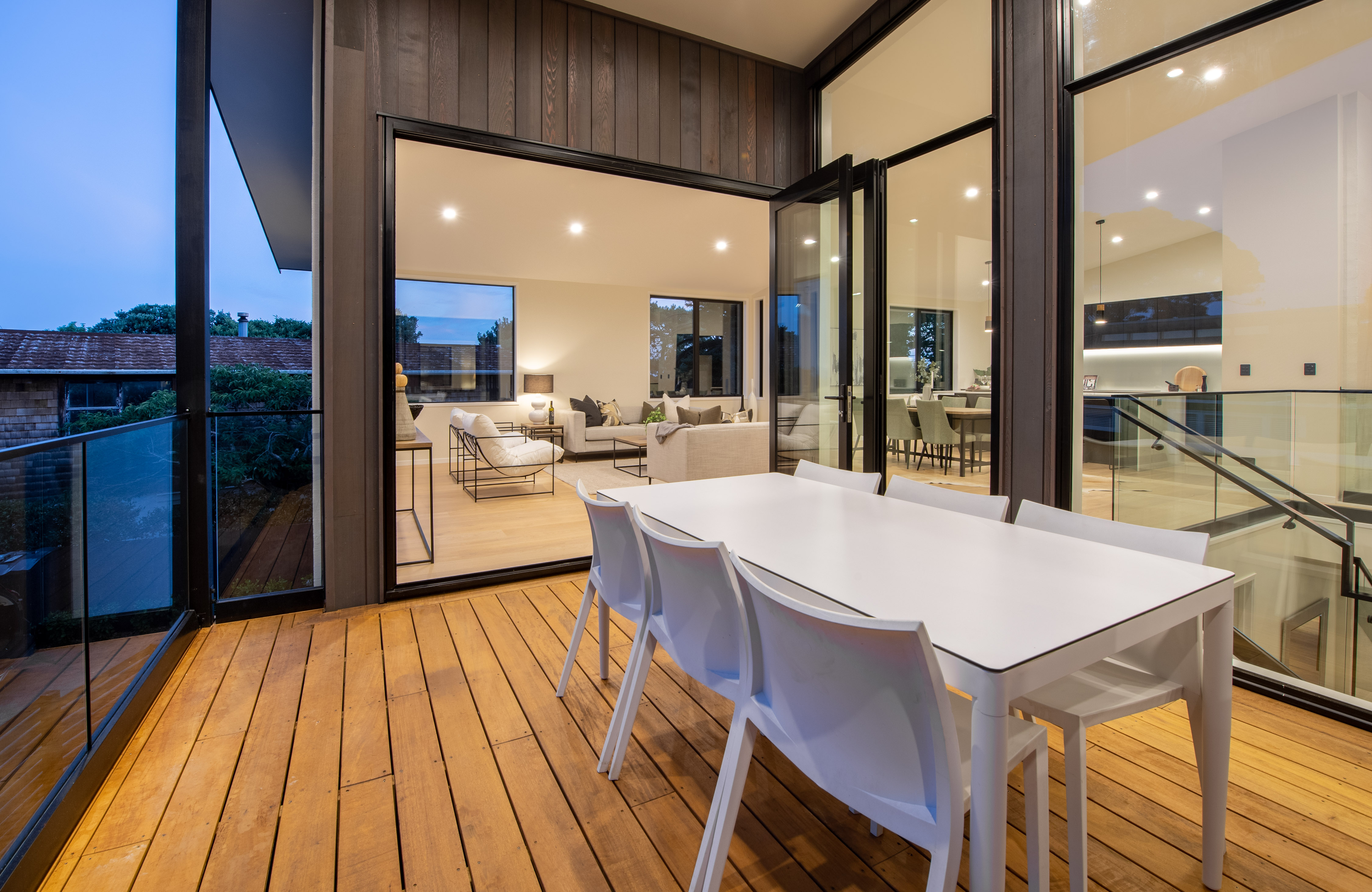Sea views are framed through extensive glazing, which brings the outdoors in at every turn. American oak floors flow out to private decks for entertaining.