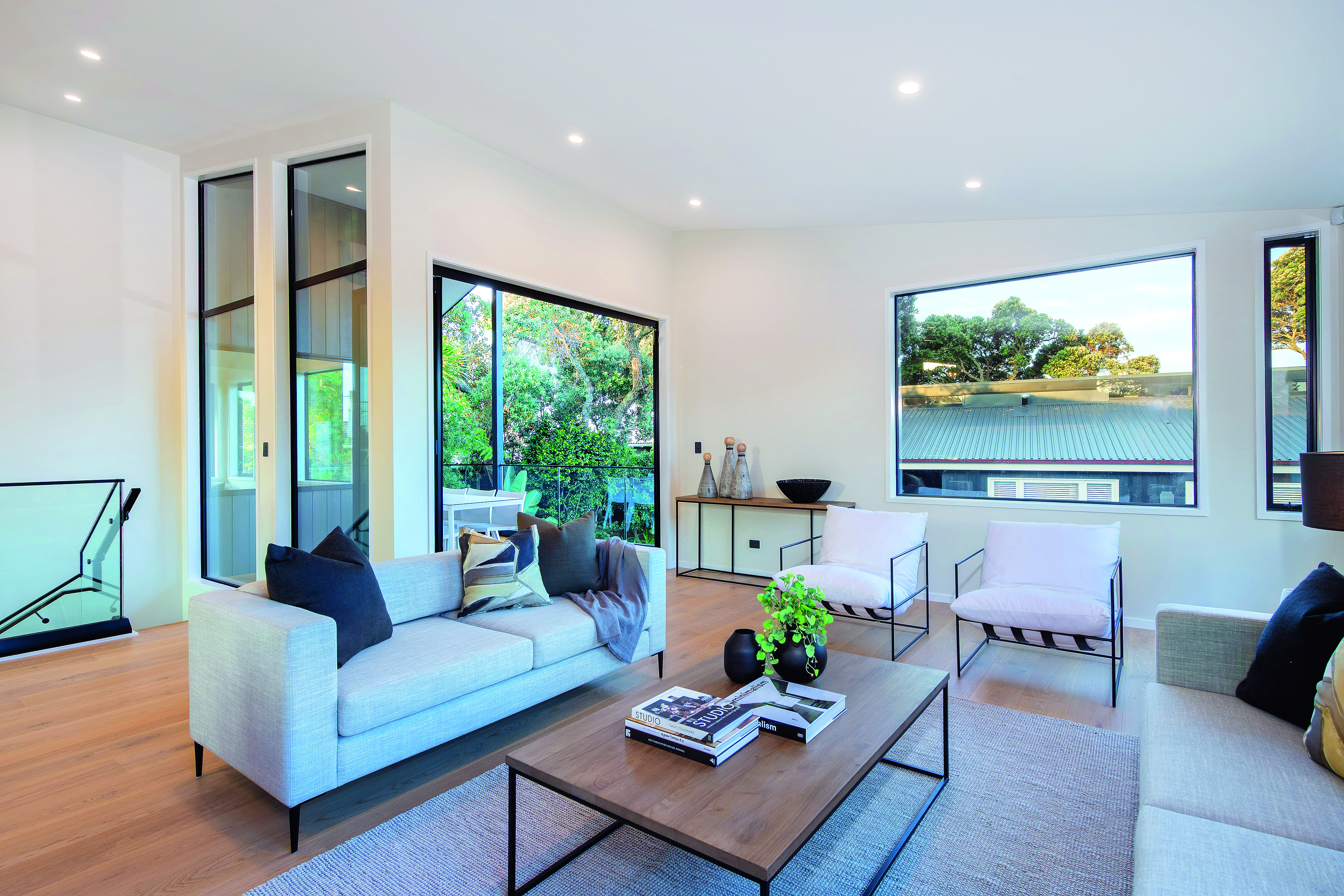 This North Shore home celebrates life’s simple pleasures in style. Discreetly positioned one house back from the cliff, the brick and vertical cedar build is firmly ensconced in a quiet and private location. And it’s just a minute’s walk to the secret local beach.