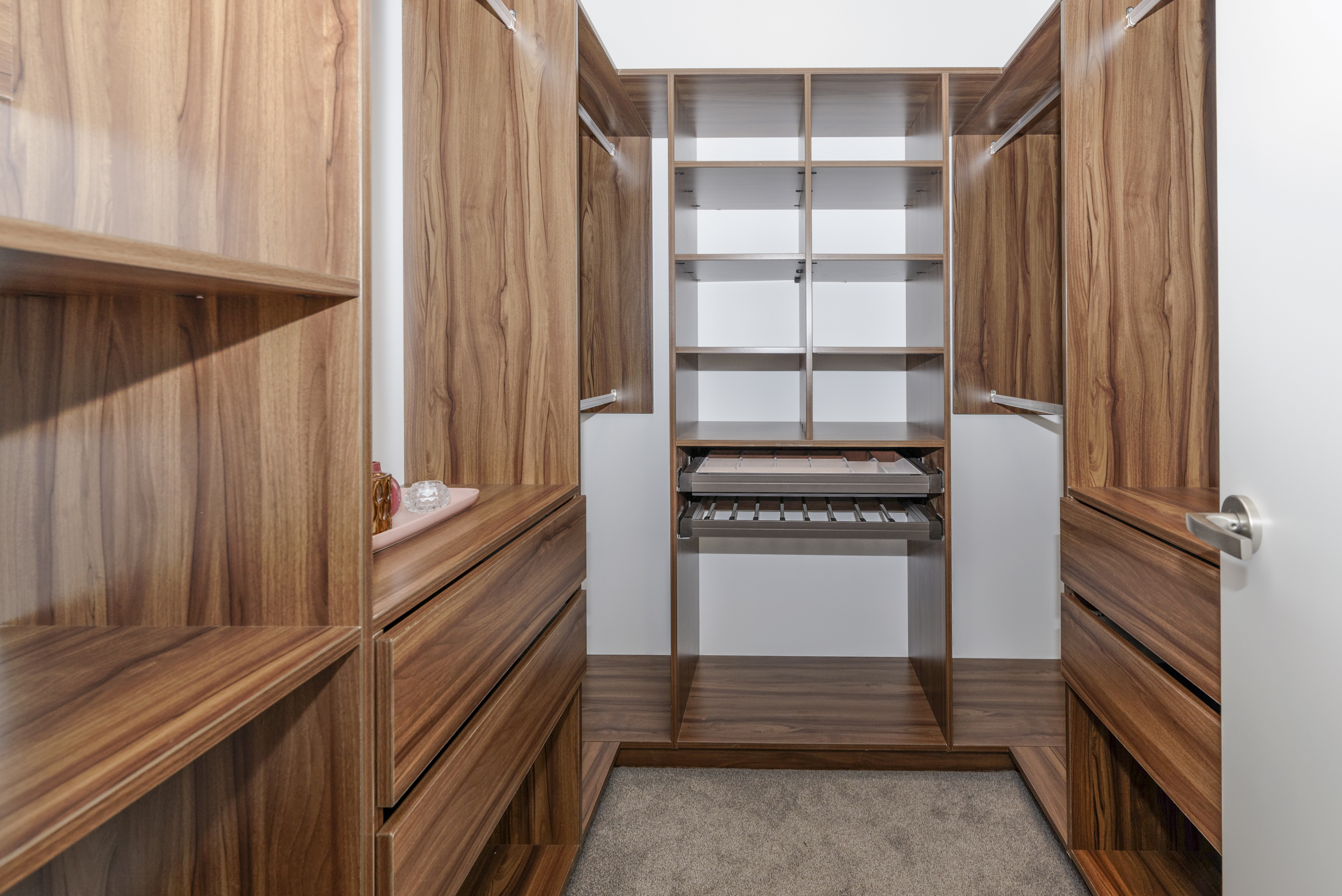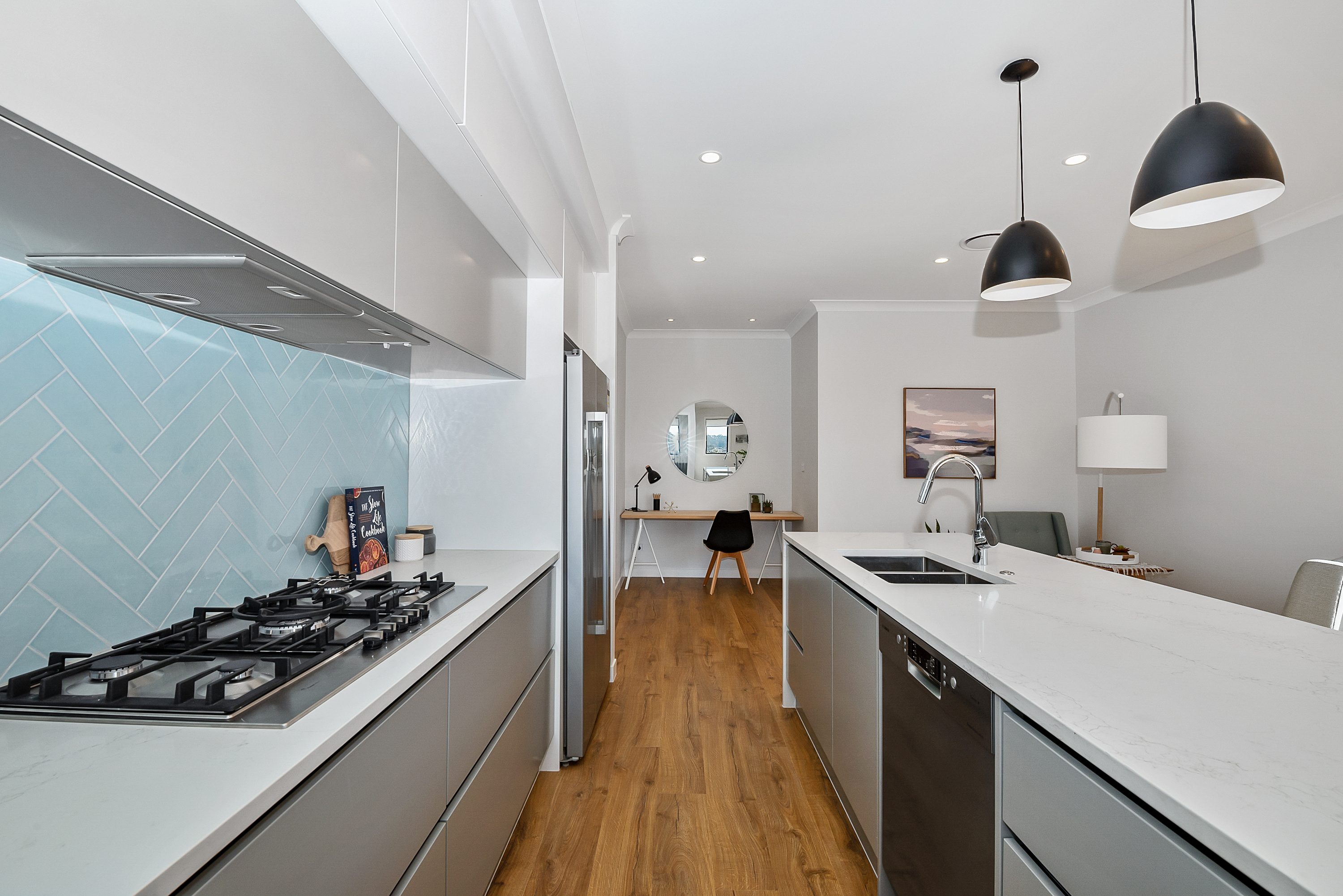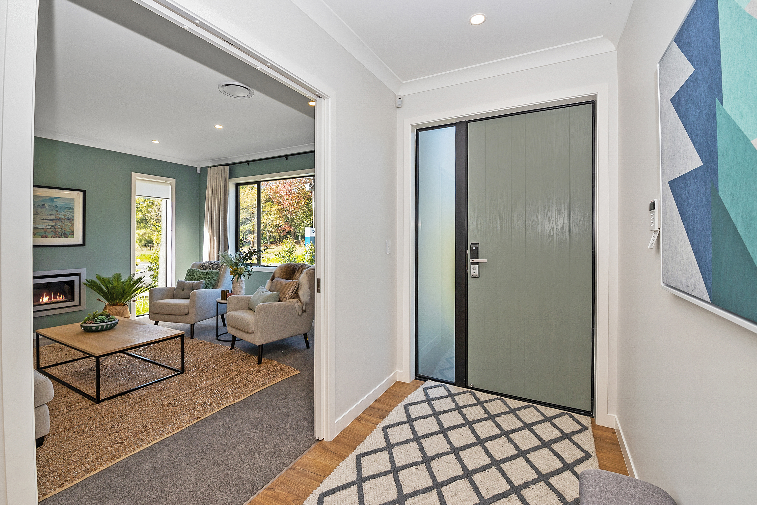 Thoughtfully chosen green and blue tones instil the home with down-to-earth charm. A mix of wood-look floors and stone-grey carpet upholds the relaxed yet refined feel.