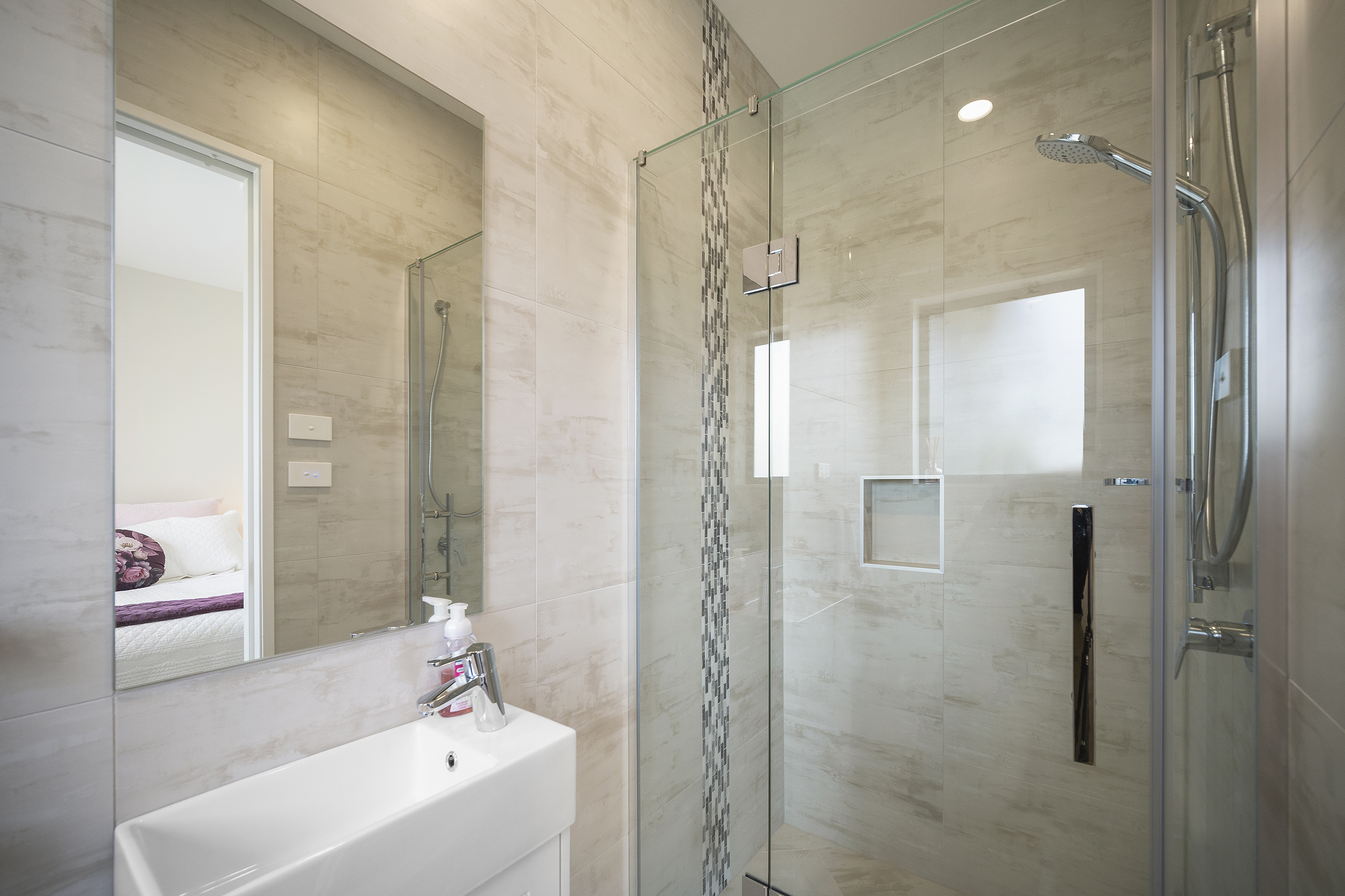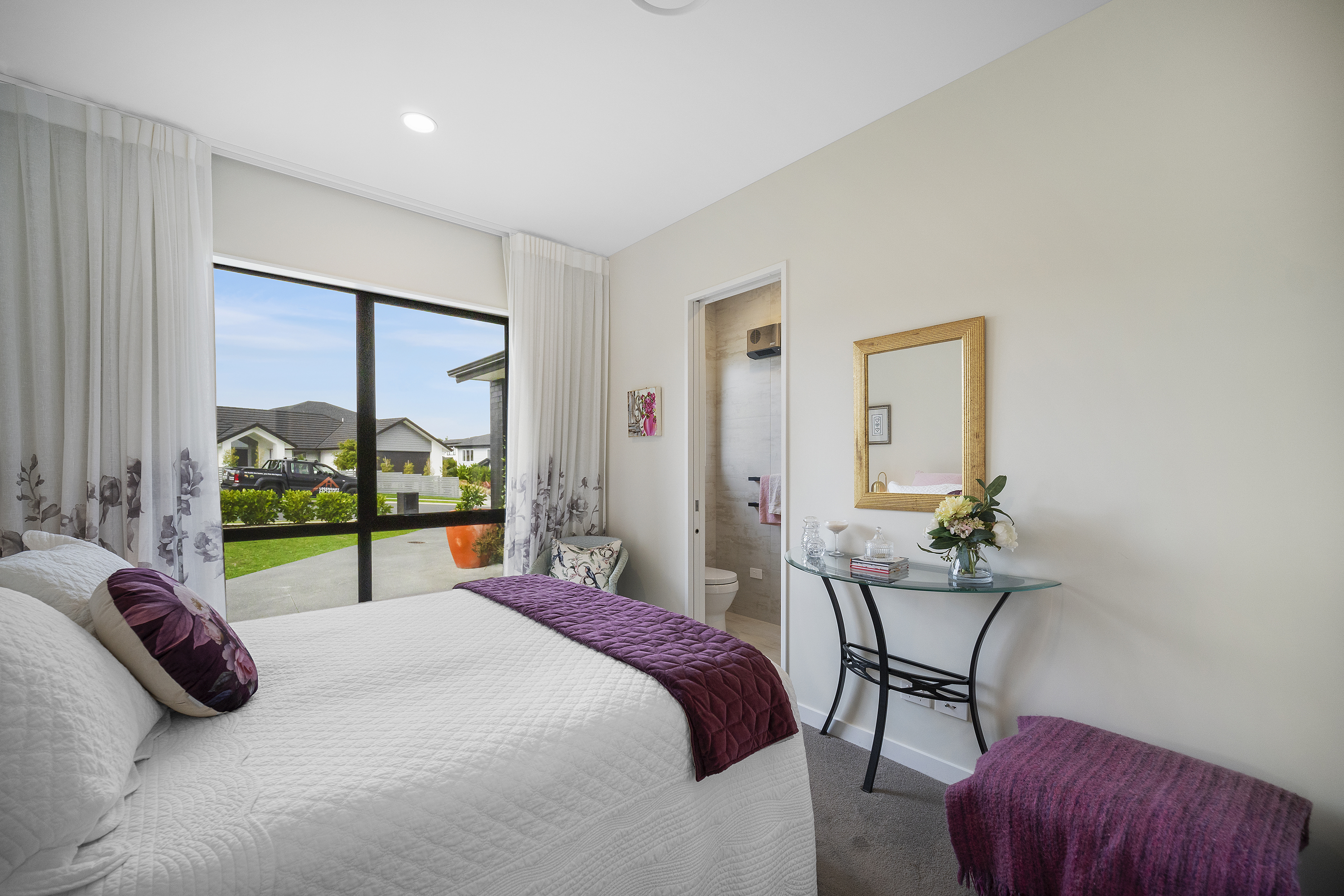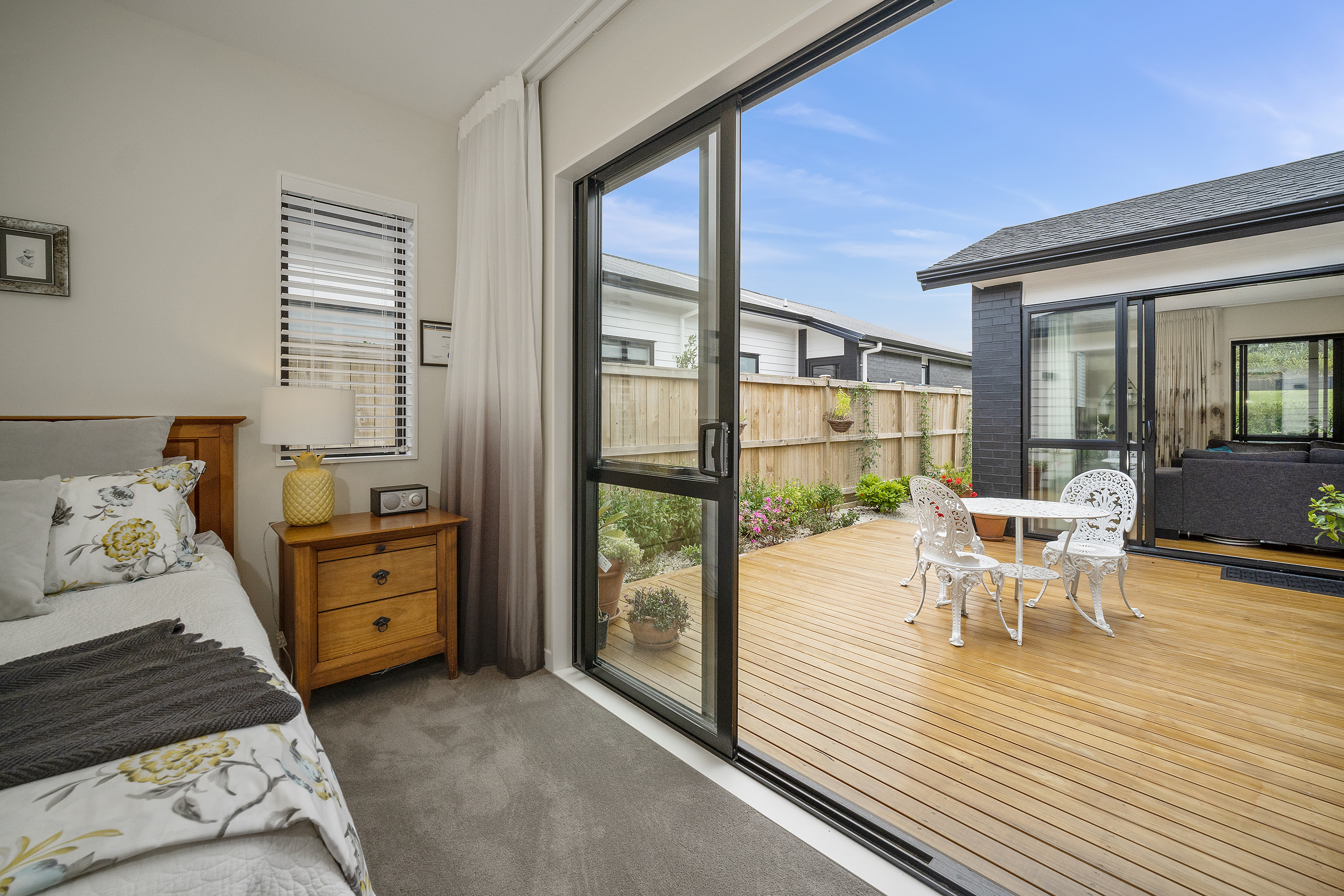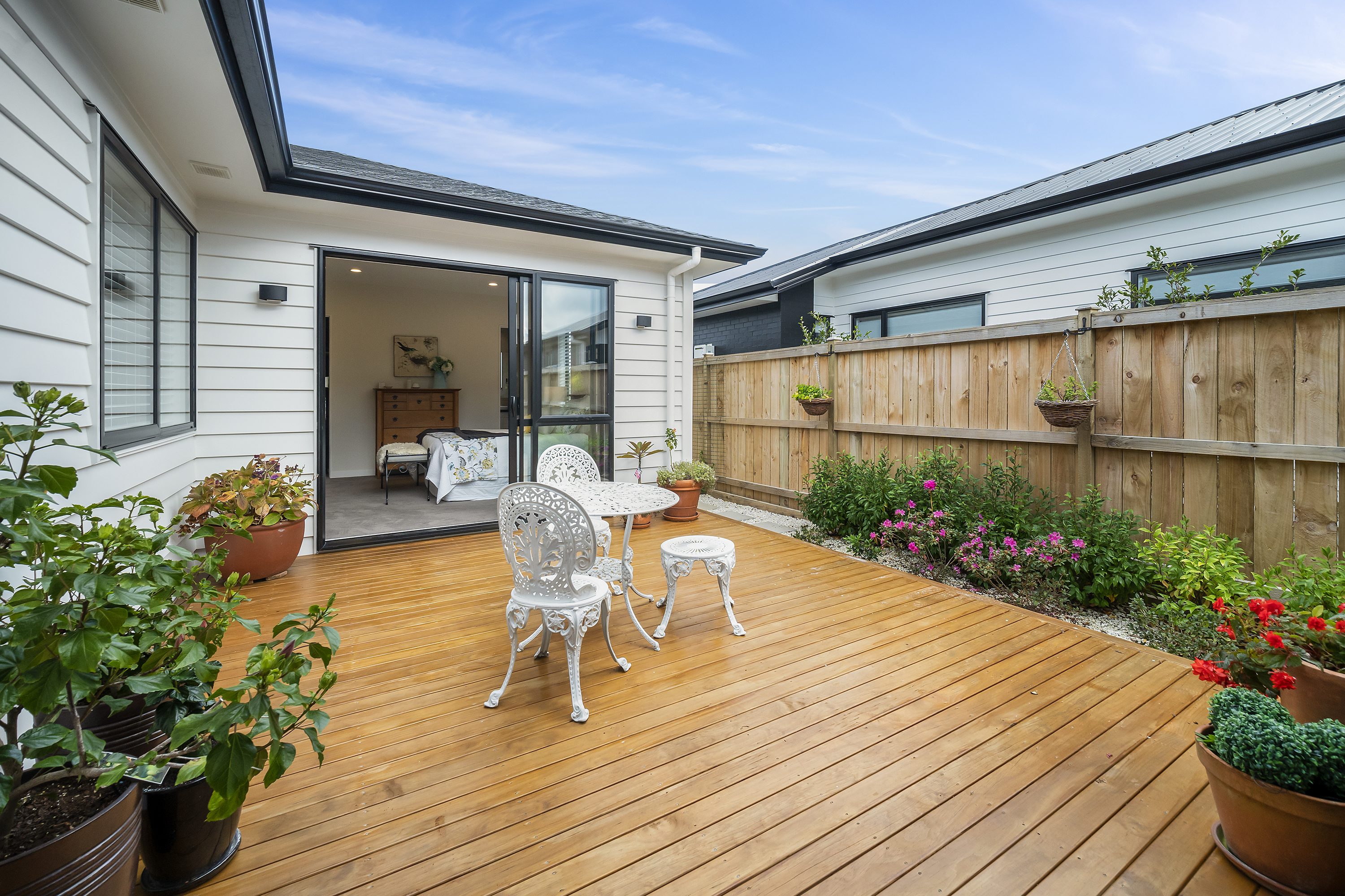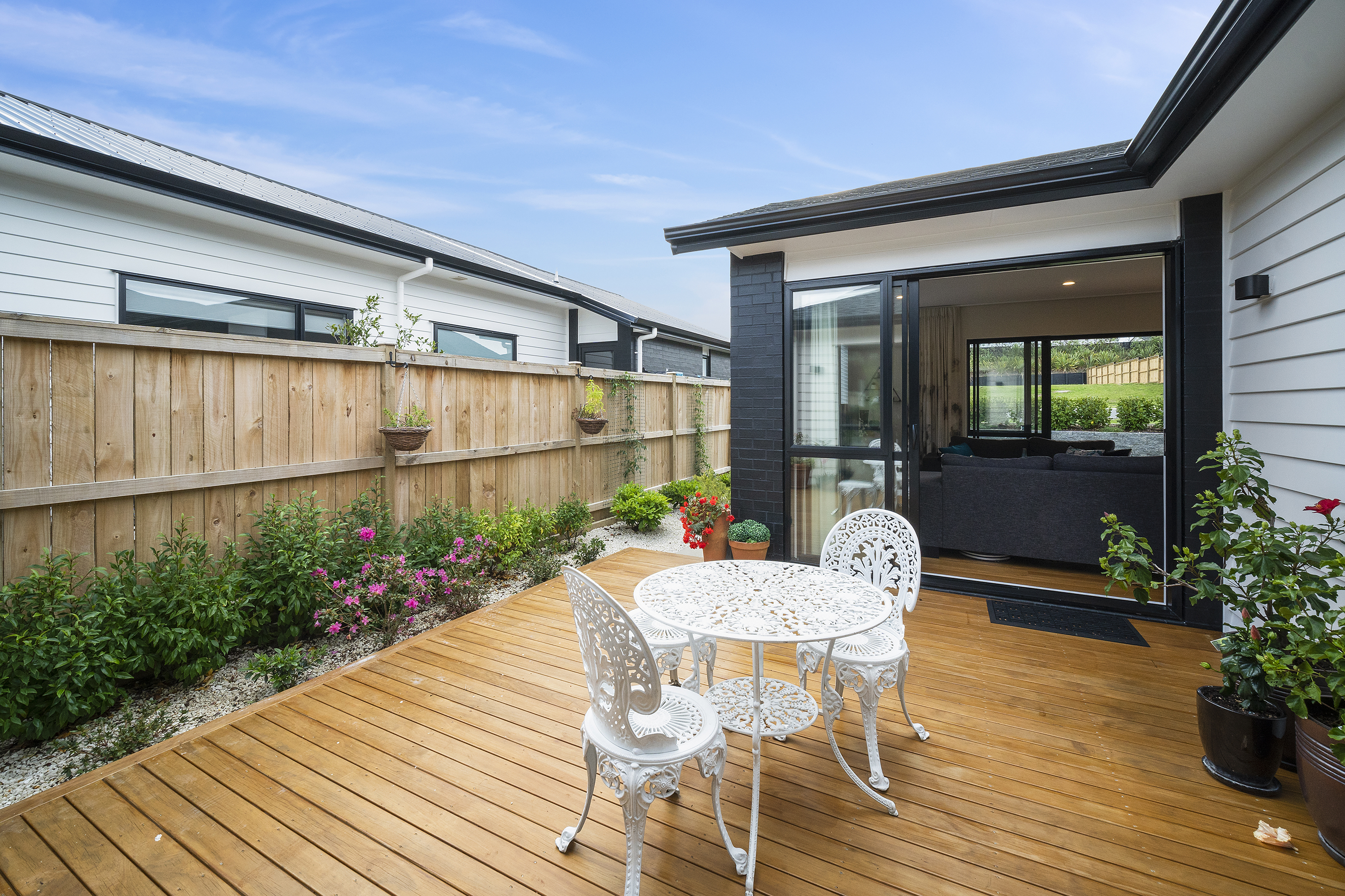 The open-plan sitting area and large separate family room provide options for luxurious lounging. These mirror the main alfresco space with its choice of sheltered portico or sun-drenched deck. Landscaping subtly aids privacy while retaining the open feel.