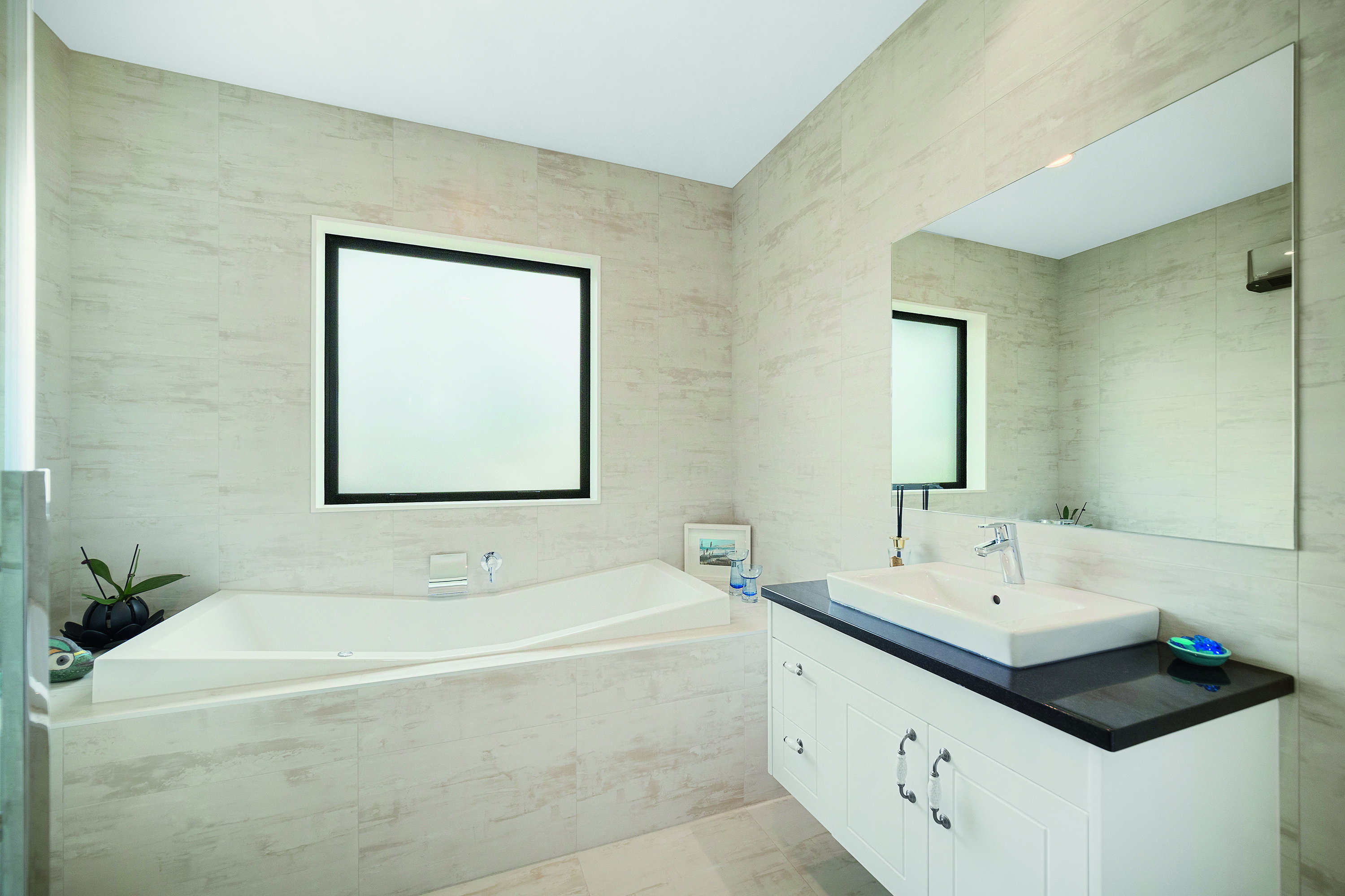 Of the five bedrooms, two open to the outdoors and have the added luxury of tiled ensuites. The main bathroom features a luxurious box-tiled spa bath for leisurely soaking.
