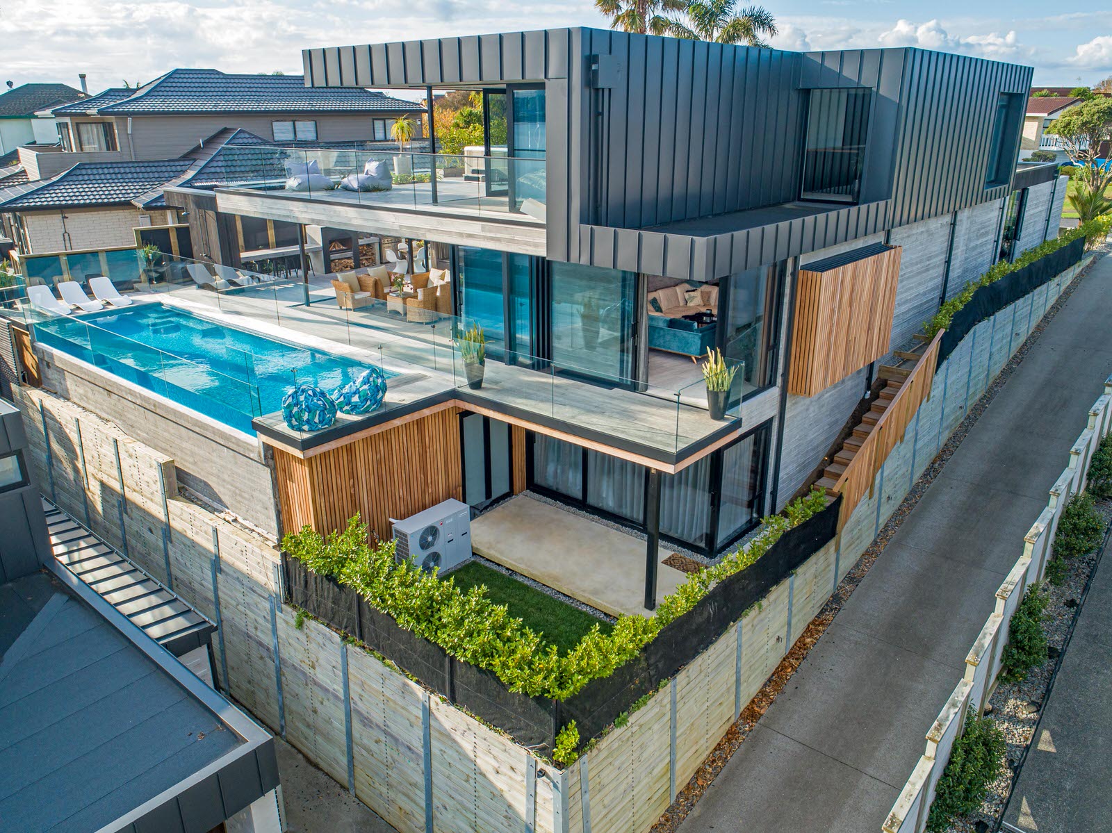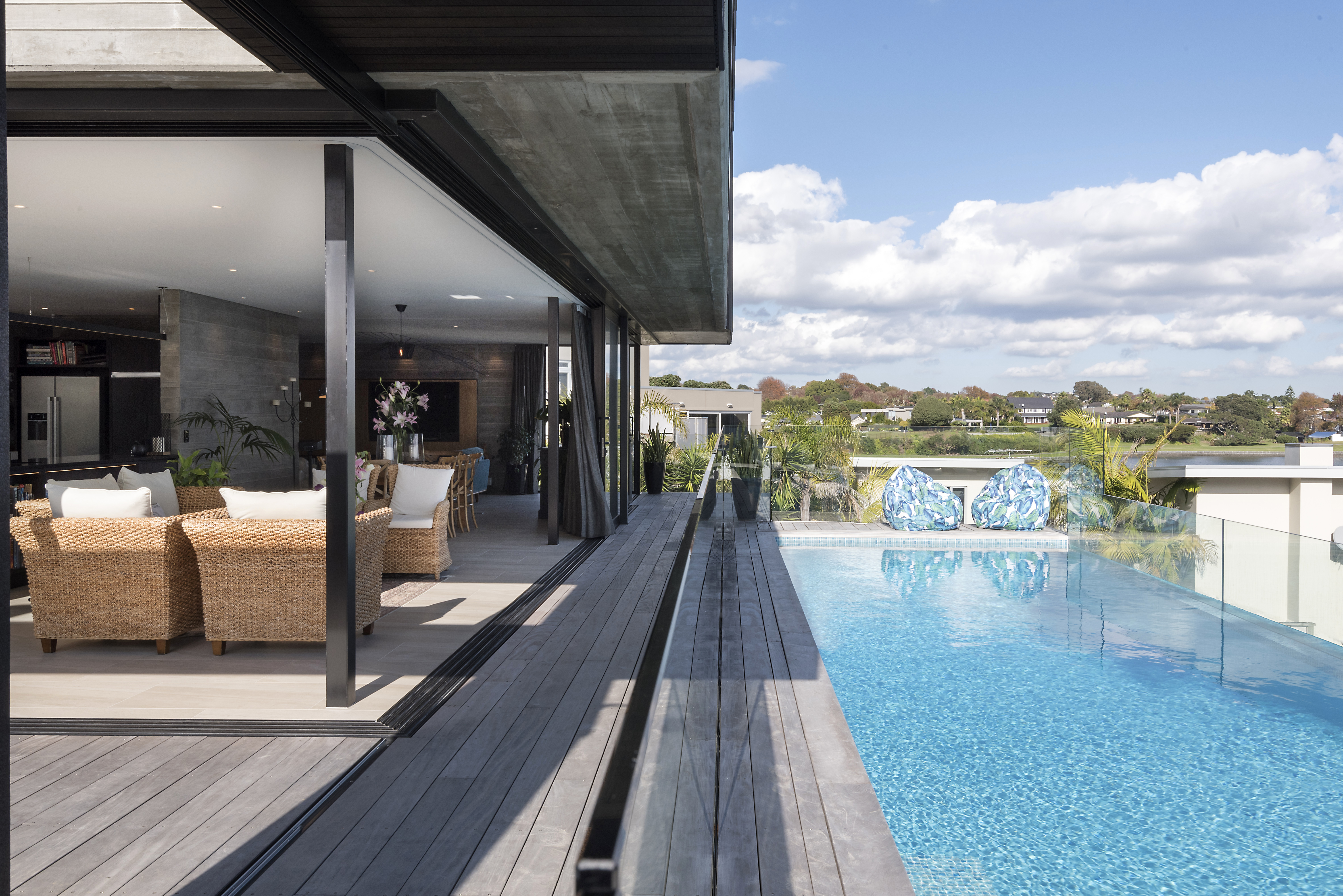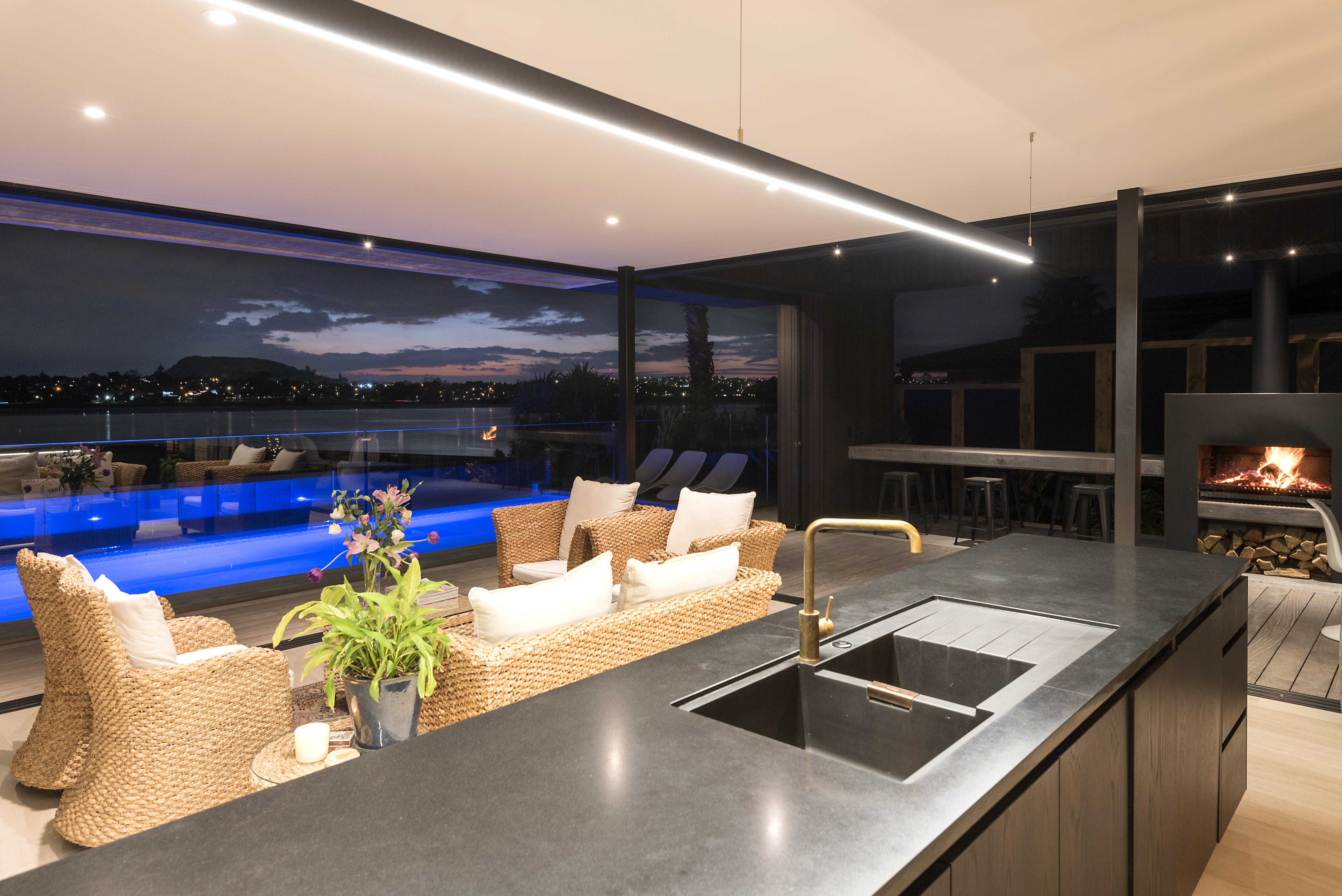 But it was the commitment to outdoor living – stunning views over the elevated pool, outdoor dining and sit-up bar with open fire and outdoor kitchen – that impressed the judges so much, the build scooped the National Outdoor Award.