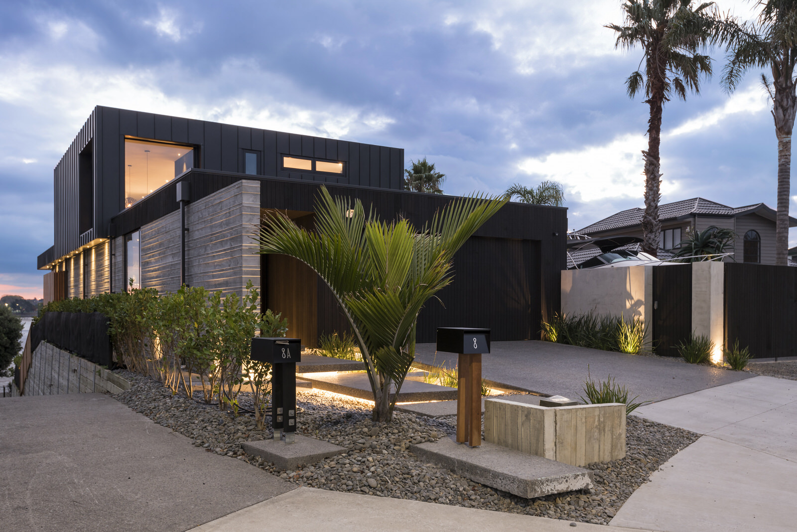 This contemporary construction takes its cue from the timeless architecture of Mies van der Rohe and Philip Johnson. It’s the second of two complementary designs built on a large waterfront property in Auckland.