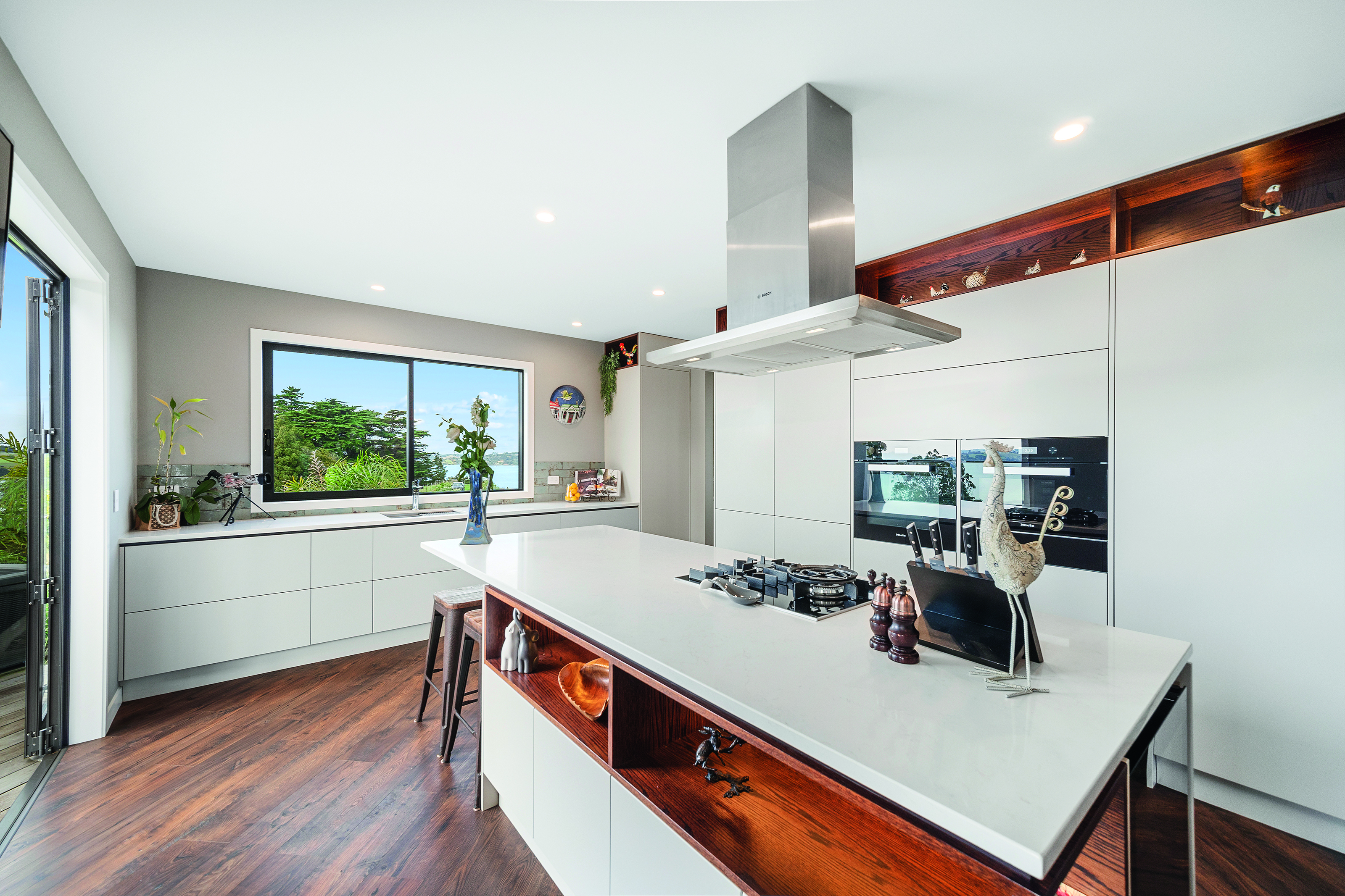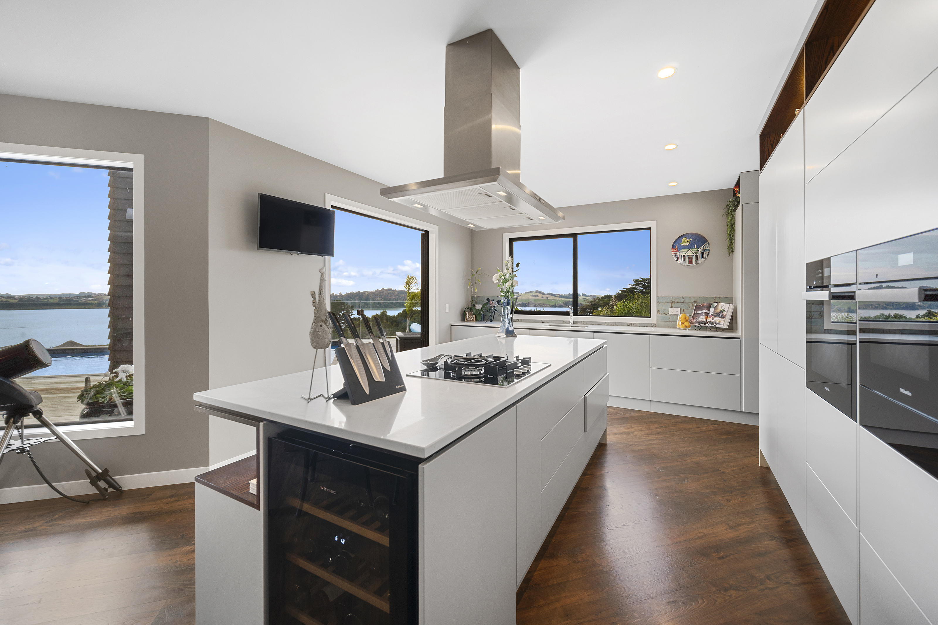 The spacious and stylish kitchen is an entertainer’s dream come true. A central island cooktop with suspended extractor allows the host to whip up meals while socialising or simply soaking up the view.