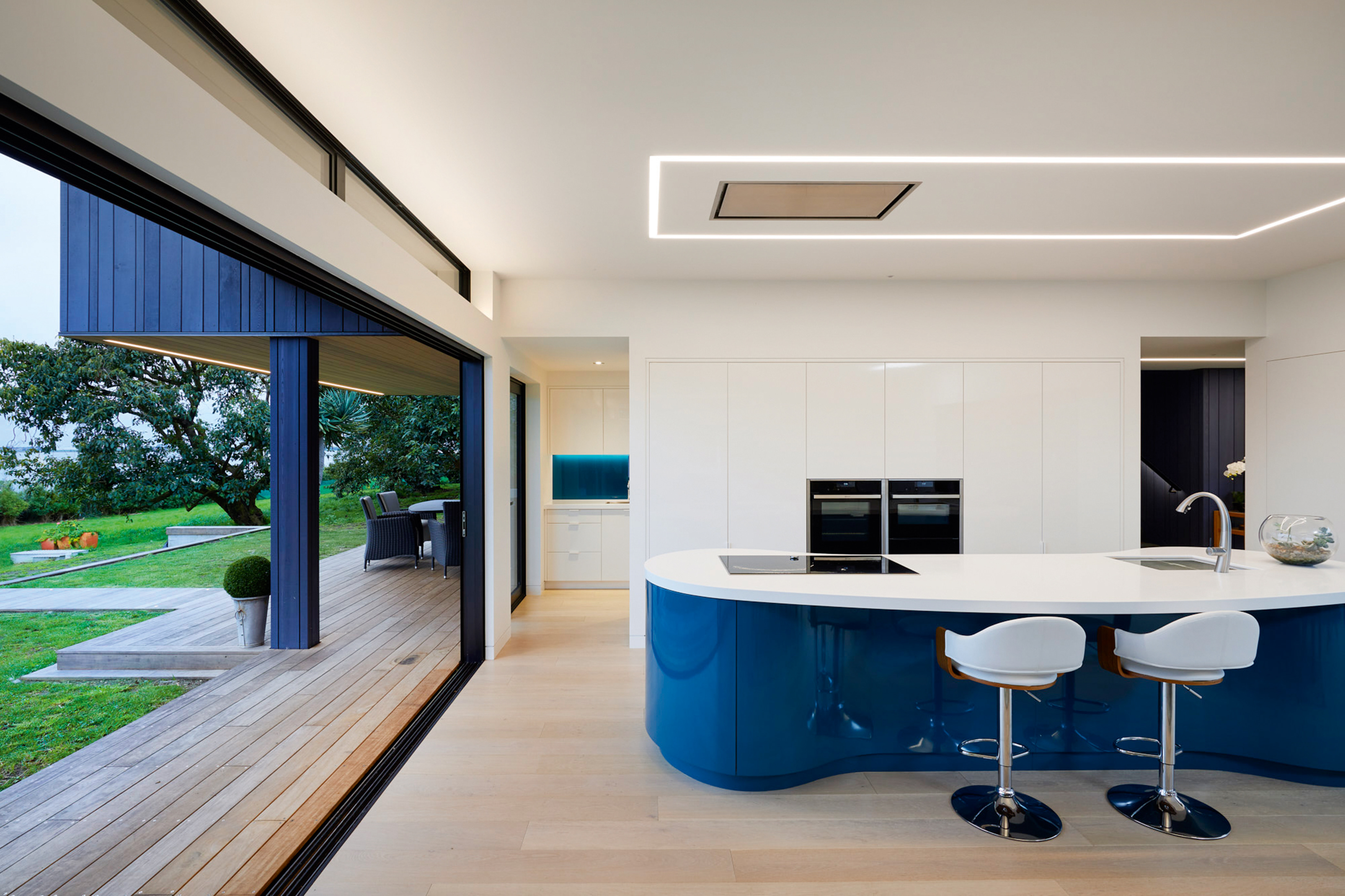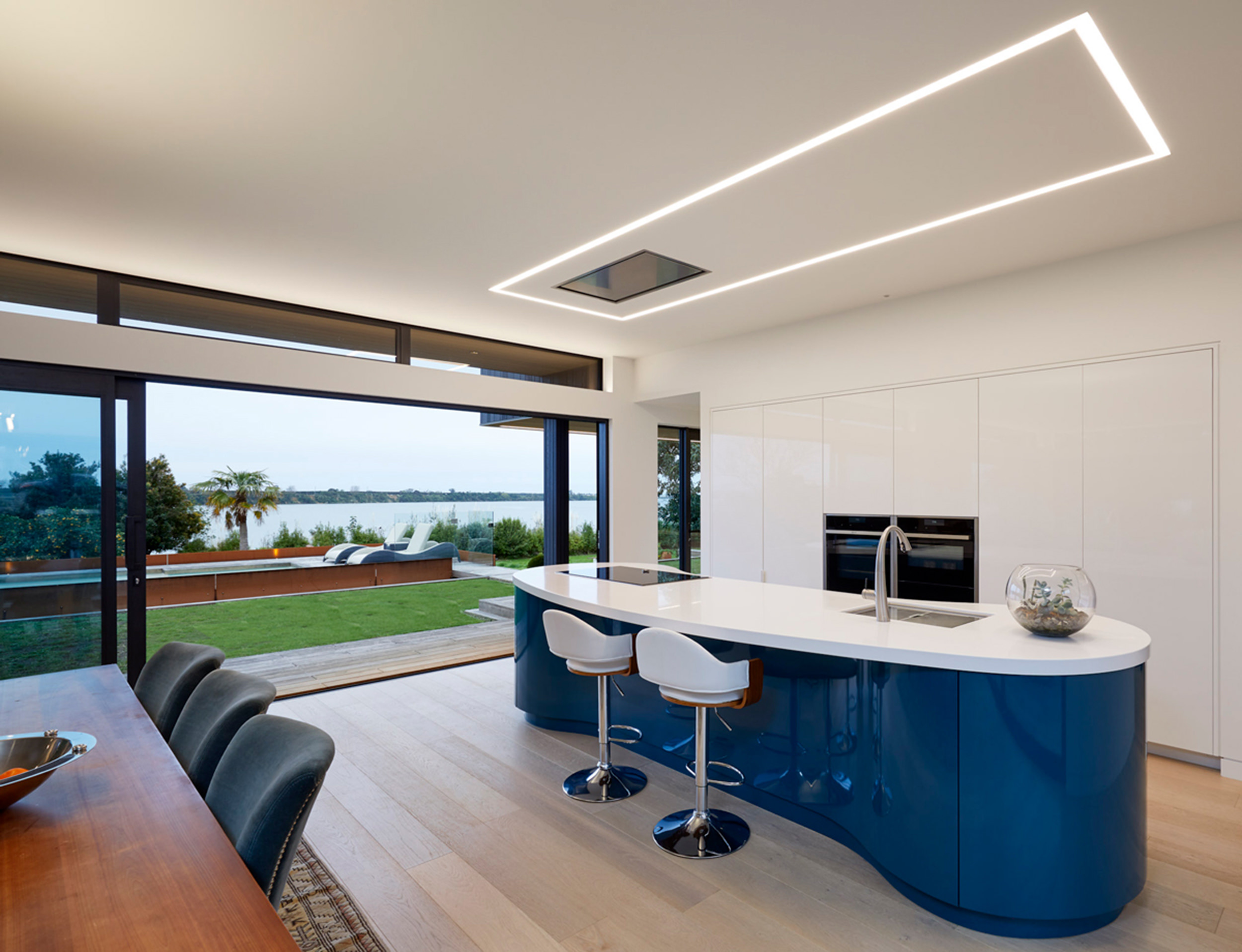 Nestled into landscape overlooking the Tauranga Harbour, this architectural design throws a contemporary curve ball in Tauranga – just check out the island bench.
