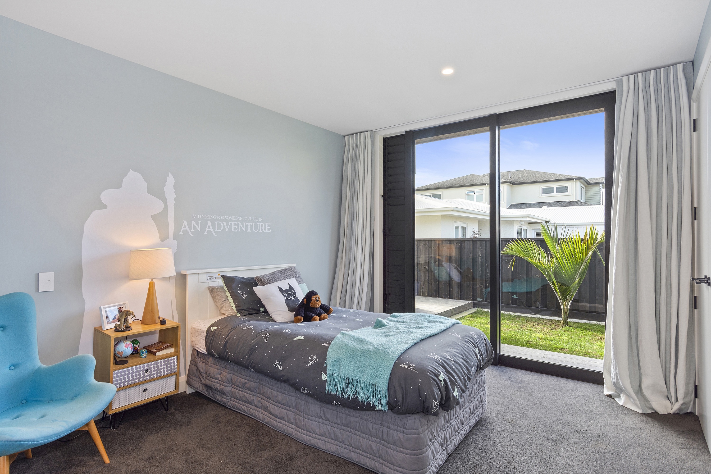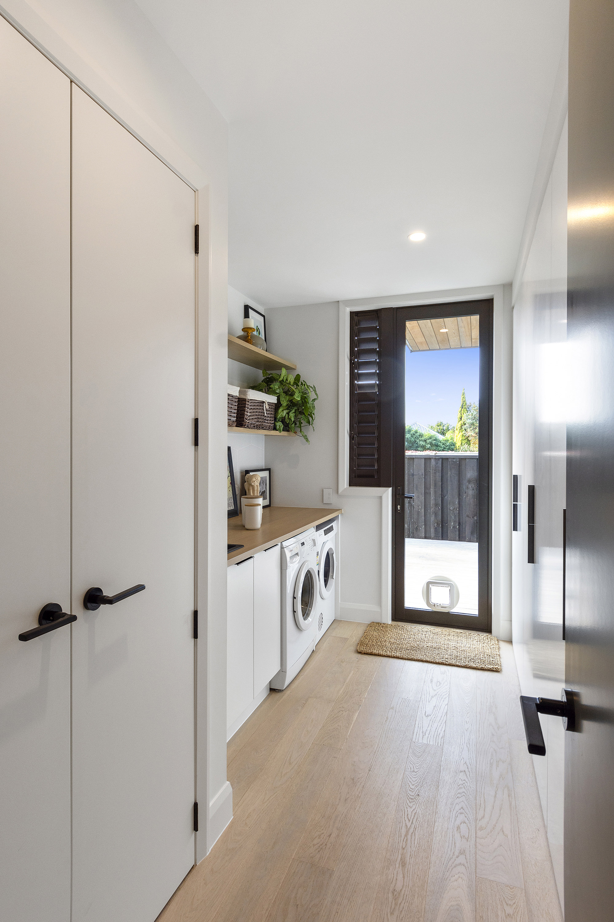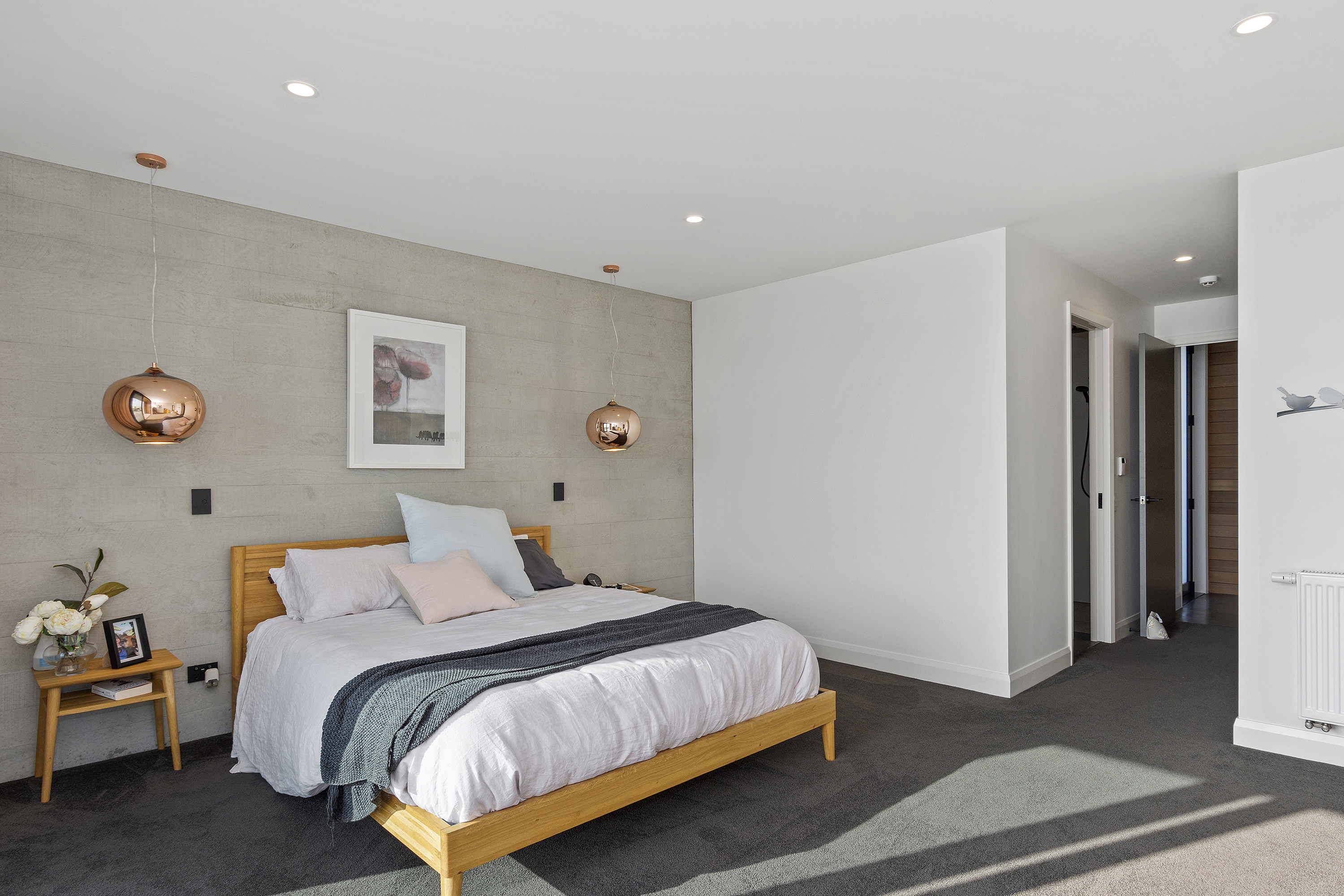 This dwelling has class, style and, most importantly, incredible functionality. A well-designed kitchen features three stacked ovens conveniently located next to the unobtrusive hob and work bench. The fire is the focal point of the spacious lounge. Smart shelving creates space for a colourful ceramic display.