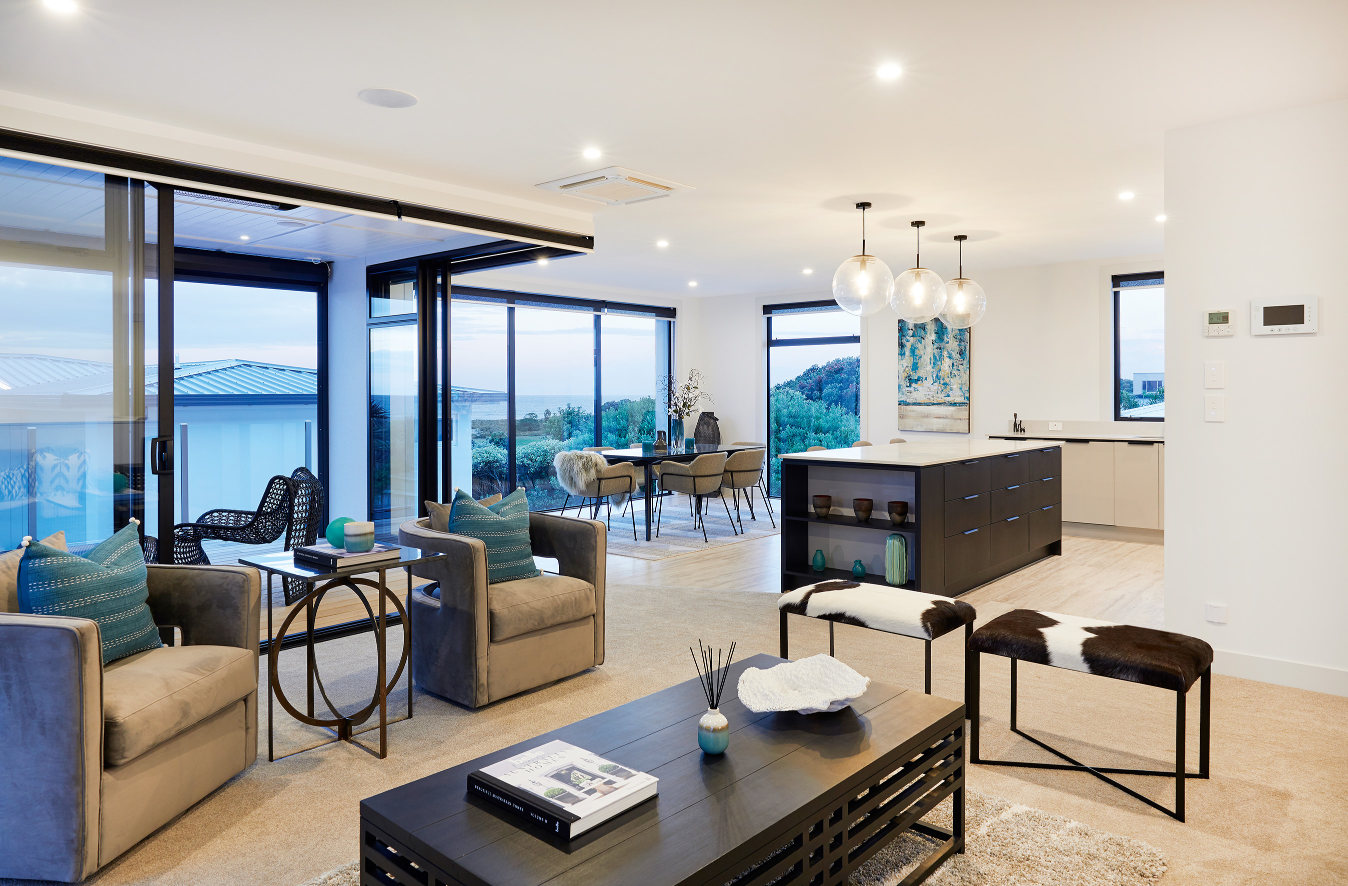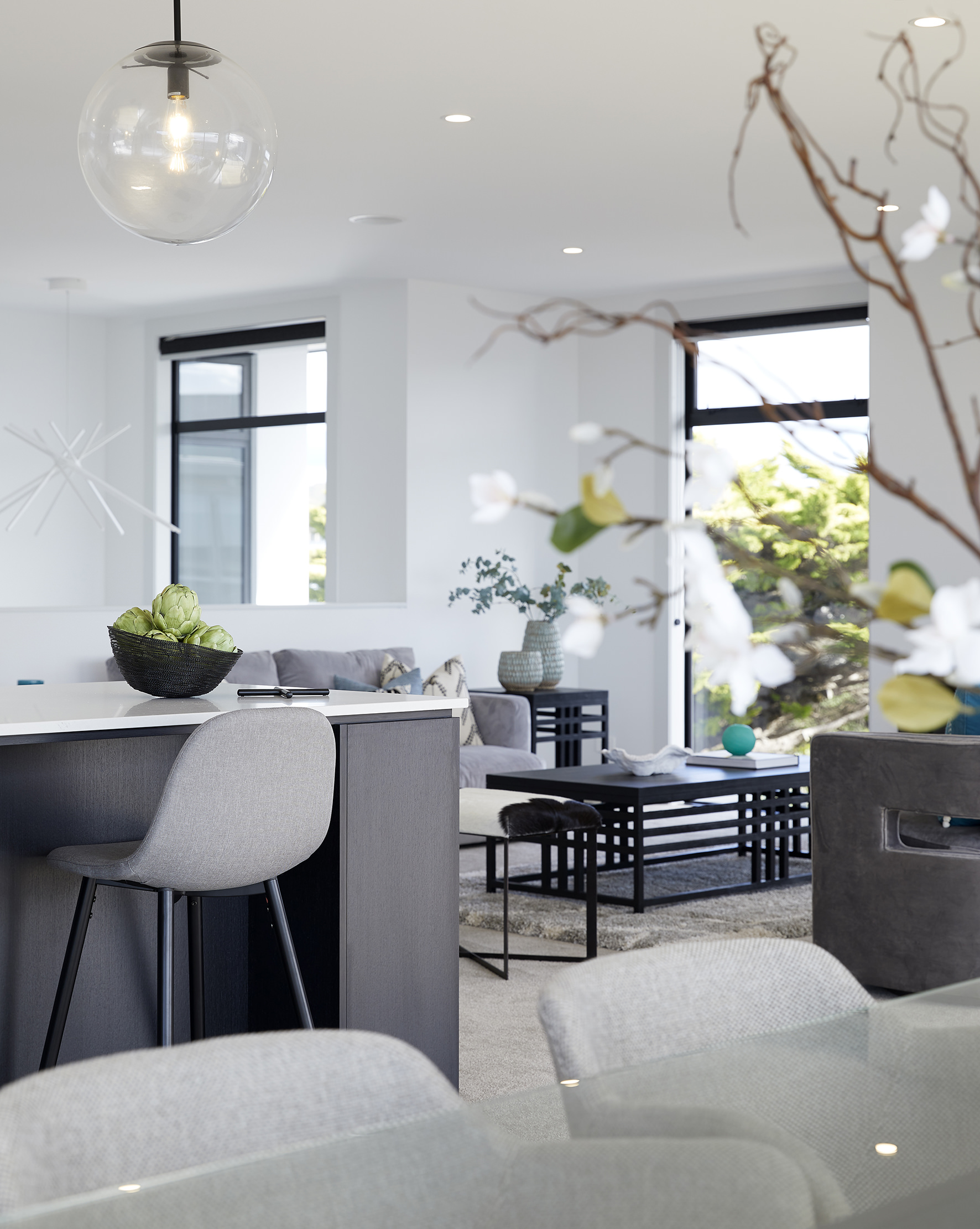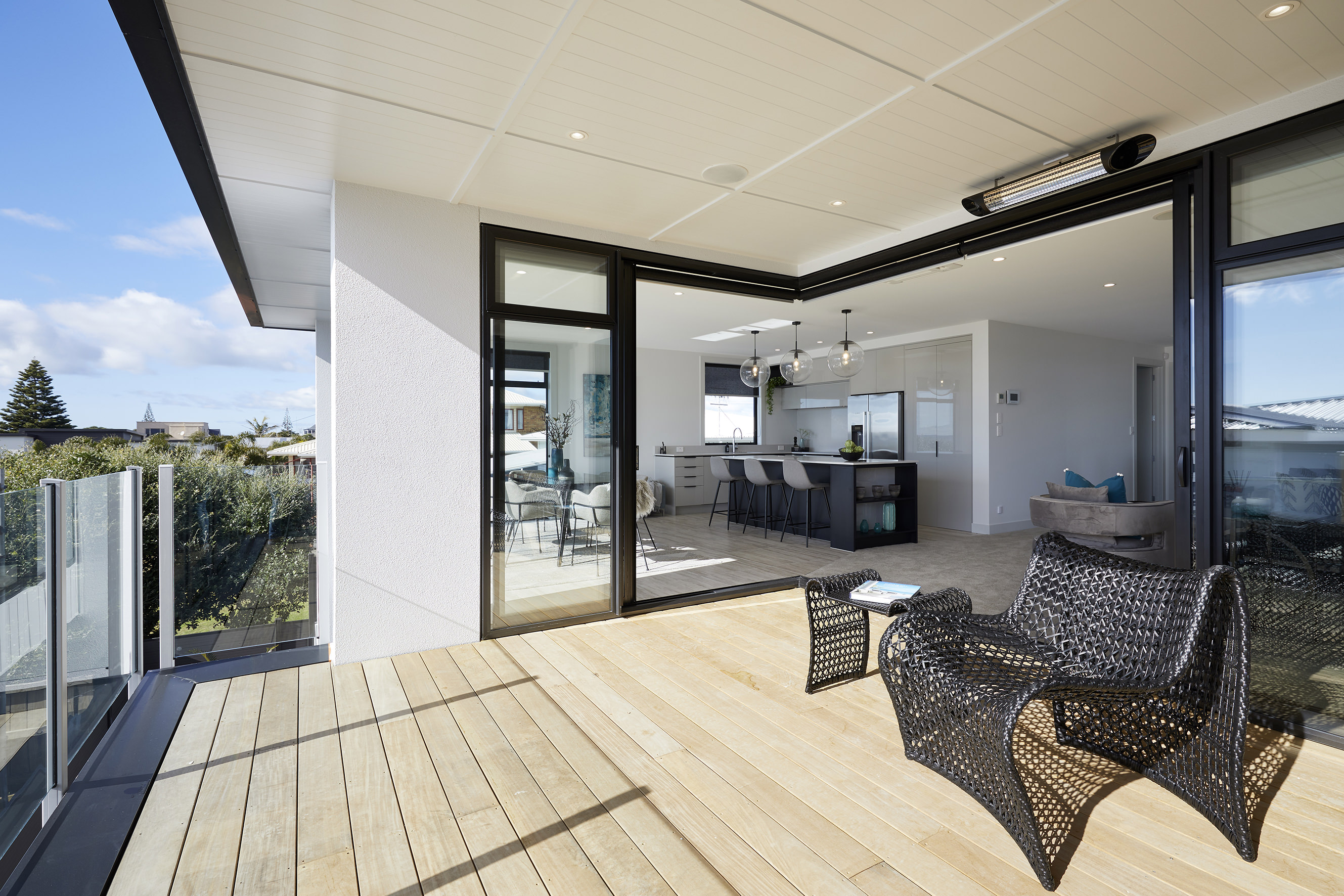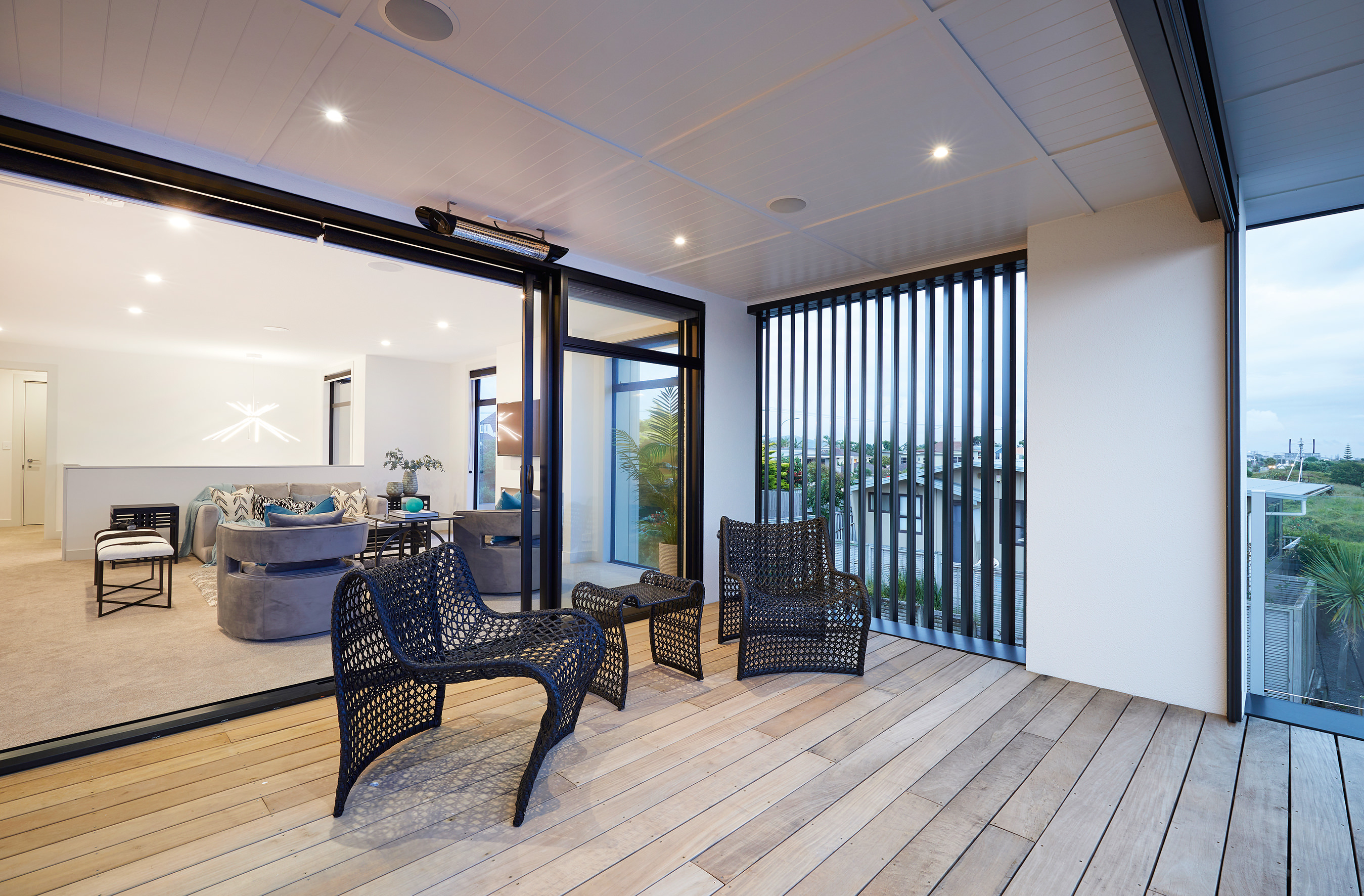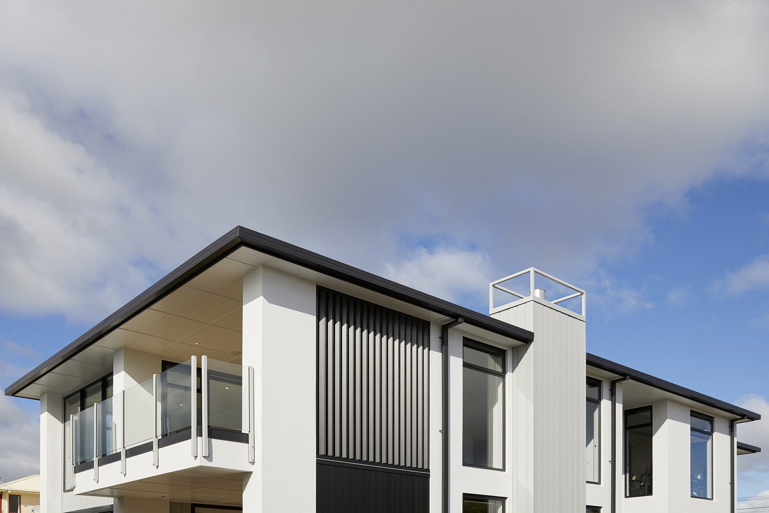 With its strong vertical detailing and proud stature, this Tauranga show home beckons visitors to take a closer look. Resort-style living is the theme here, with separate accommodation upstairs and down. A choice of a lift or stairs connects the levels.