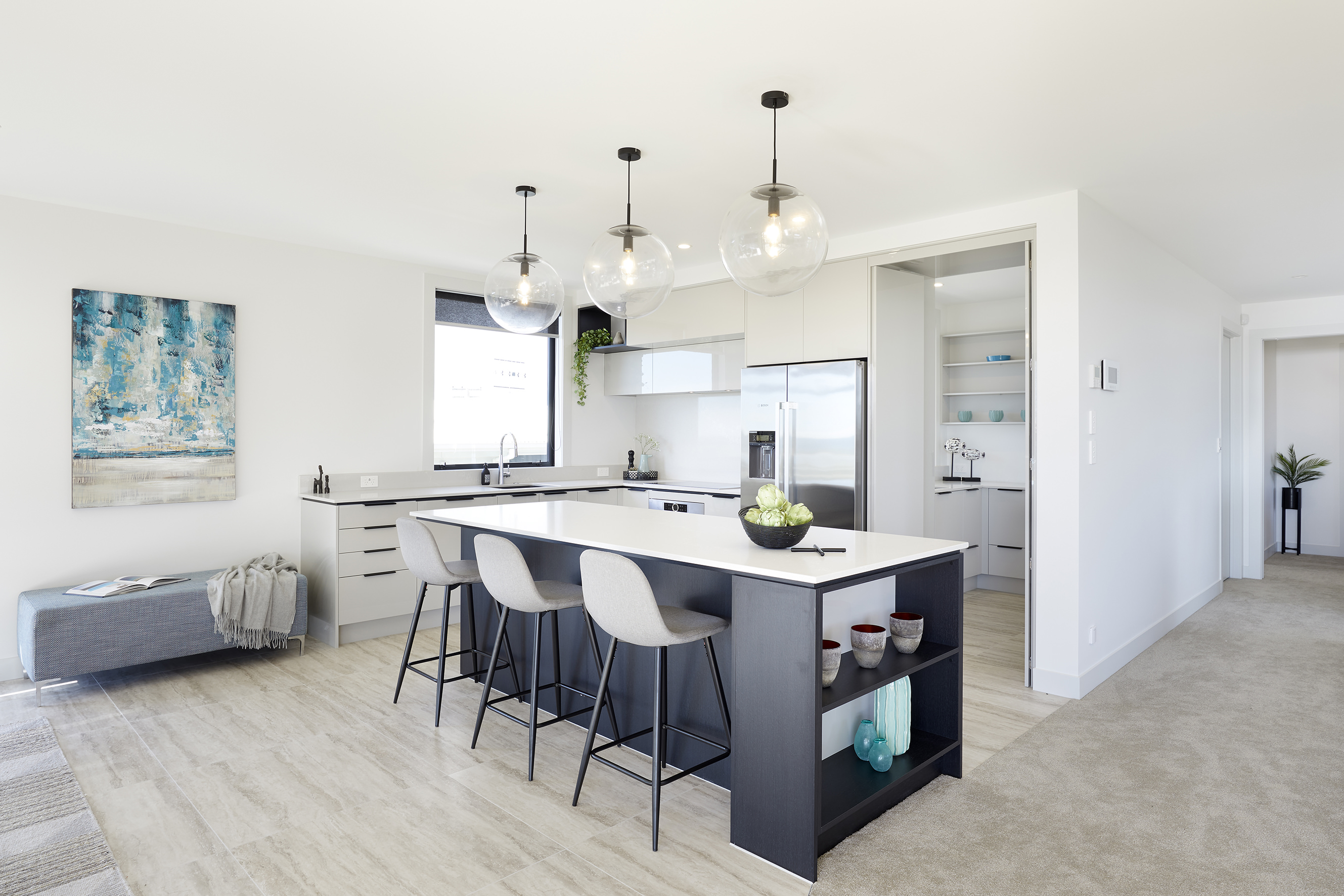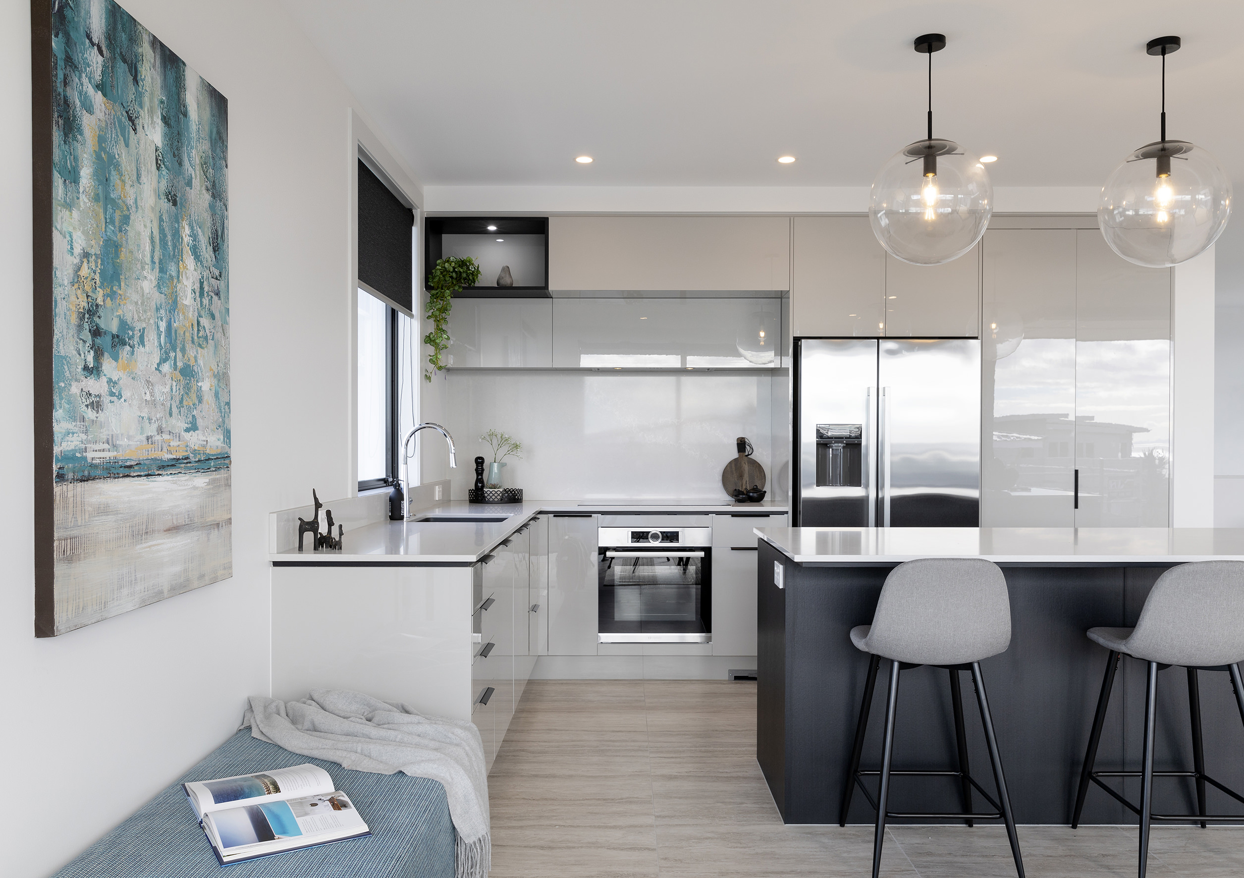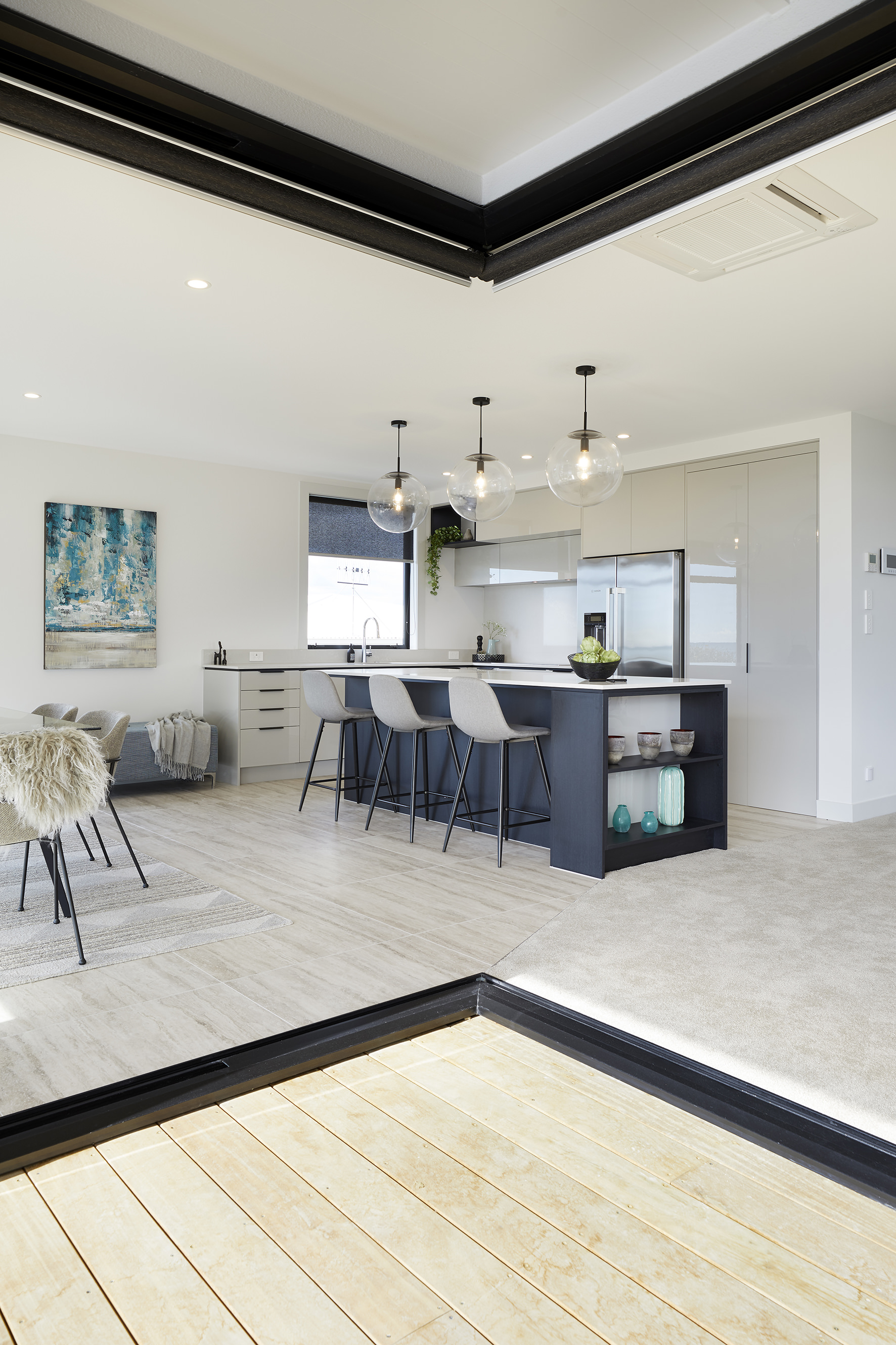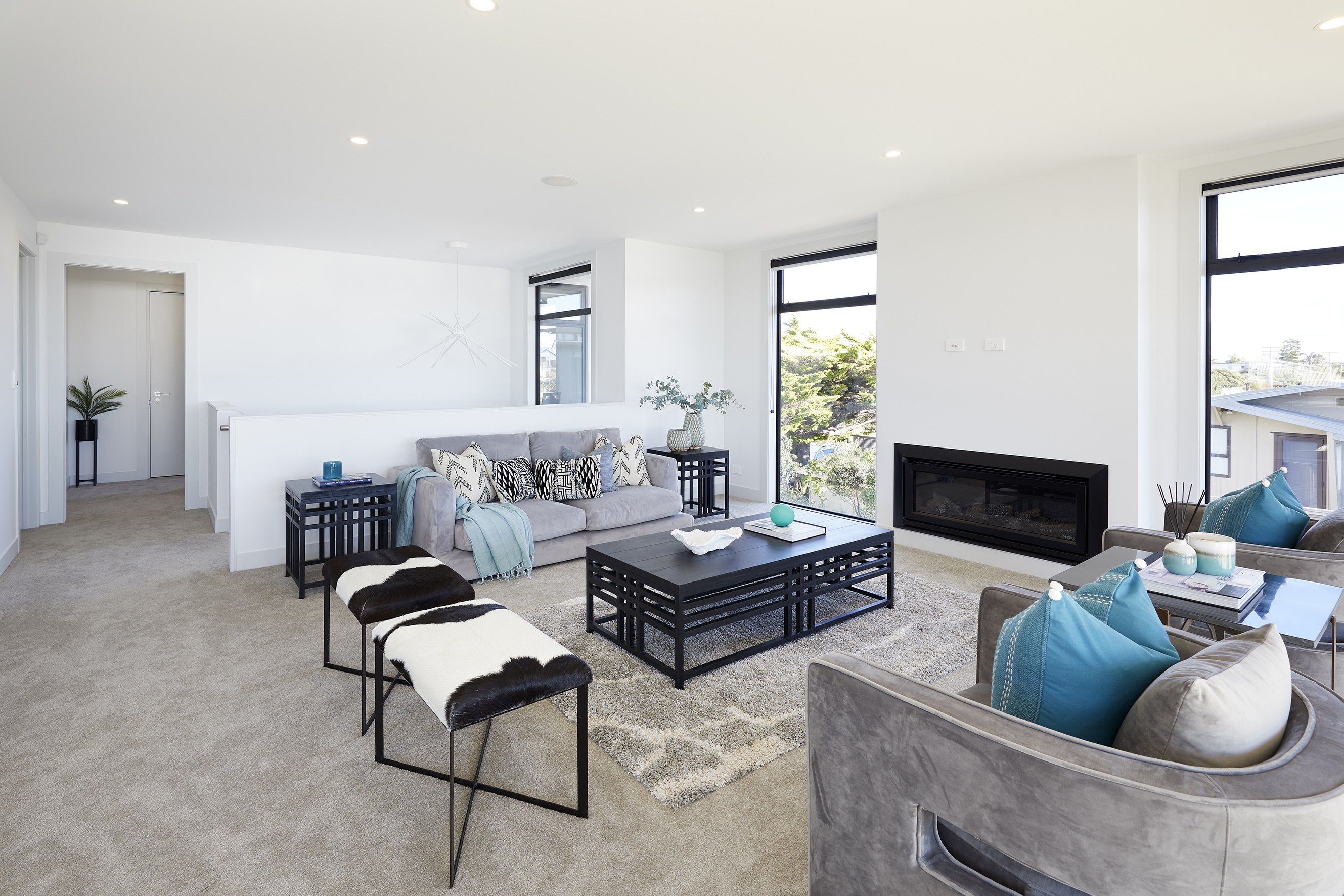 With its strong vertical detailing and proud stature, this Tauranga show home beckons visitors to take a closer look. Resort-style living is the theme here, with separate accommodation upstairs and down. A choice of a lift or stairs connects the levels.