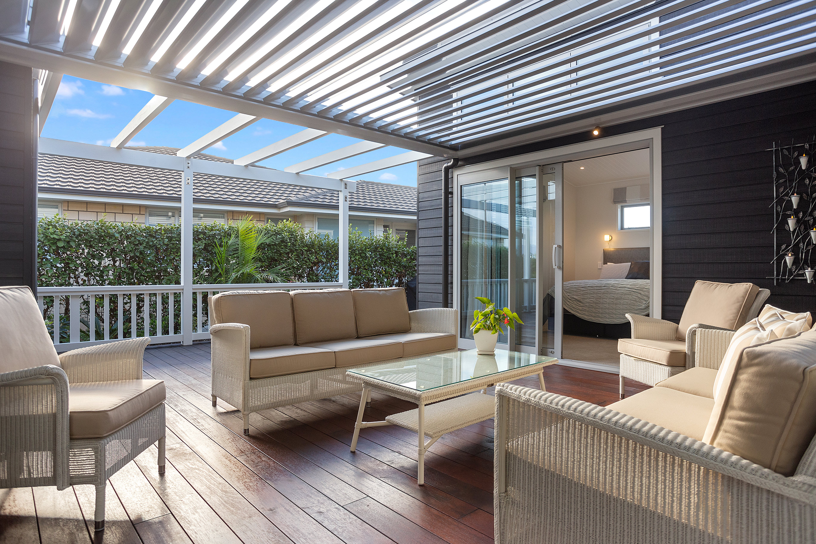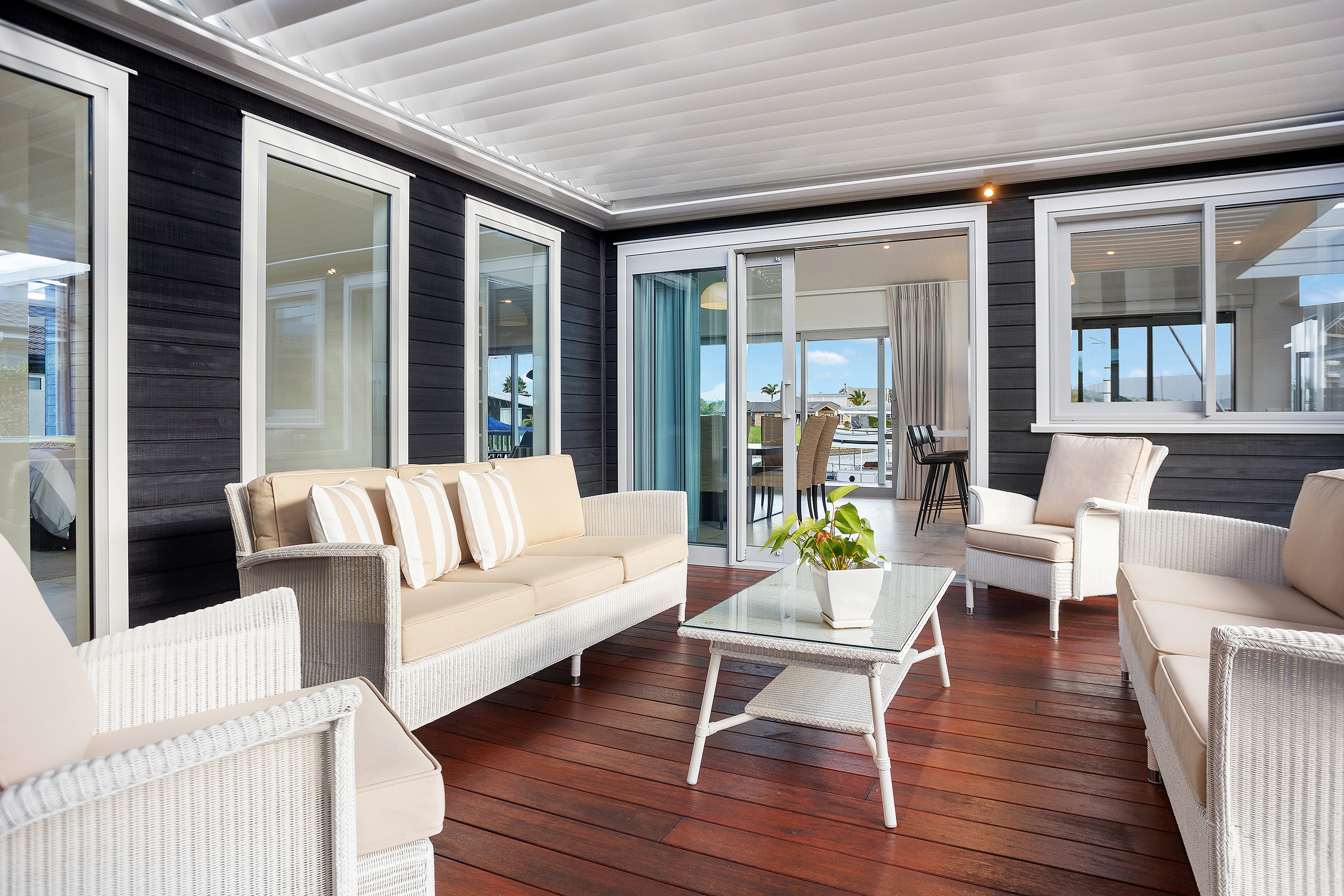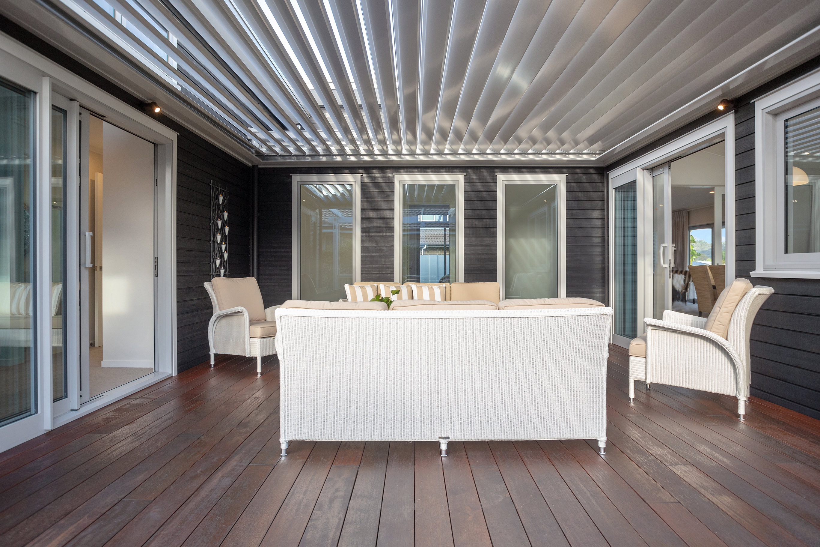 Kwila decking flows around three sides of the home allowing for easy alfresco living, whatever the weather.