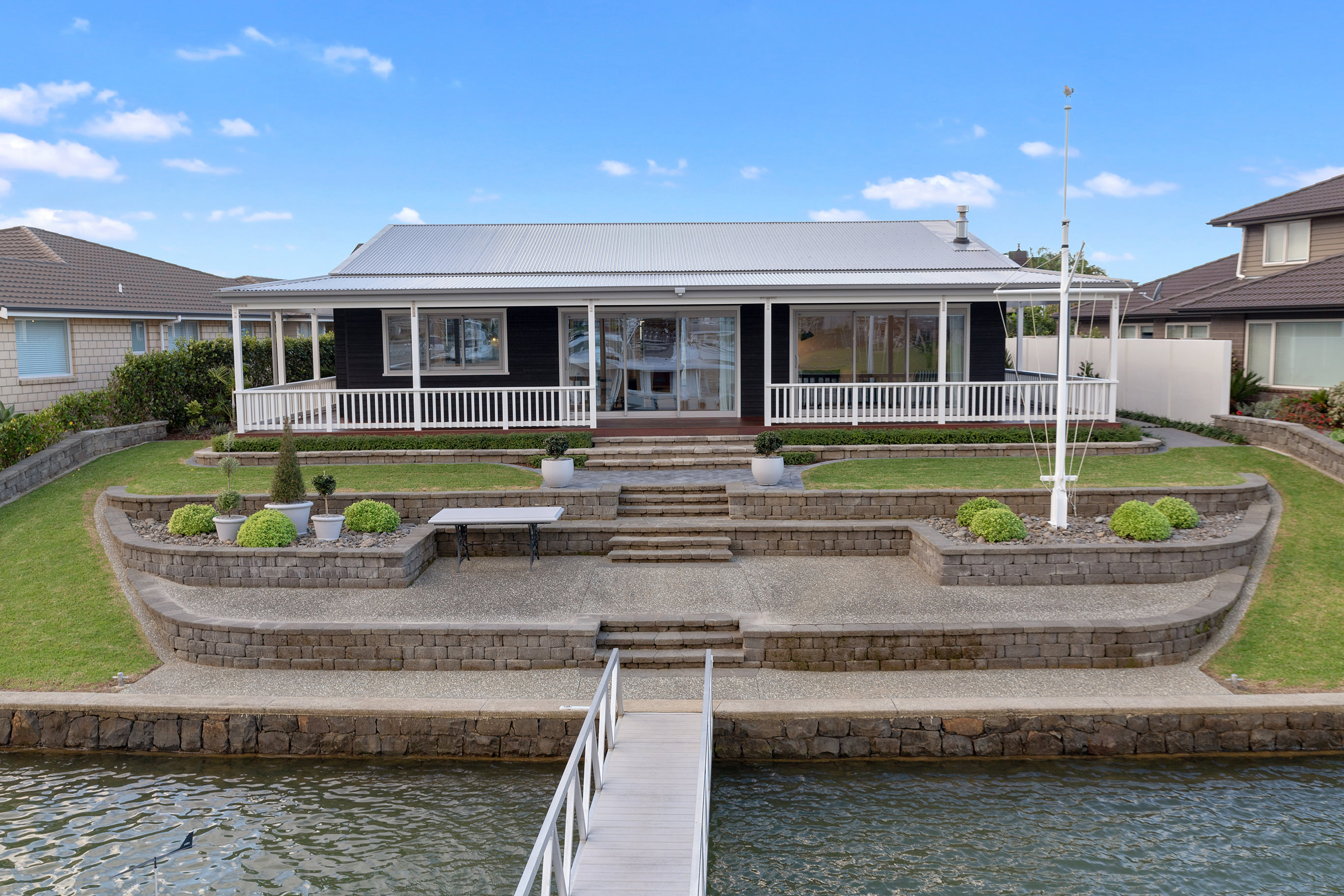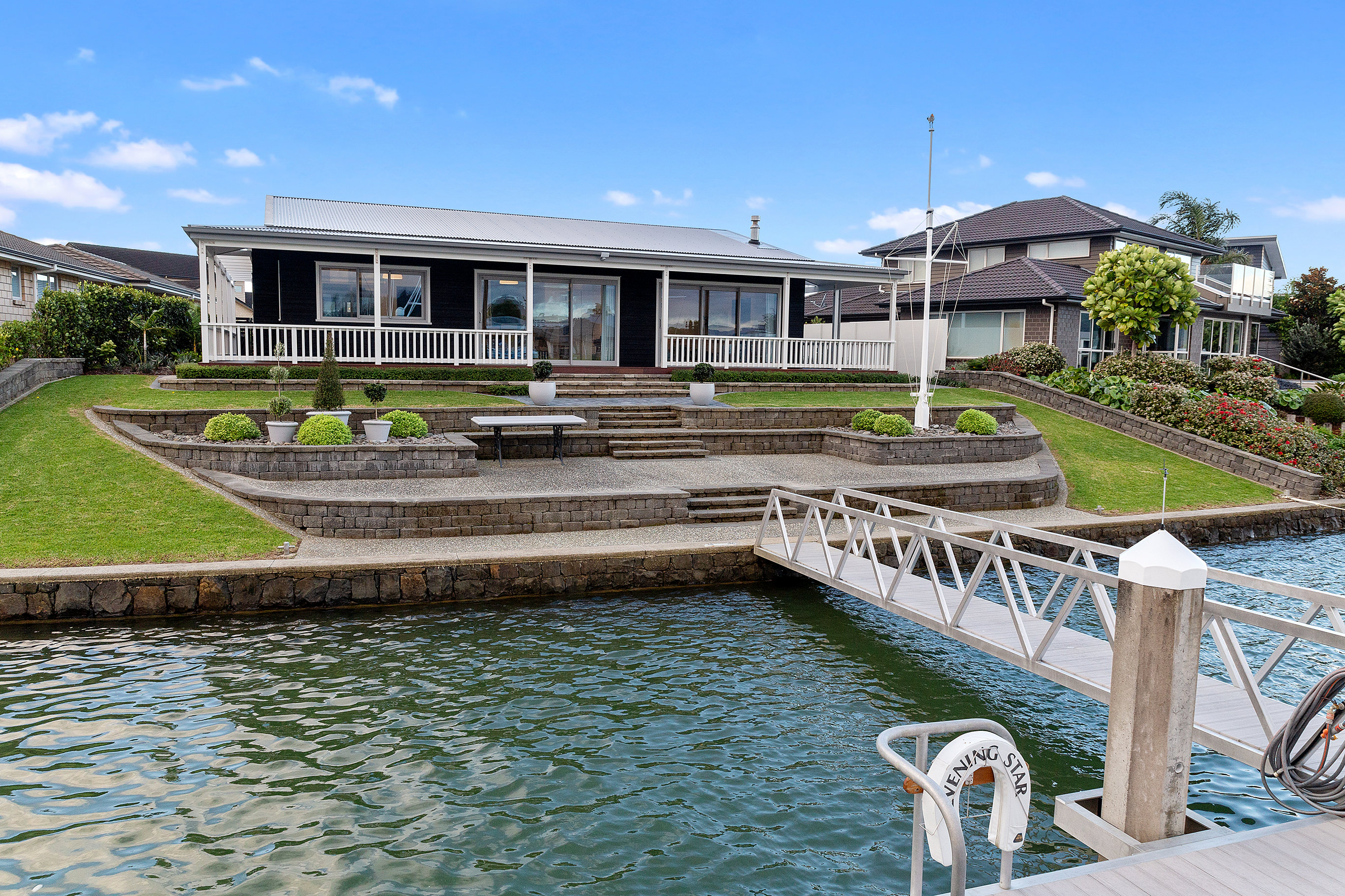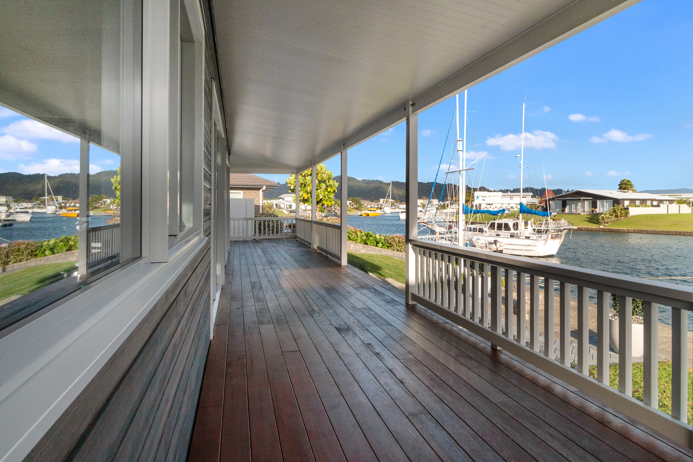 As soon as you step inside, you’re rewarded with a view through the gallery-style hall to waterways beyond. Colonial-style verandas survey the scenery.