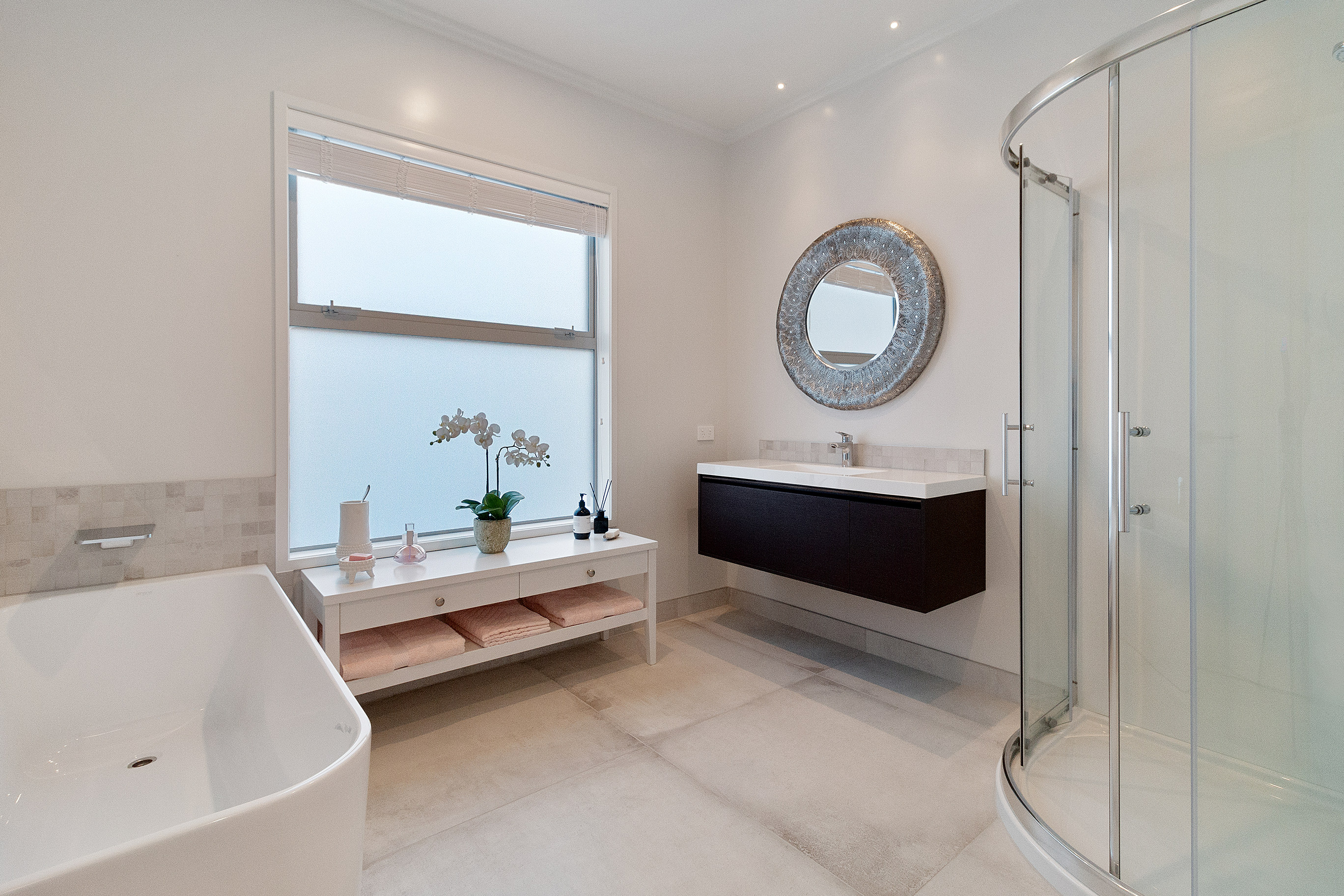 Sheltered on three sides by the dining area, gallery and master bedroom, and capped off with a louvre roof, the central outdoor space caters for year-round entertaining.