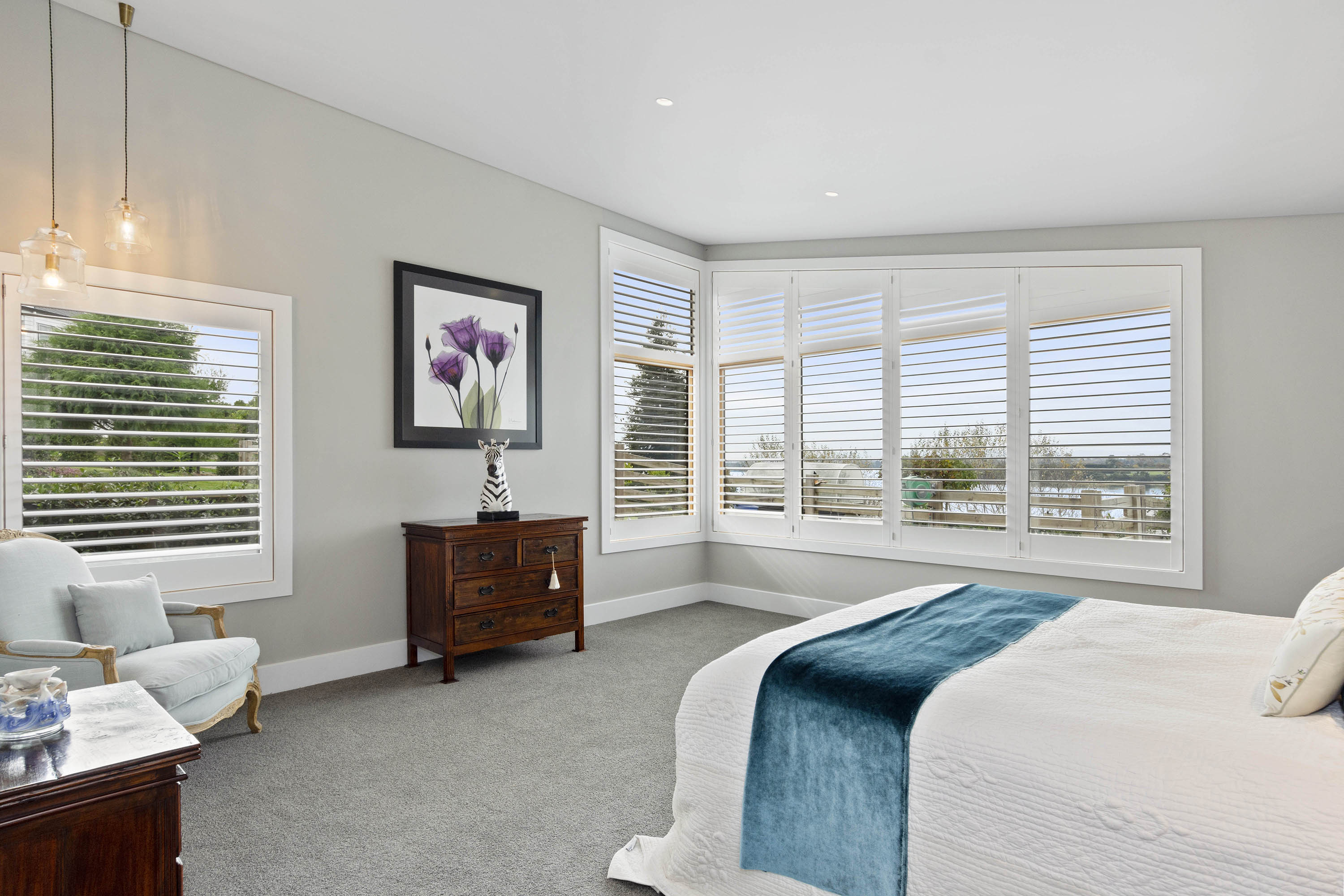 The master suite is pure luxury with an outlook to the water and a palatial ensuite.