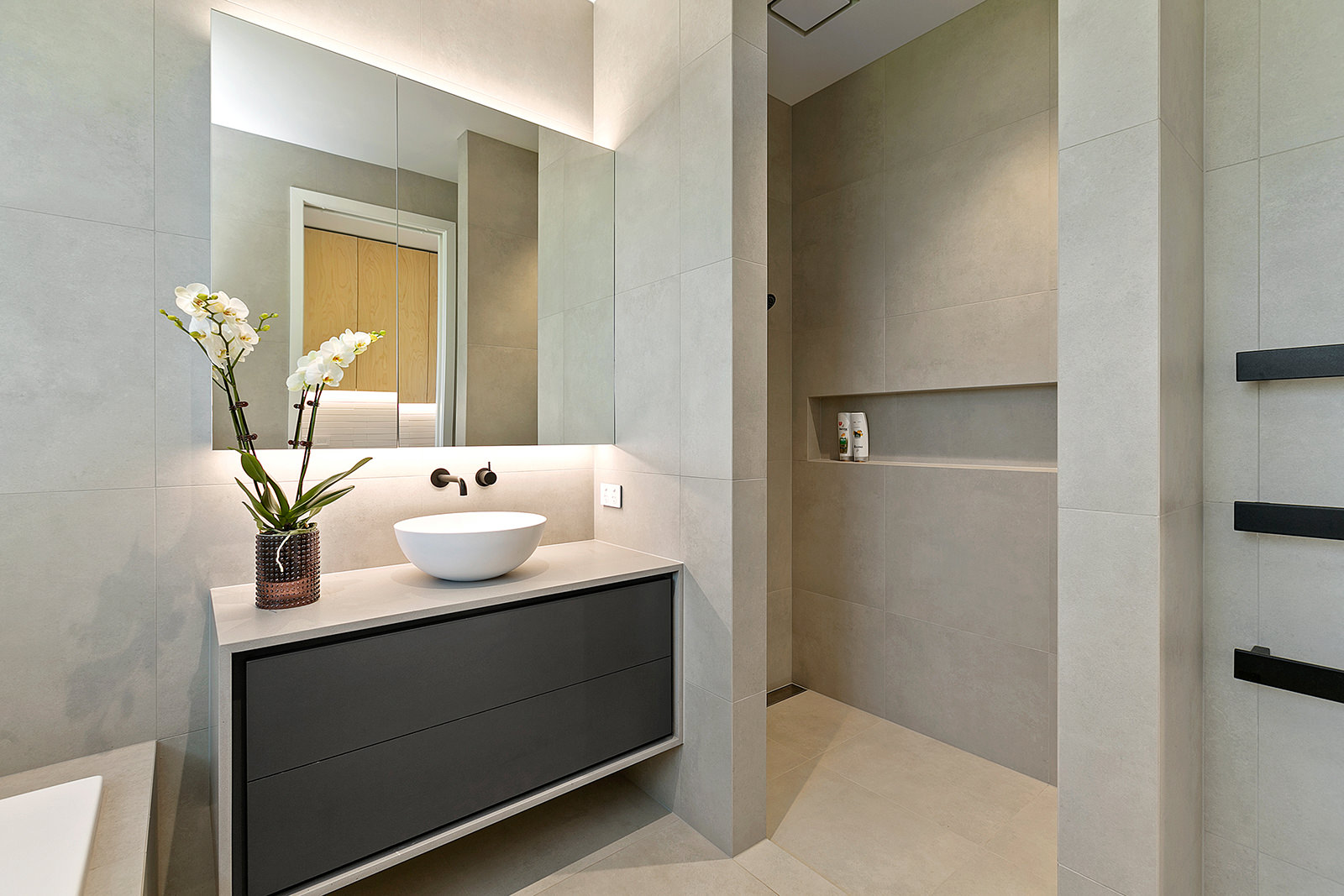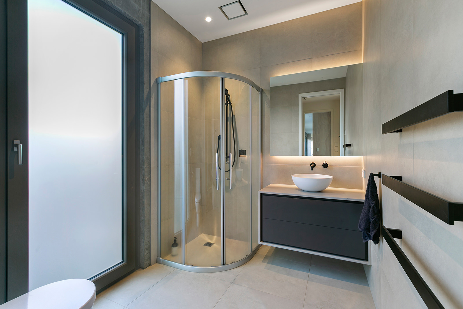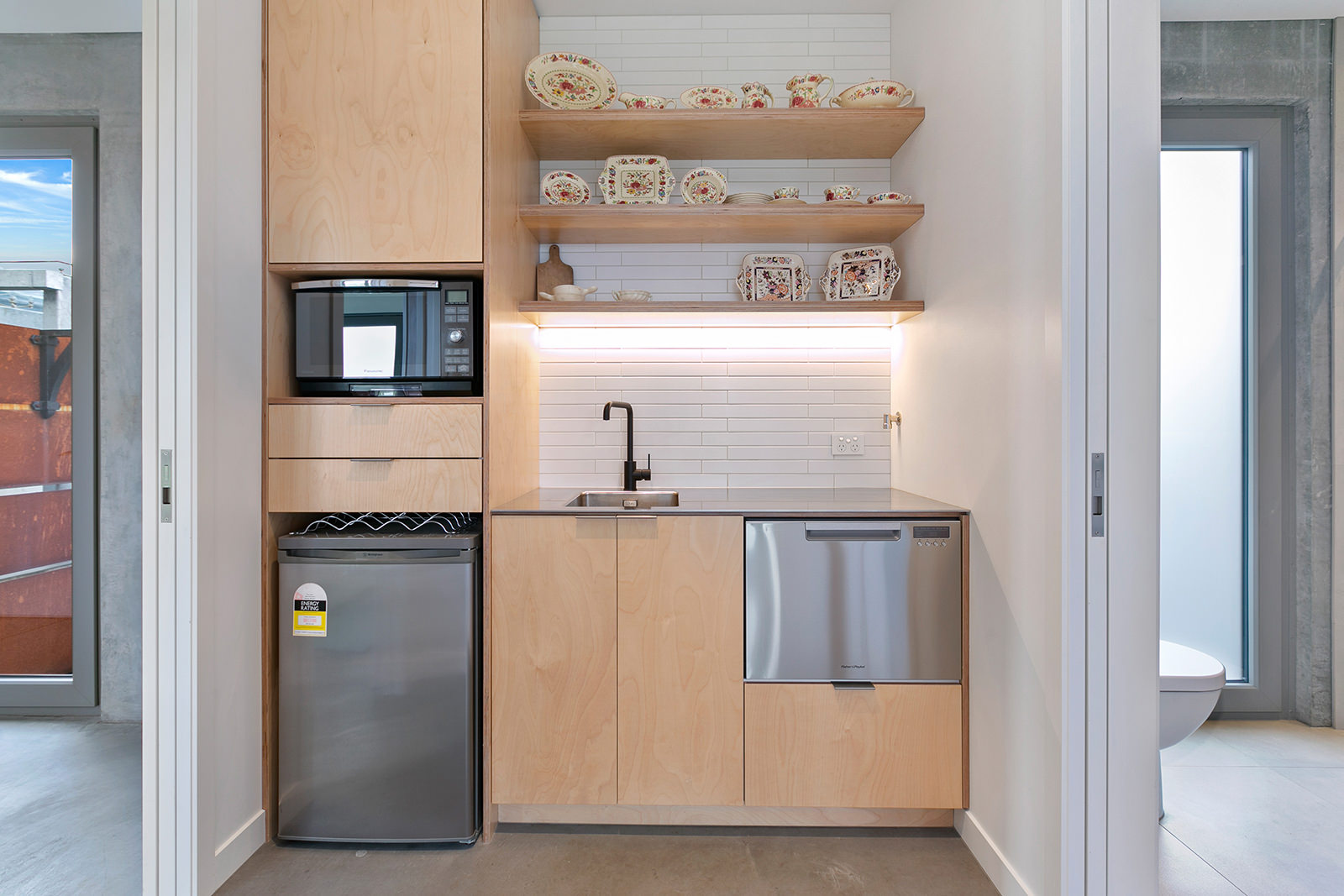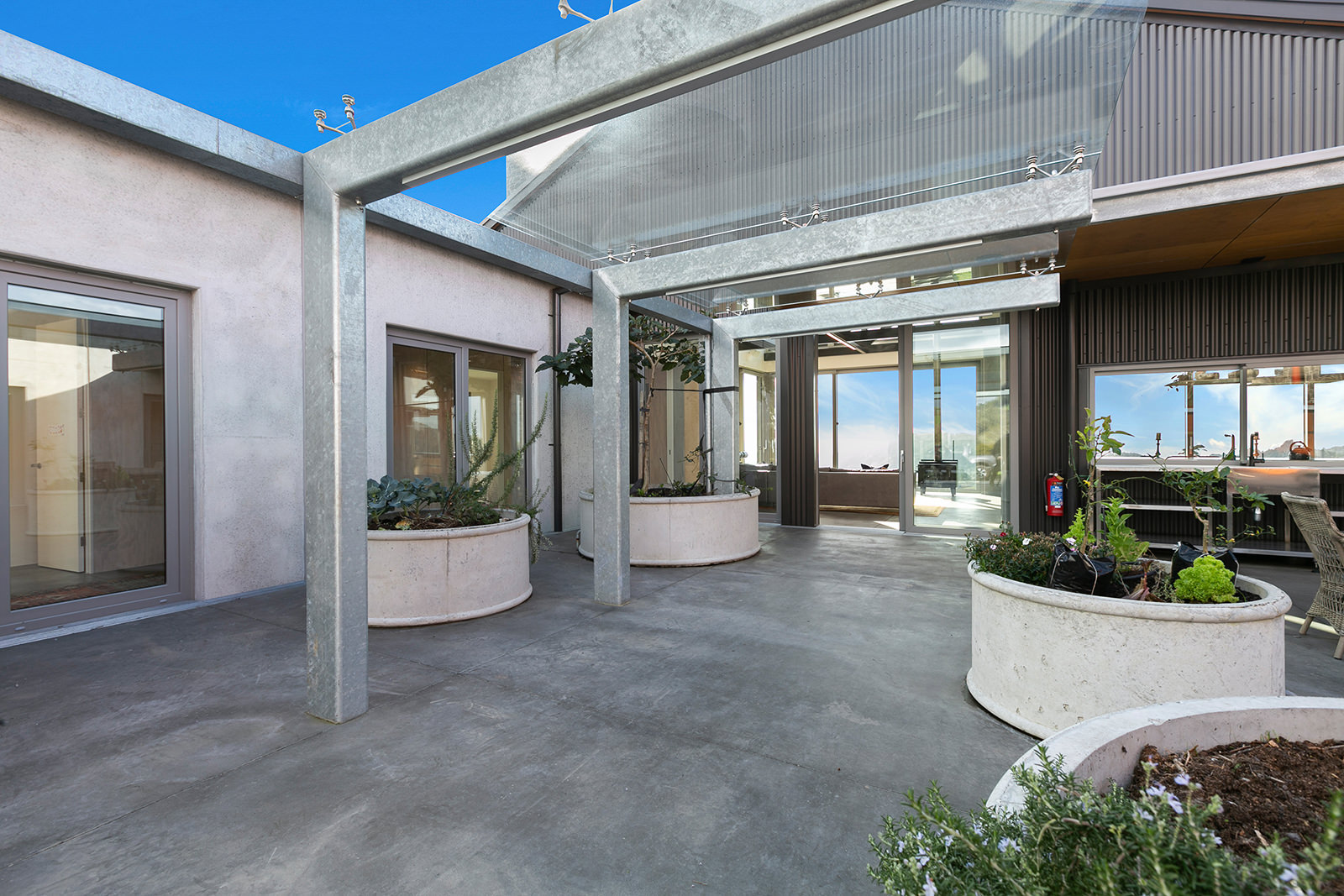 A floated glass canopy roof draws you into the entry. The ceiling skyrockets to 8m through the main living area with its kitchen/dining domain and lounge.