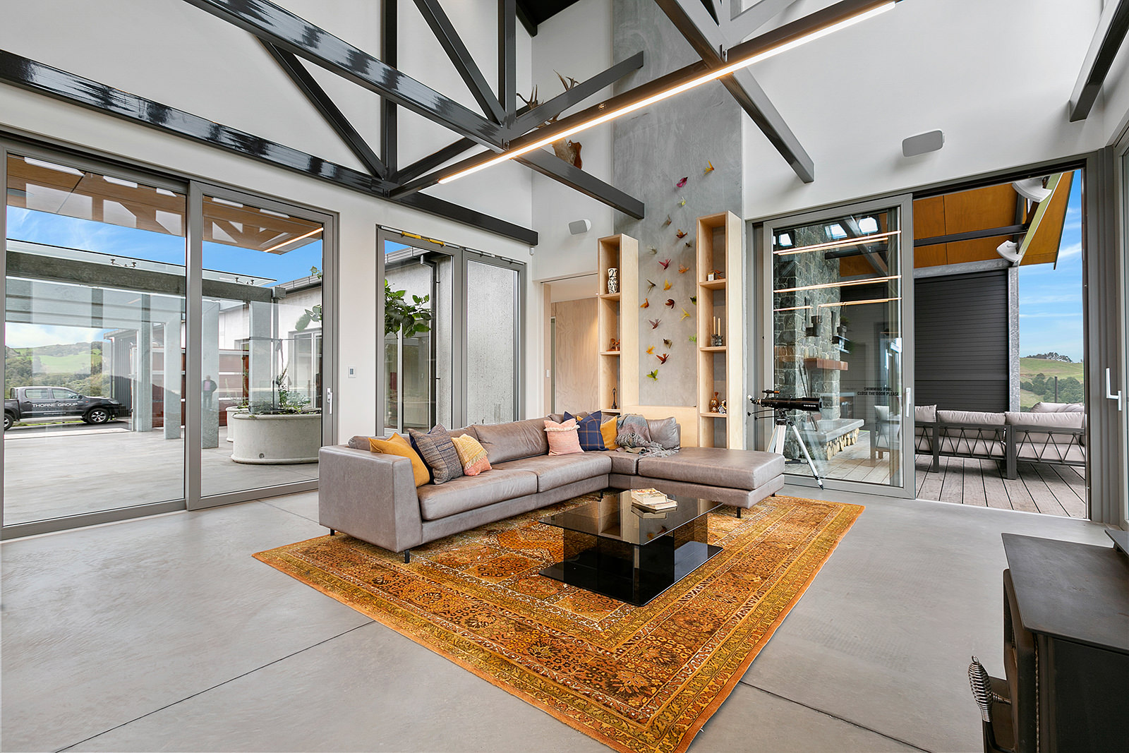 Expansive glazing, including screen sliders and skylights, harnesses solar gain.