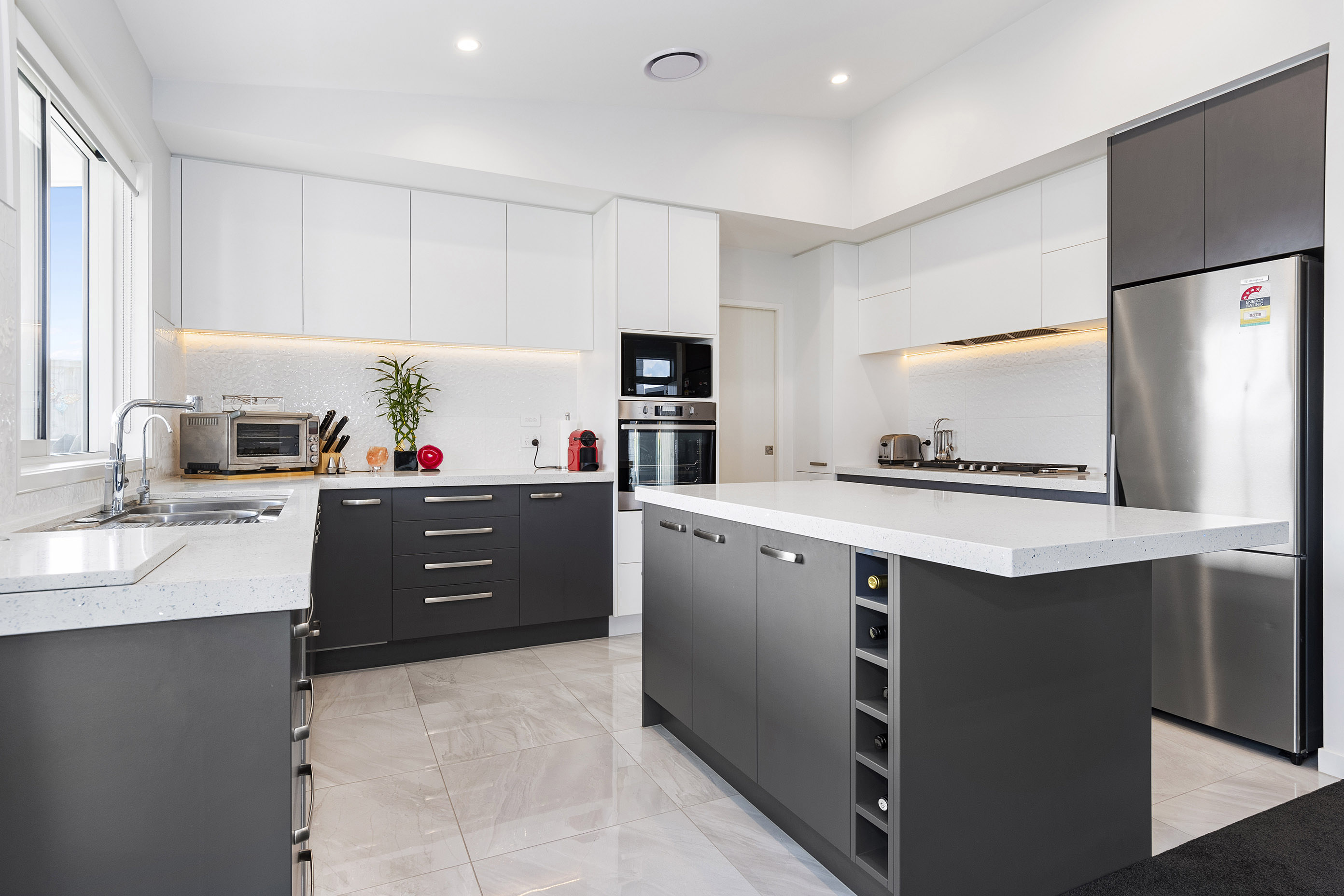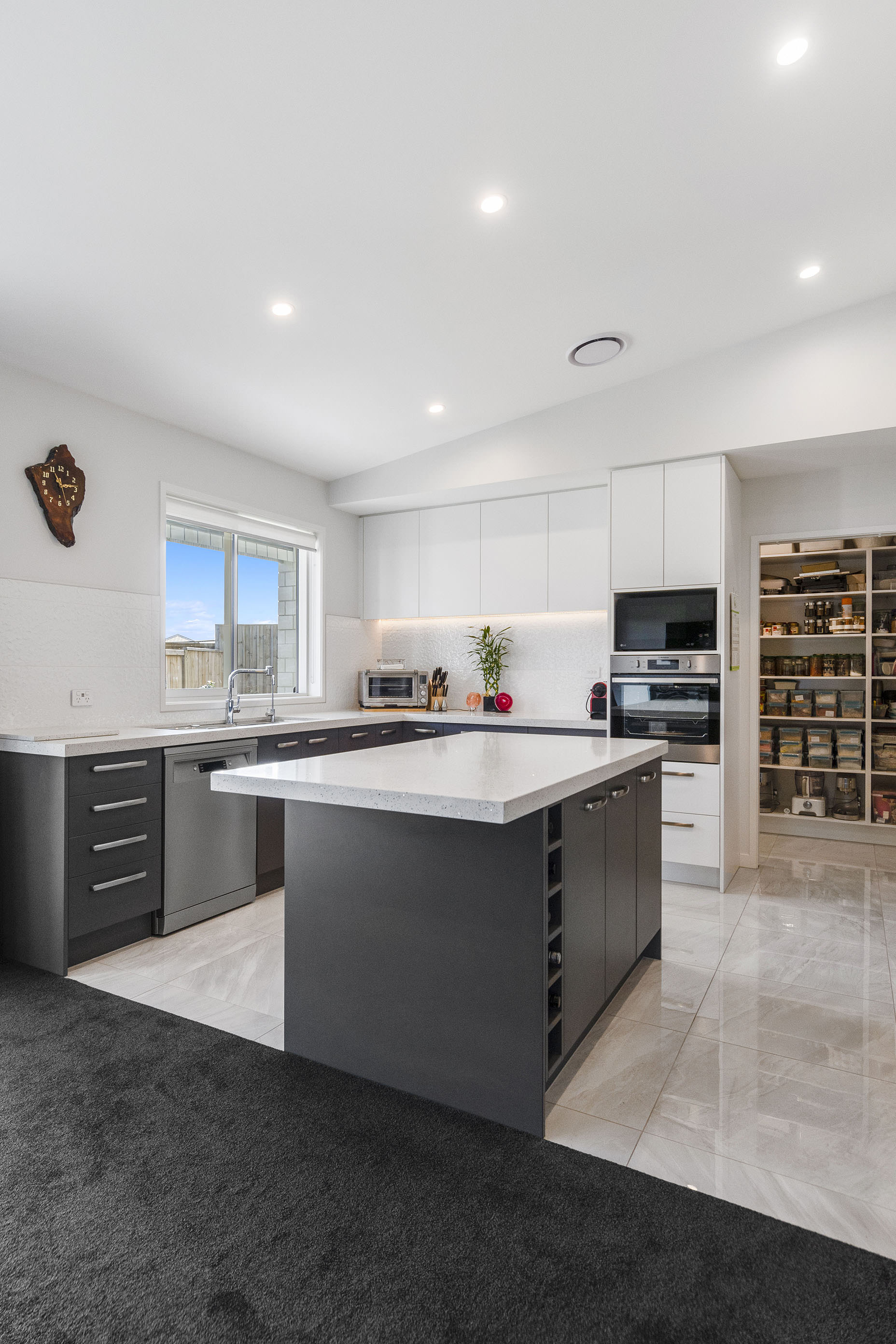 The open-plan entertaining area holds the recipe for happy family living, revolving around a custom-designed kitchen and fully equipped scullery.