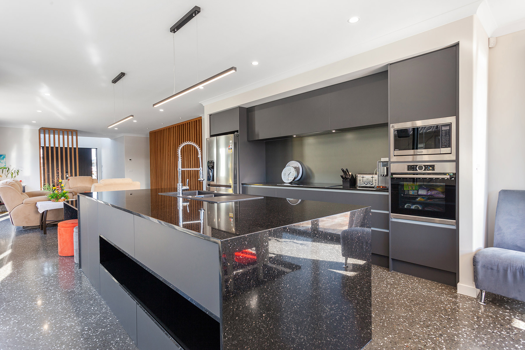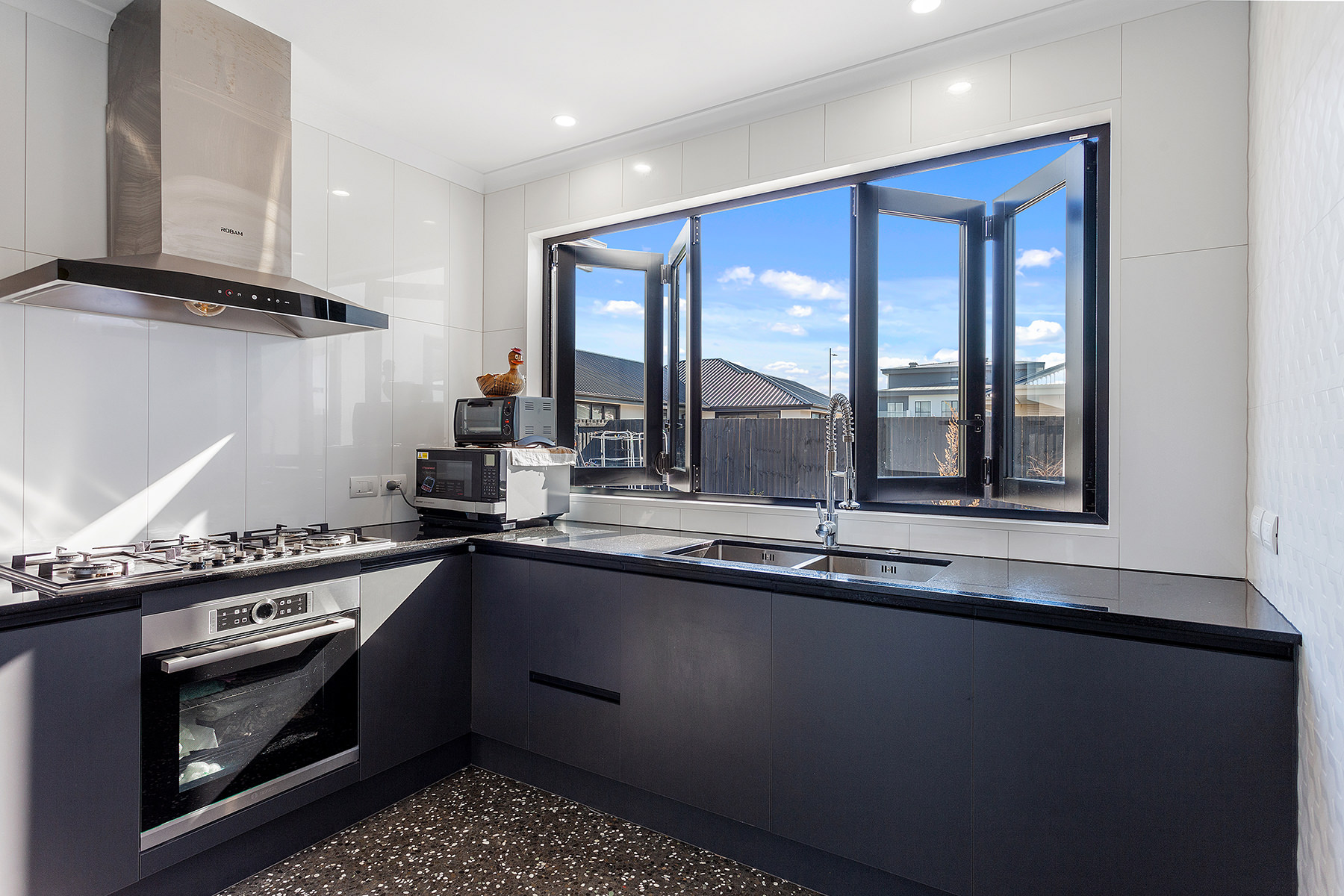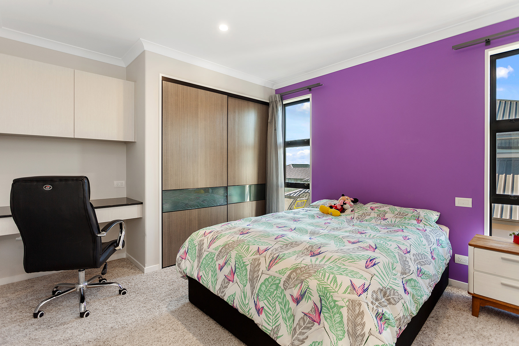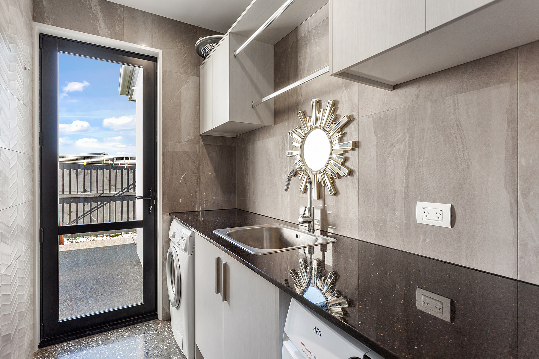 Grand volumes, sharp lines and bold material choices create undeniable street presence. Double doors open to a light-filled double-height foyer – a grand entry befitting this luxurious Christchurch home.