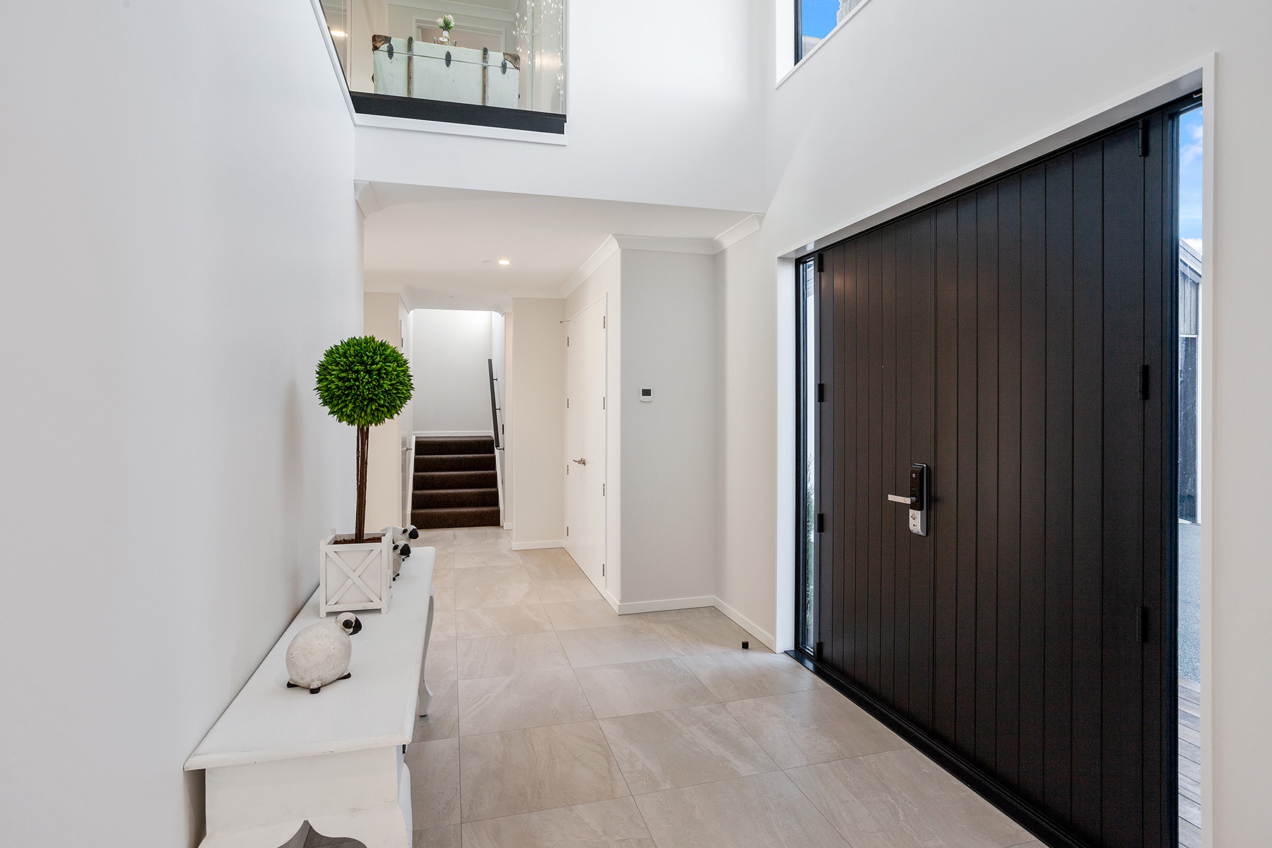 Grand entry doors swing open to reveal a breathtaking double-height entry foyer.
