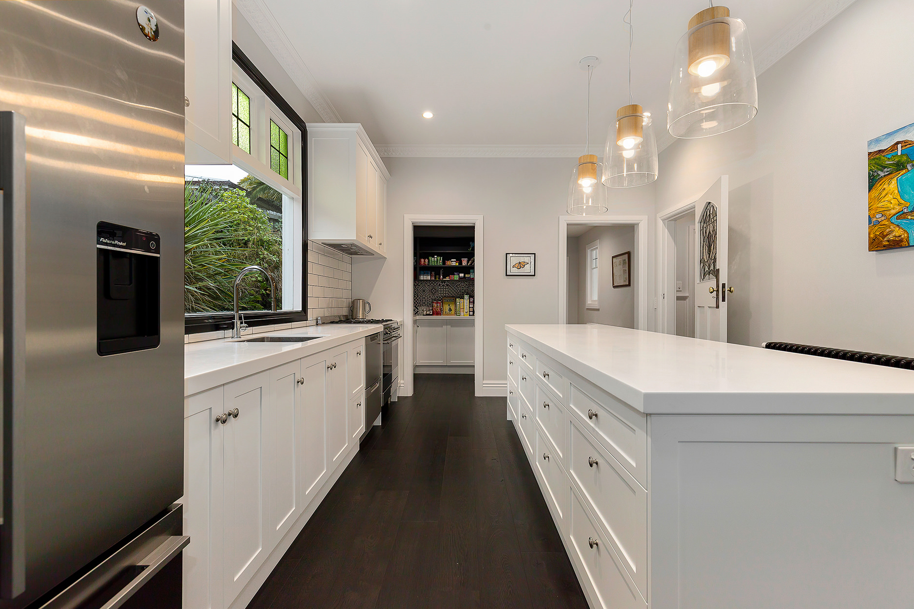 Recessed lighting is a modern yet unobtrusive addition throughout this revitalised residence.