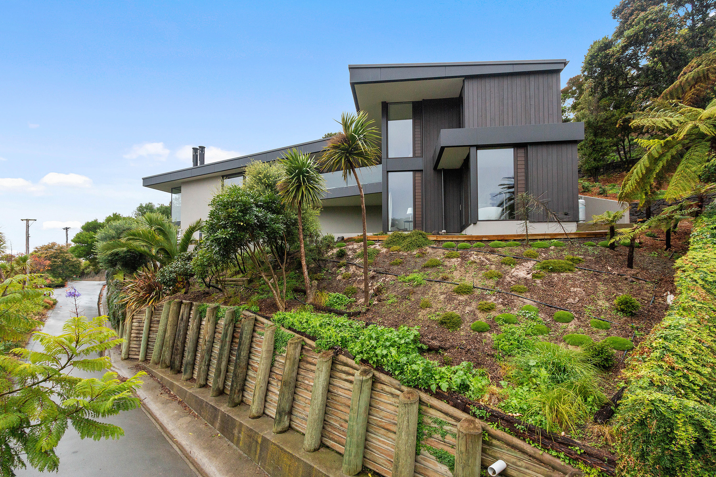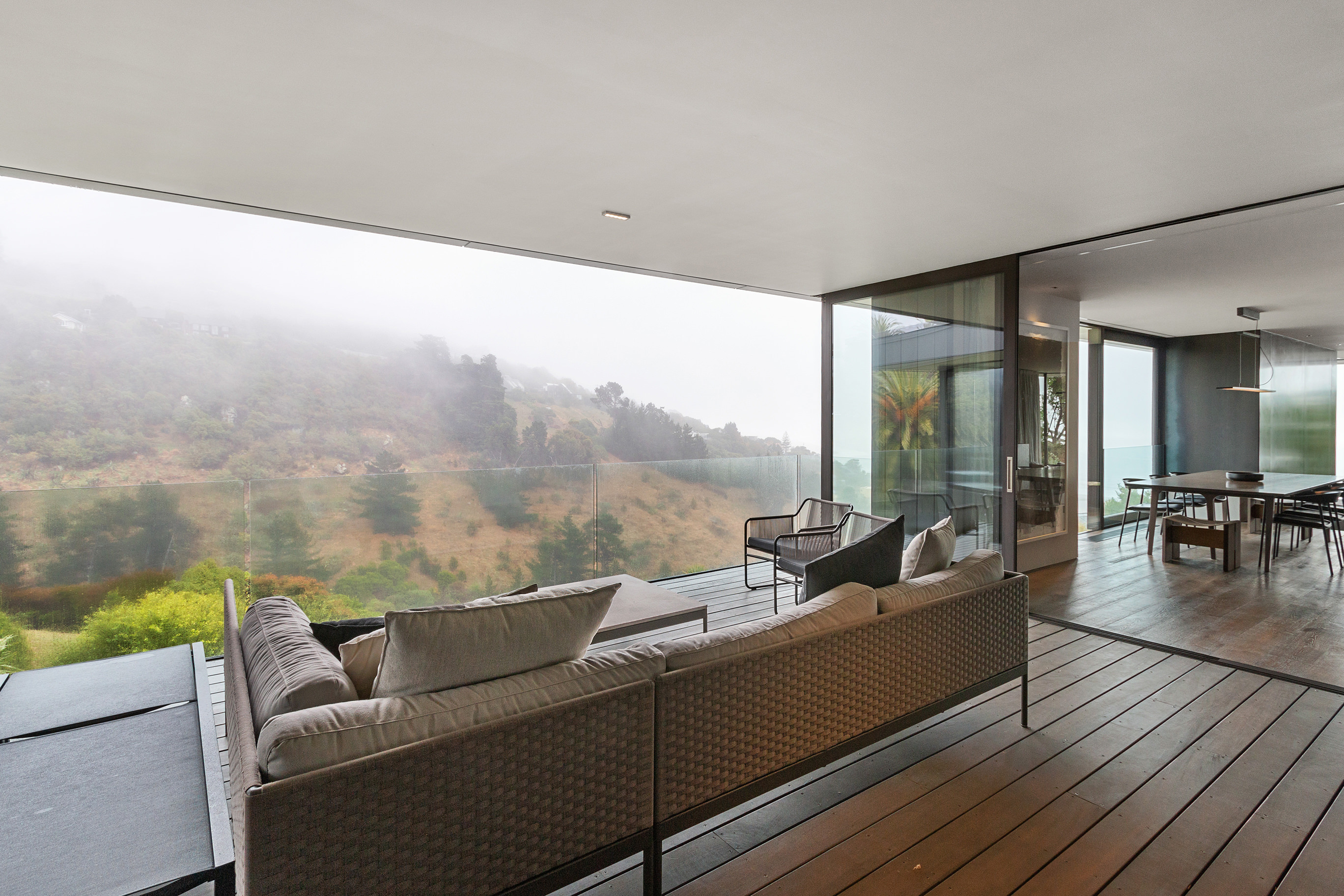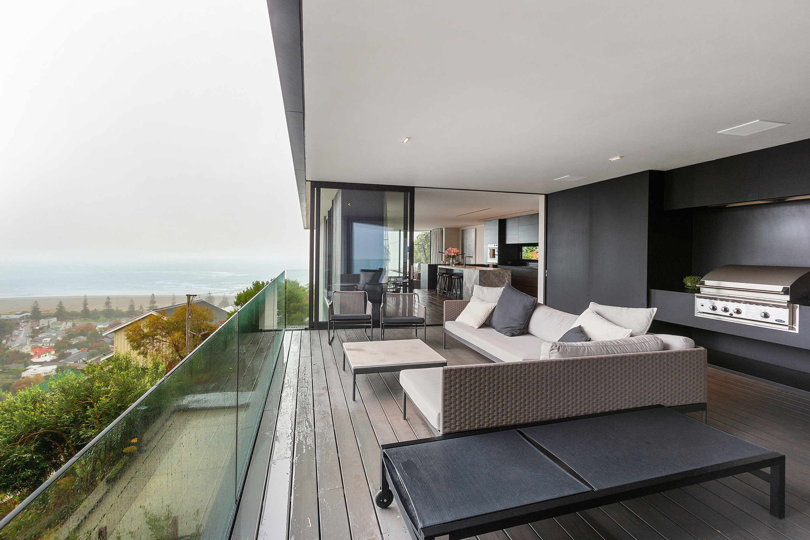Nestled into the hillside, this family residence commands dramatic views of Sumner Beach, Brighton Pier and the Kaikoura ranges.