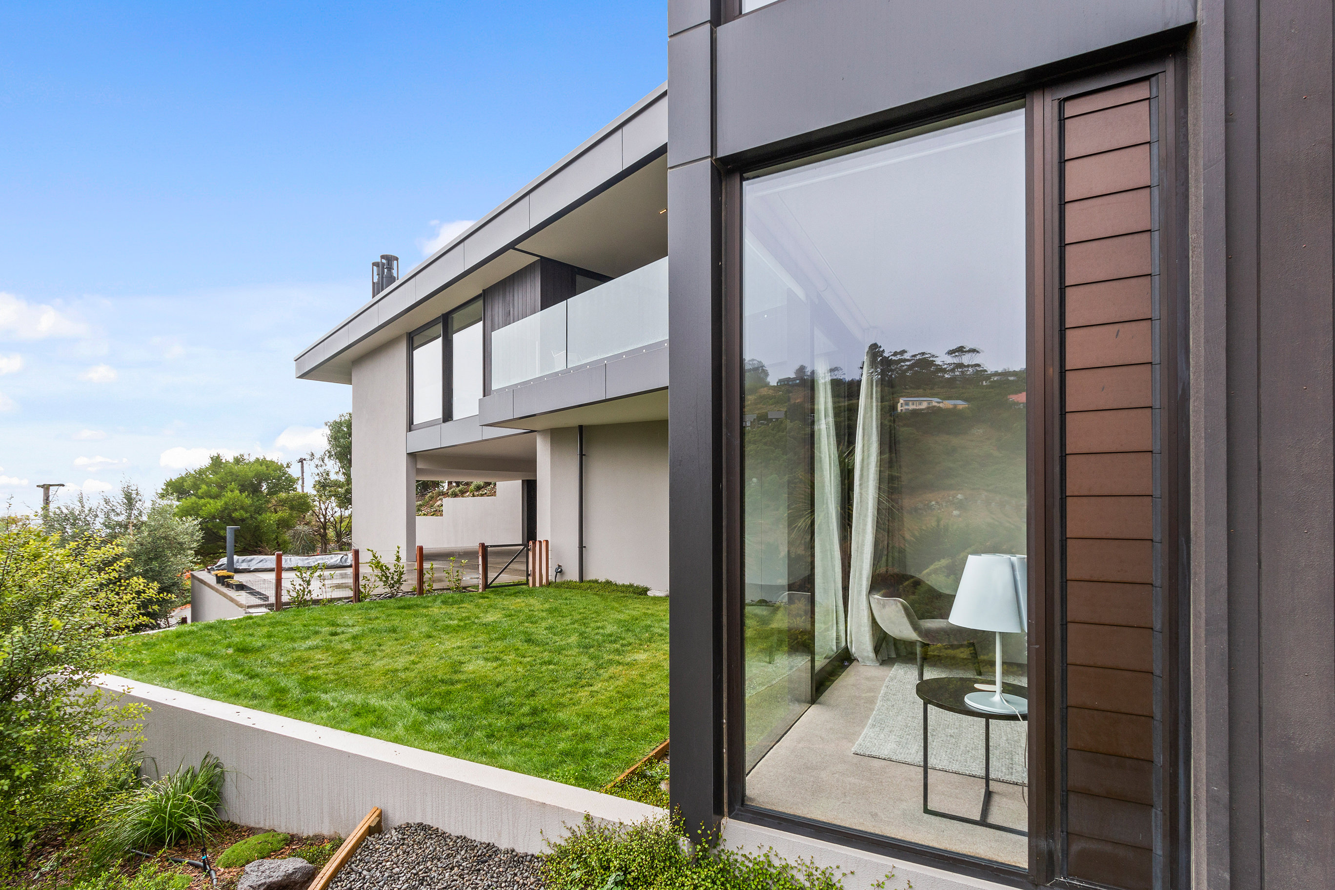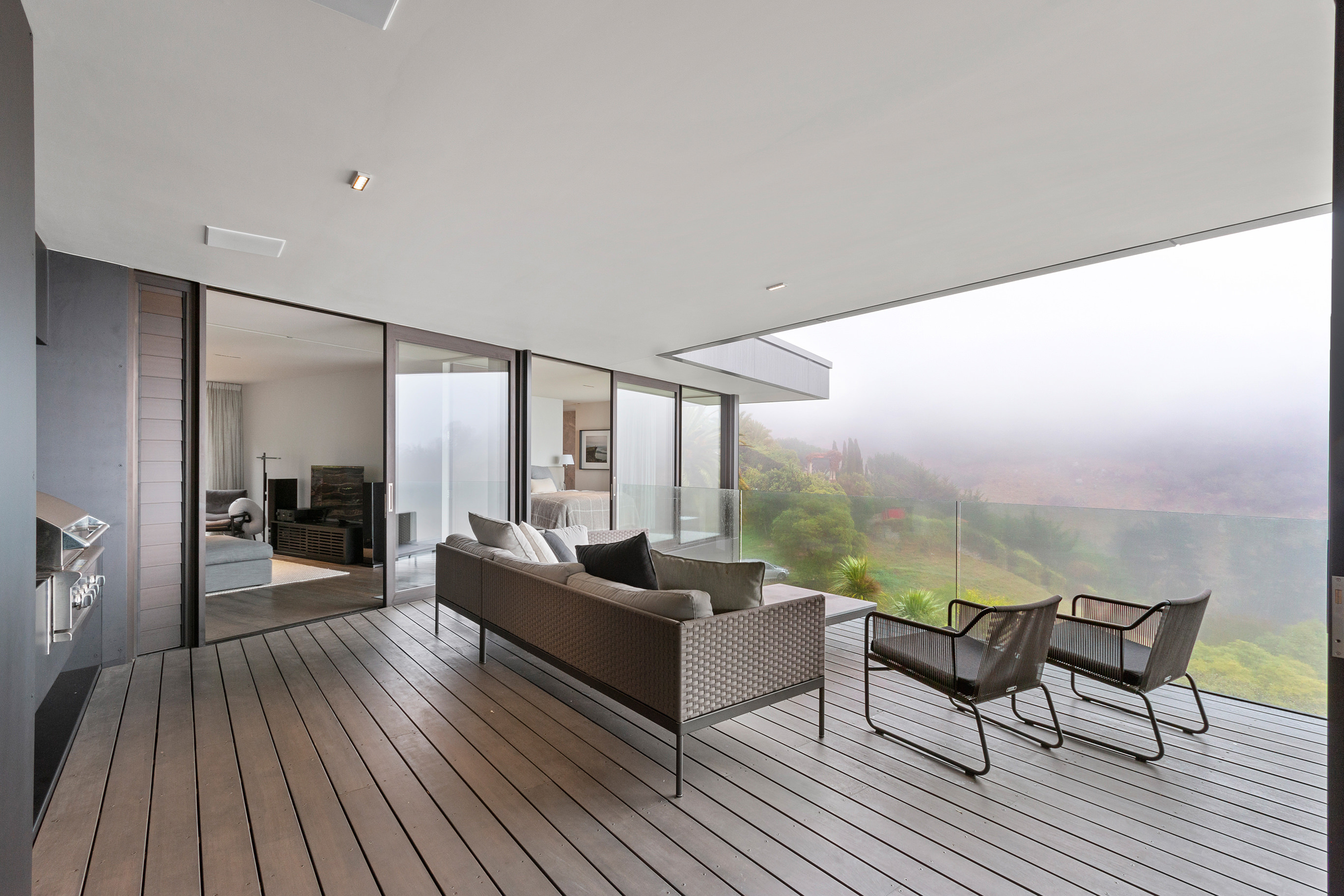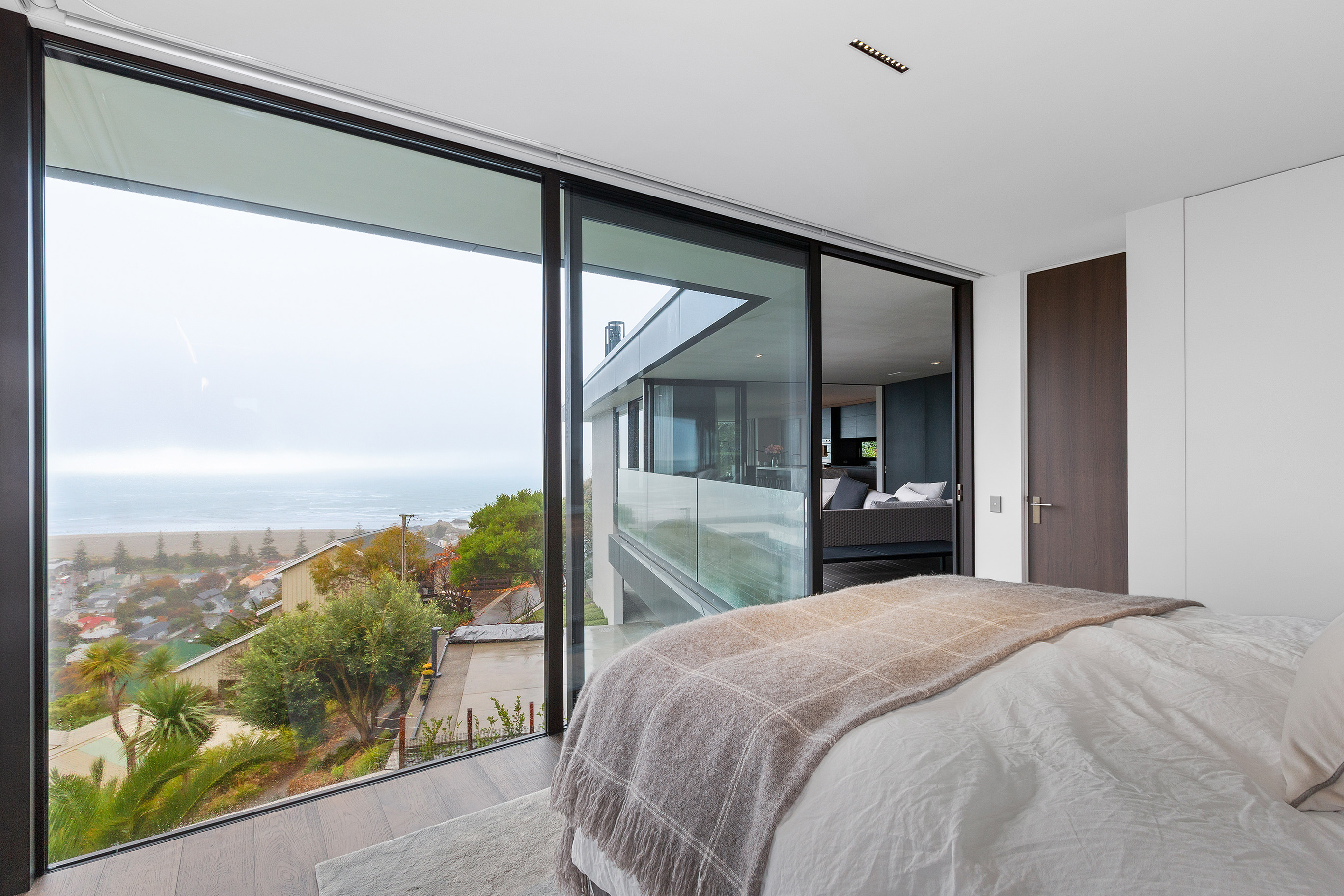 Nestled into the hillside, this family residence commands dramatic views of Sumner Beach, Brighton Pier and the Kaikoura ranges.
