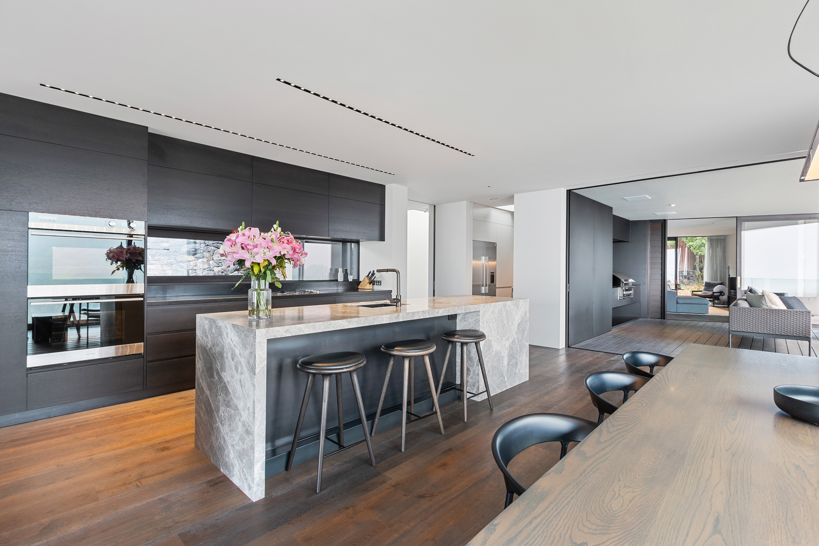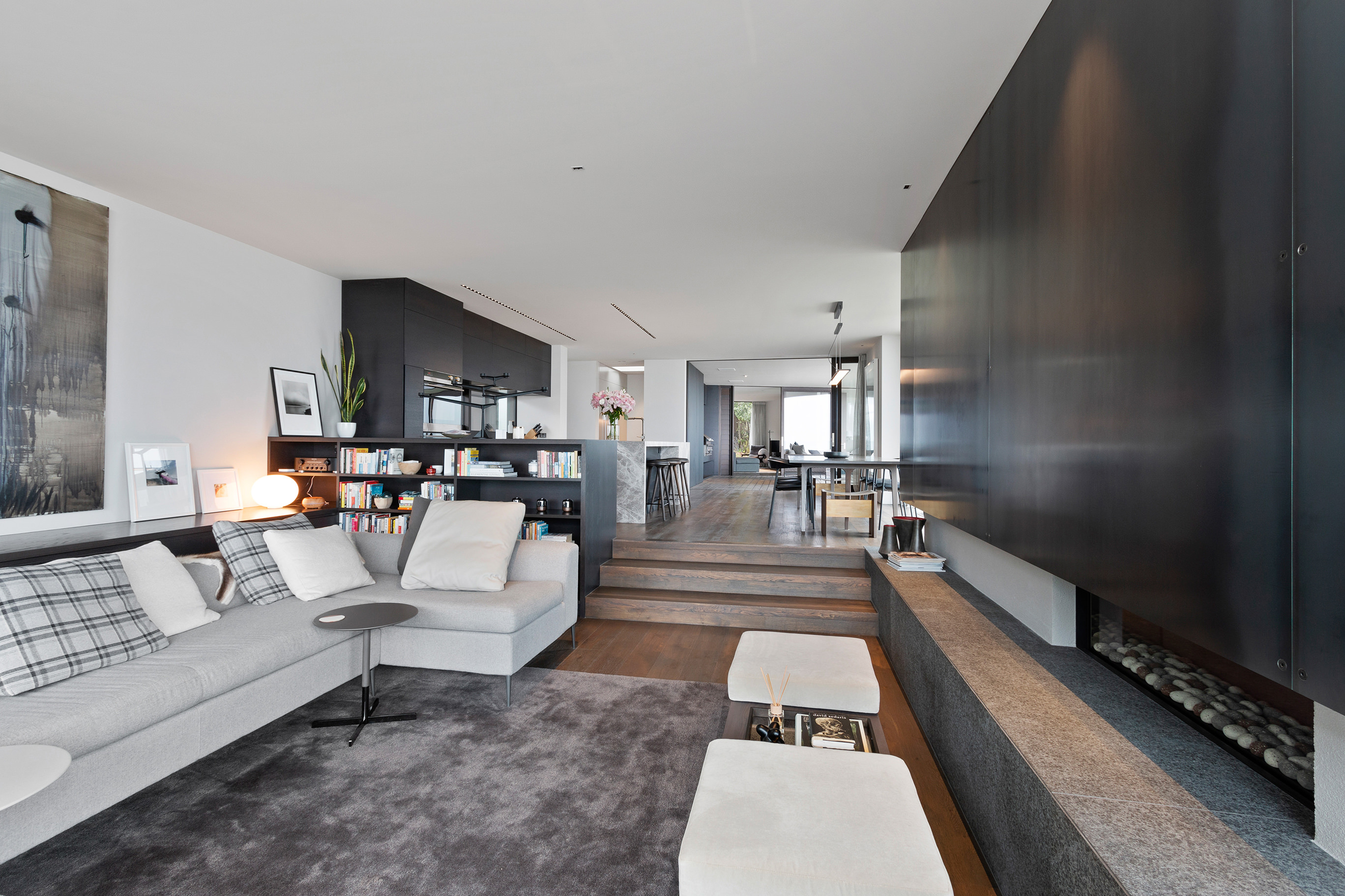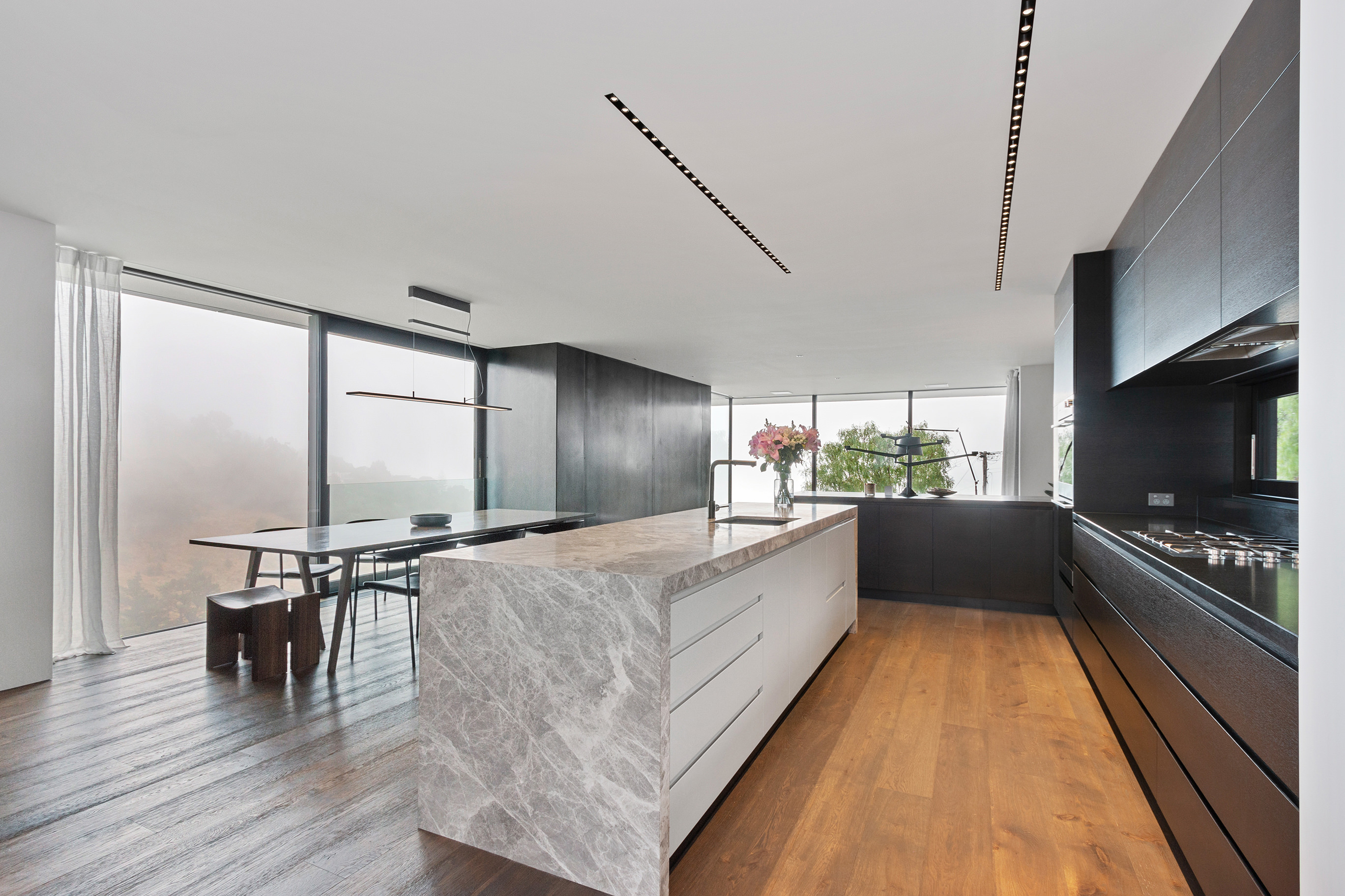 The expansive 365sqm layout is just one room deep at every point, providing each room with unique views. The naturally lit gallery and stairs run as a spine along the south wall. The house is partially suspended over a vehicle forecourt to accommodate manoeuvring.